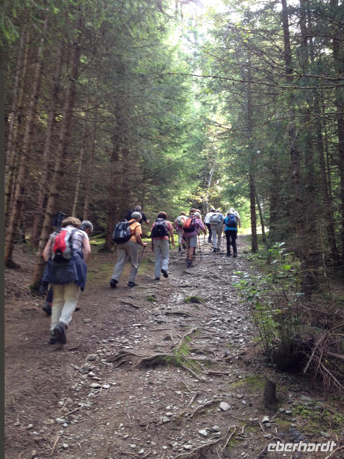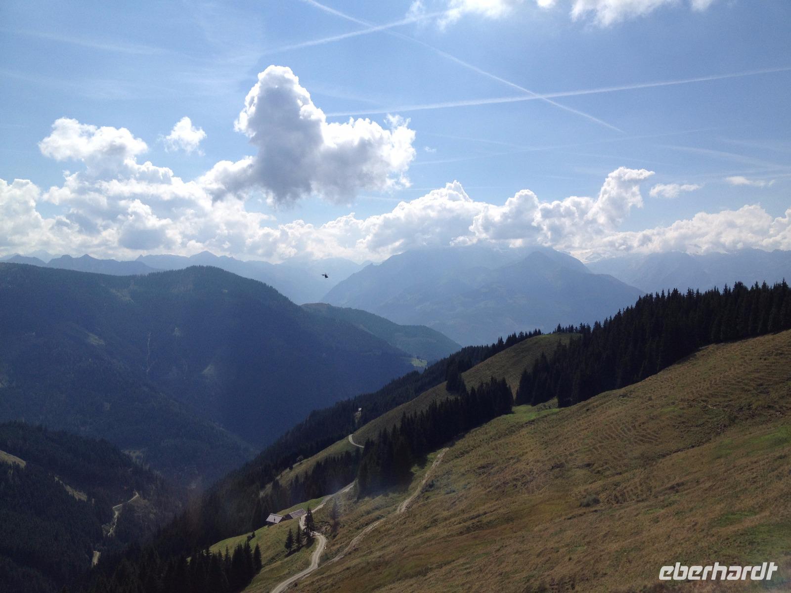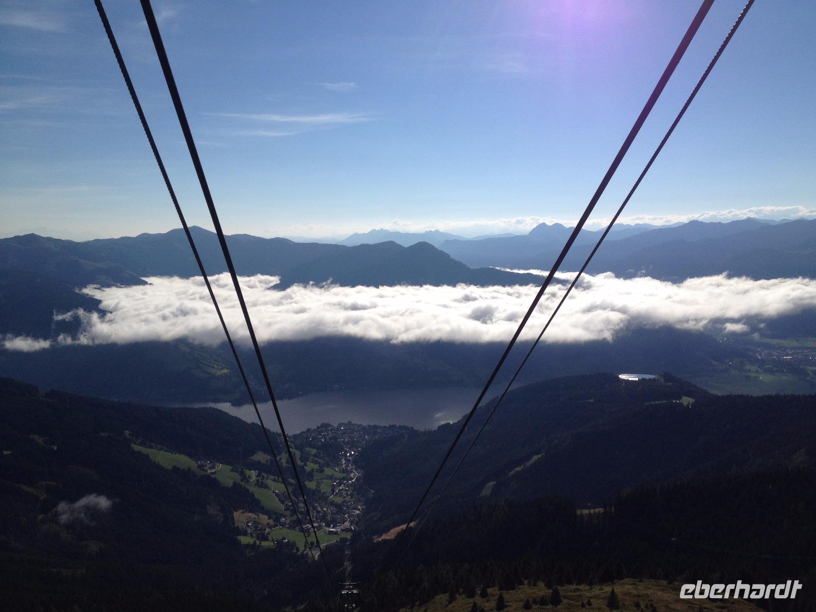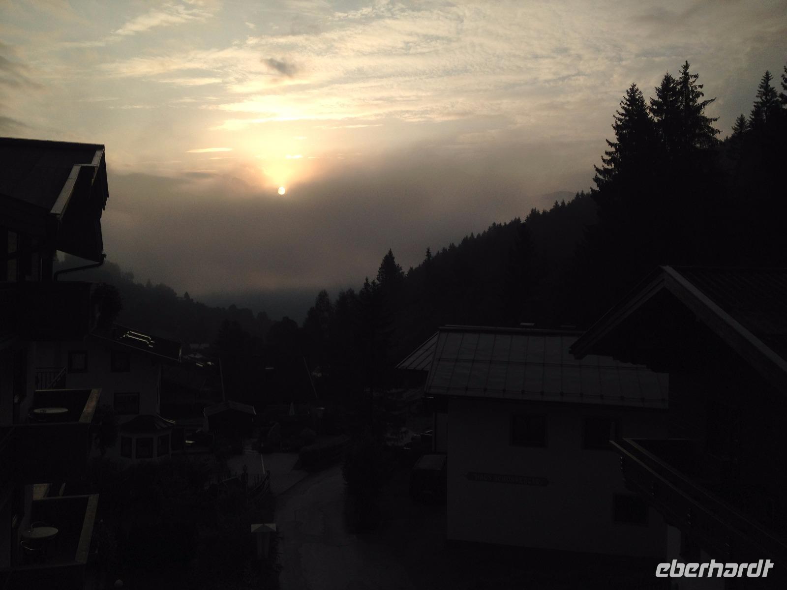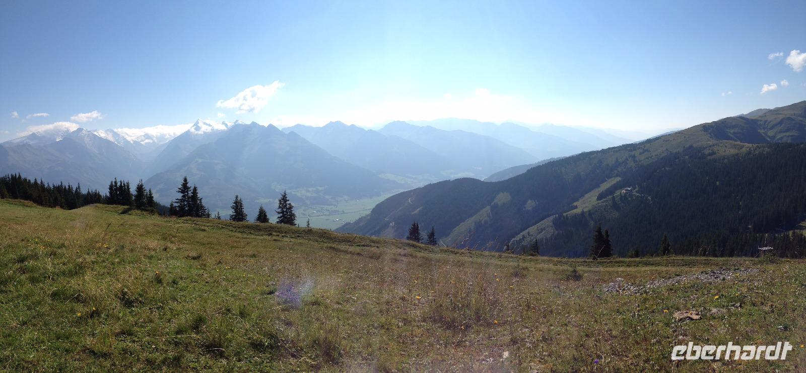Der Montag empfing uns mit Schauern, welche sich ab und zu über unser Hotel abregneten. Das Frühstück war für uns ab 7:30 Uhr bereit und wir schmierten uns noch ein Lunchpaket für den heutigen Wandertag. Um 9 Uhr lernten wir Herta, unsere örtliche Wanderleiterin, kennen und sie konnte uns mit ihrem Charme sofort für sich und die Umgebung begeistern. Ohne große Vorreden begannen wir unsere erste gemeinsame Wanderung zur Schmittenseilbahn mit der wir auf die Schmittenhöhe fuhren und in den Nebel aus Wolken unter uns hinab schauten. Wir wanderten entlang des Gebirgskamms bis zur Sonnalm und legten auf unserem Weg eine Mittagspause ein, wo wir unsere mitgebrachten Lunchpakete genossen. An diesem Tag waren wir 12:45 Uhr nach der ersten leichten Wanderung zurück im Hotel und machten uns kurz für unseren Nachmittag frisch. Nach einer halben Stunde trafen wir uns in der Lobby und ich ging mit meinen Gästen zusammen die Schmittenstraße hinab bis zum Grandhotel und dem daneben angesiedelten Bootsanleger, wo wir mit unserer praktischen Zell am See - Kaprun - Sommer - Karte kostenlos auf eine Rundfahrt über den Zeller See starteten. Nach einer knappen Stunde mit einer wundervollen Aussicht auf Zell am See kamen wir zurück am Anlieger an und wir nutzten die Freizeit bis zum Abendessen für einen Stadtbummel. An diesem Abend begann unser Abendbrot bereits 18 Uhr und war, wie auch die nachfolgenden Tage, köstlich.