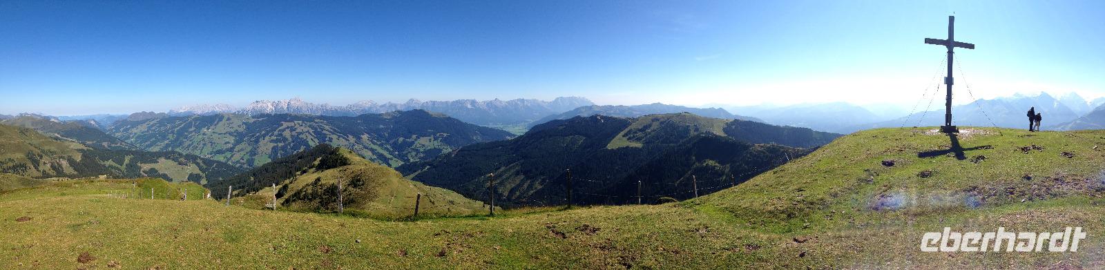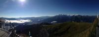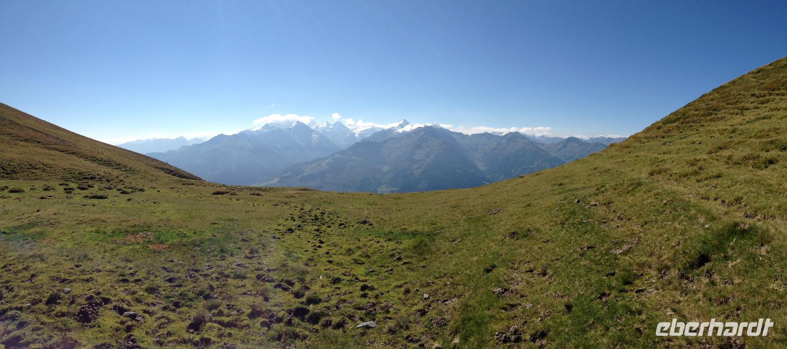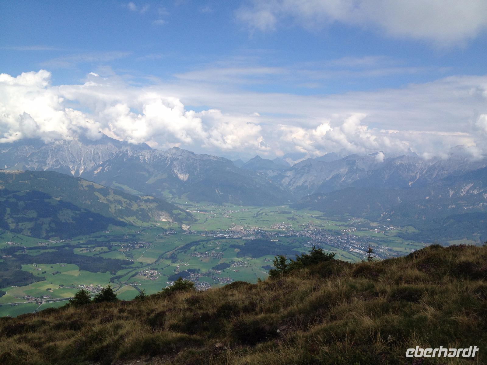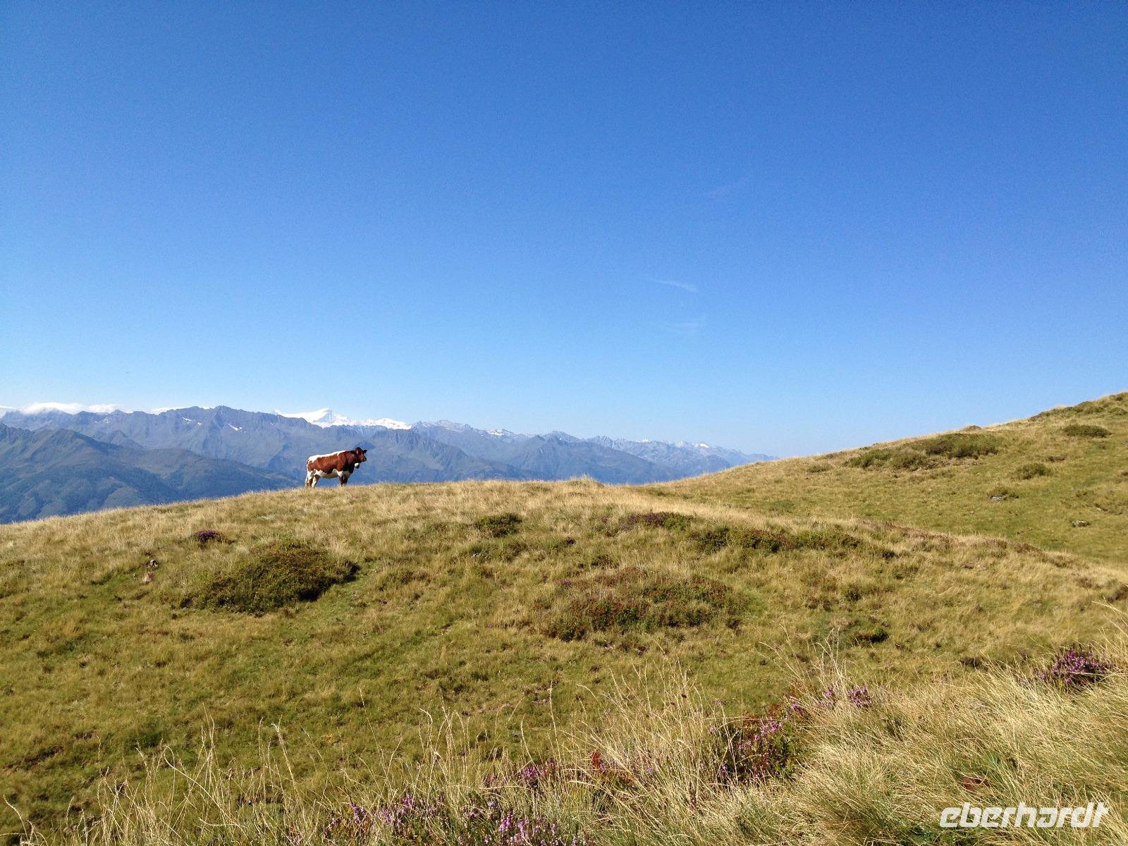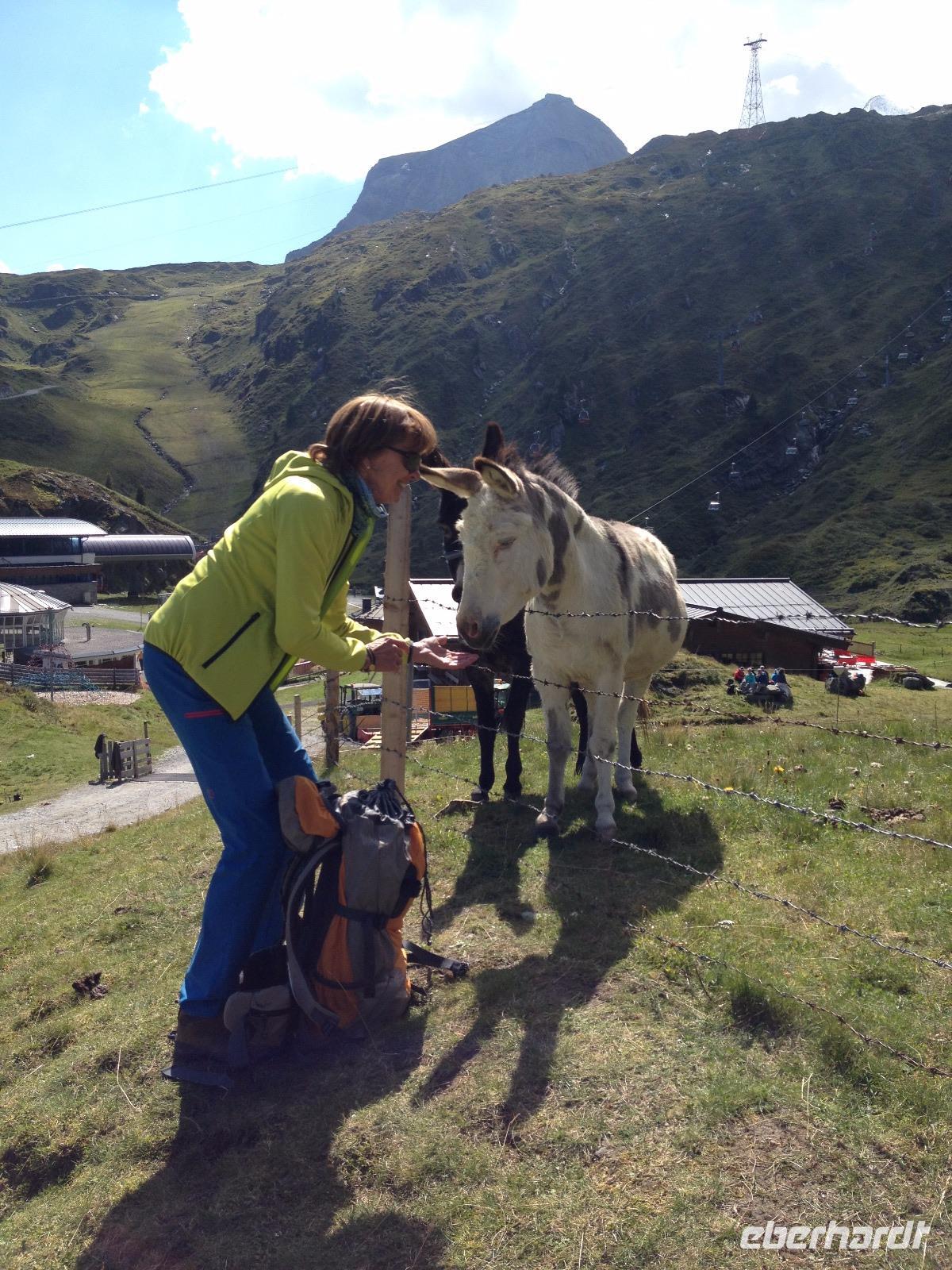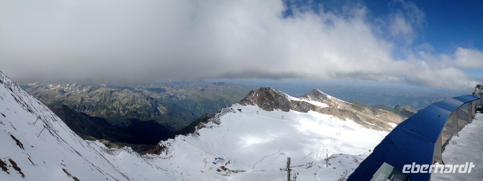 Der Montag empfing uns mit Schauern, welche sich ab und zu über unser Hotel abregneten. Das Frühstück war für uns ab 7:30 Uhr bereit und wir schmierten uns noch ein Lunchpaket für den heutigen Wandertag. Um 9 Uhr lernten wir Herta, unsere örtliche Wanderleiterin, kennen und sie konnte uns mit ihrem Charme sofort für sich und die Umgebung begeistern. Ohne große Vorreden begannen wir unsere erste gemeinsame Wanderung zur Schmittenseilbahn mit der wir auf die Schmittenhöhe fuhren und in den Nebel aus Wolken unter uns hinab schauten. Wir wanderten entlang des Gebirgskamms bis zur Sonnalm und legten auf unserem Weg eine Mittagspause ein, wo wir unsere mitgebrachten Lunchpakete genossen. An diesem Tag waren wir 12:45 Uhr nach der ersten leichten Wanderung zurück im Hotel und machten uns kurz für unseren Nachmittag frisch. Nach einer halben Stunde trafen wir uns in der Lobby und ich ging mit meinen Gästen zusammen die Schmittenstraße hinab bis zum Grandhotel und dem daneben angesiedelten Bootsanleger, wo wir mit unserer praktischen Zell am See - Kaprun - Sommer - Karte kostenlos auf eine Rundfahrt über den Zeller See starteten. Nach einer knappen Stunde mit einer wundervollen Aussicht auf Zell am See kamen wir zurück am Anlieger an und wir nutzten die Freizeit bis zum Abendessen für einen Stadtbummel. An diesem Abend begann unser Abendbrot bereits 18 Uhr und war, wie auch die nachfolgenden Tage, köstlich.