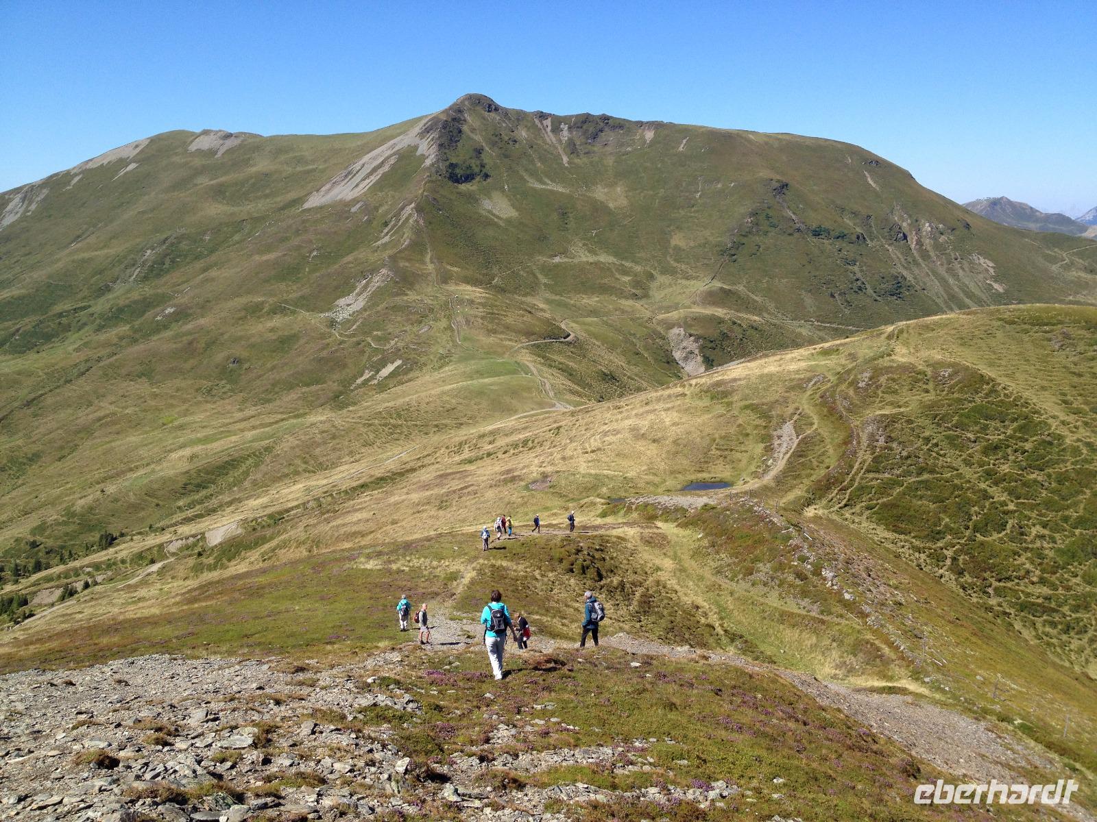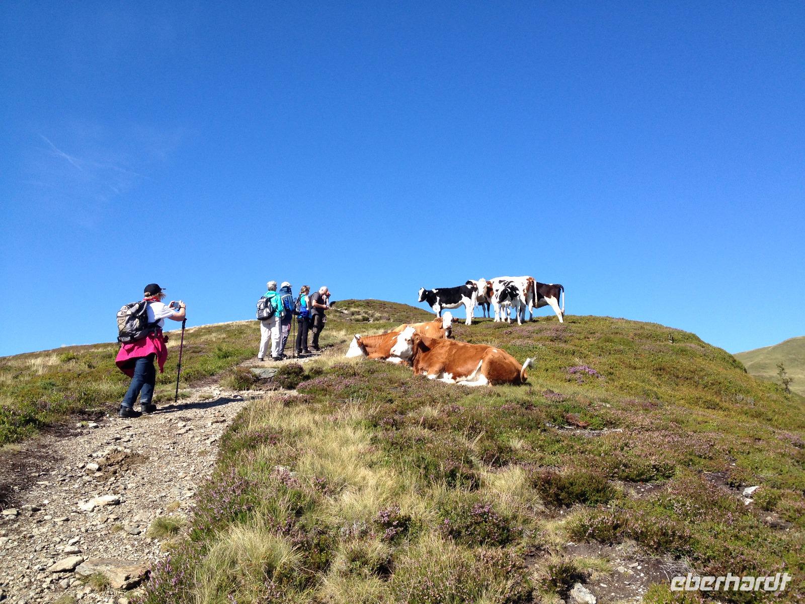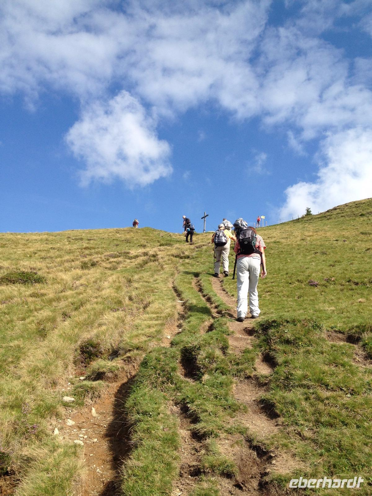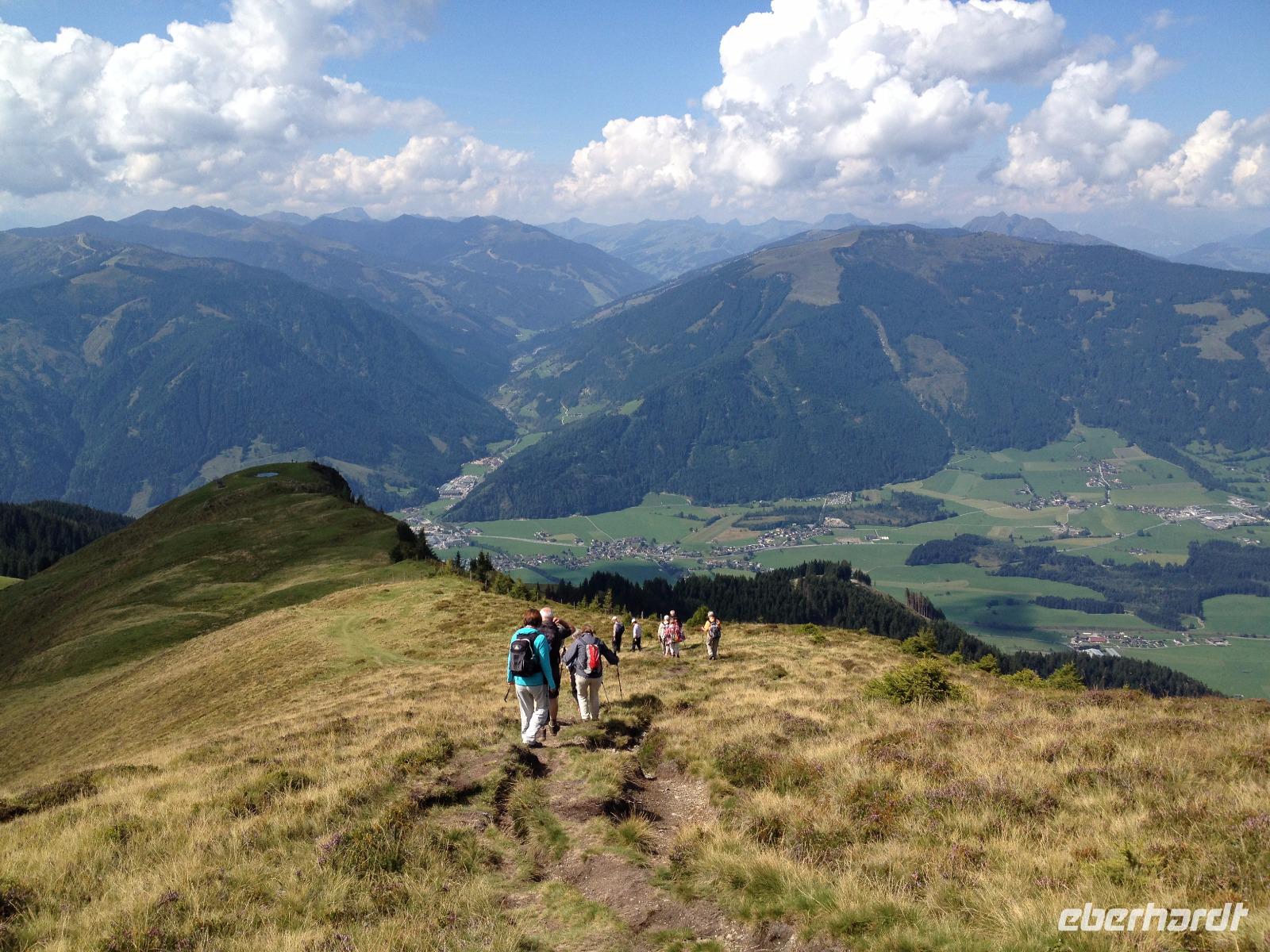 Der Mittwoch verlief nach Plan, Sonnenschein, der Pinzgauer Spaziergang und gute Laune waren unsere heutigen Wegbegleiter. Nach dem Frühstück fuhren wir wieder mit der Schmittenseilbahn auf die Schmittenhöhe, wie bereits am Montag und liefen diesmal aber einen anderen, schwierigeren Weg. Es ging bergauf und bergab und um 11:30 Uhr war für uns erstmal die Zeii gekommen Mittagsrast einzulegen. Wir verzehrten unsere Brote und pflückten noch viele Heidelbeeren, welche überall am Weg zu finden waren. Weiter ging es zur Hochsonnbergalm in der wir uns erneut niederließen und bei Buttermilch oder einem kühlen, isotonische Hopfengetränk den Ausblick ins Tal genossen. Im Anschluss gingen wir zurück zur Schmittenbahn und fuhren wieder hinab zu unserem Hotel wo wir wieder etwas Freizeit hatten bis uns das Abendbrot erwartete.