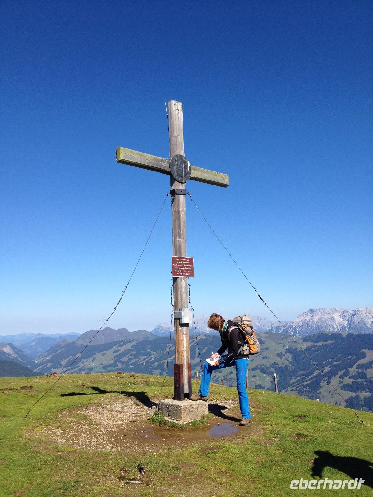 Der Freitag empfing uns mit Sonnenschein und Temperaturen um die 25°C was für unsere bevorstehende Wanderung sehr angenehm war. Gestärkt vom Frühstücksbuffet trafen wir uns mit Herta und fuhren bis nach Thumersbach zum Fuße der Schwalbenwand, unserem heutigen Wanderziel. Über Stock und Stein ging es erst durch den Wald und dann über die weniger bewachsenen Gebirgshänge hinauf bis zum Gipfelkreuz, wo sich jeder mit einer Unterschrift verewigte. Hier oben genossen wir den Sonnenschein auf unserer Haut und aßen unser Mittagpaket. Als schöne Fotos geschossen und wir gesättigt waren traten wir den Rückweg an, da uns bewusst war: „der Weg den wir hoch sind, müssen wir auch wieder runter". Zum Glück hatten wir Herta dabei, die uns nicht mehr durch den steilen Wald sondern über den Forstweg hinabführte bis zum Gasthof Mitterberg wo wir uns noch eine Stunde für Kaffee und Kuchen niederließen und den wunderbaren Ausblick über den Zeller See genossen. Heute haben wir Herta mit netten Wünschen für die Zukunft und etwas Taschengeld ins Wochenende geschickt. Im Anschluss wurden wir mittels Taxi wieder zurück zum Hotel gebracht und hatten wieder etwas Zeit um uns frisch zu machen und auf das Abendessen vorzubereiten.