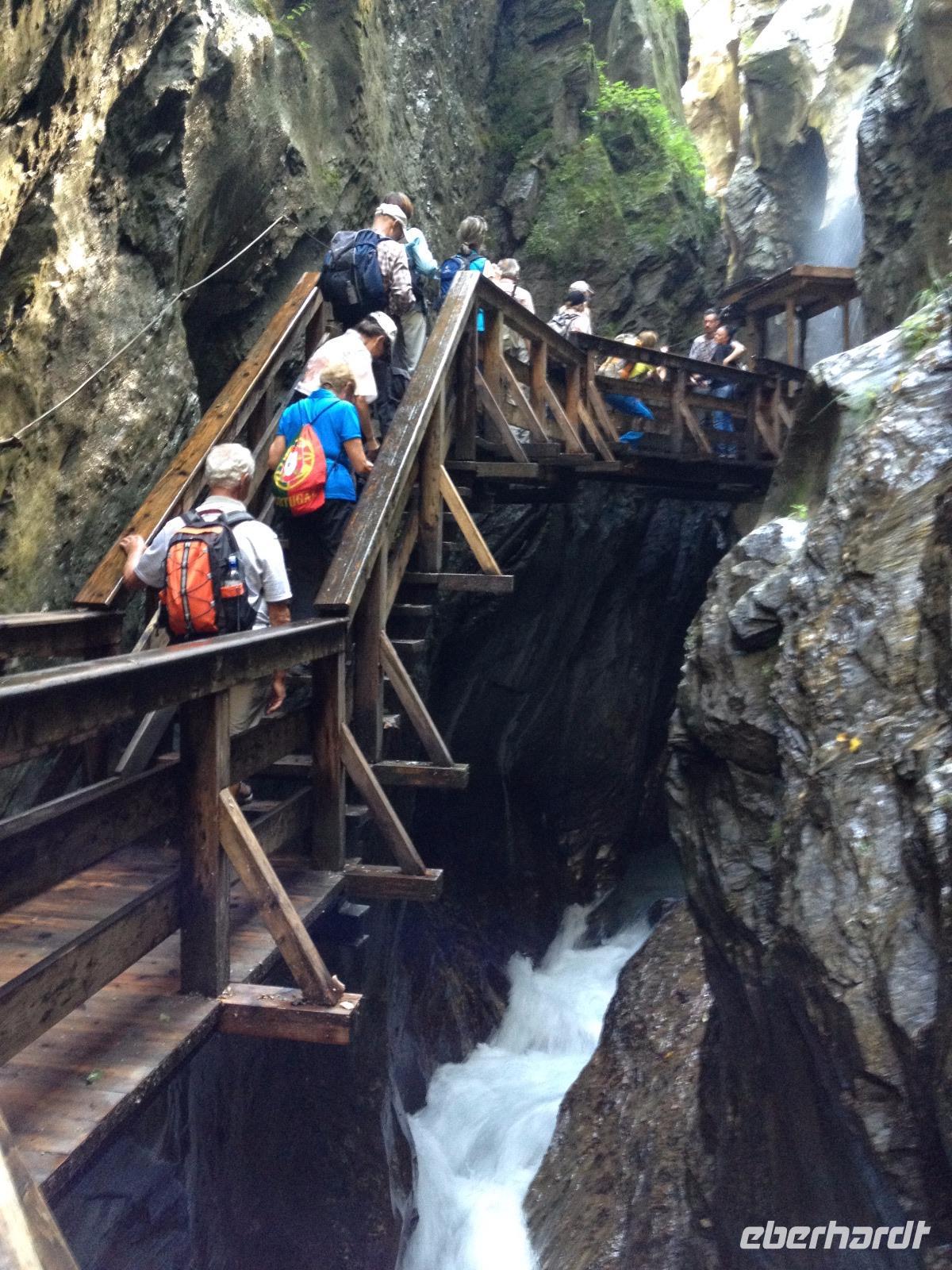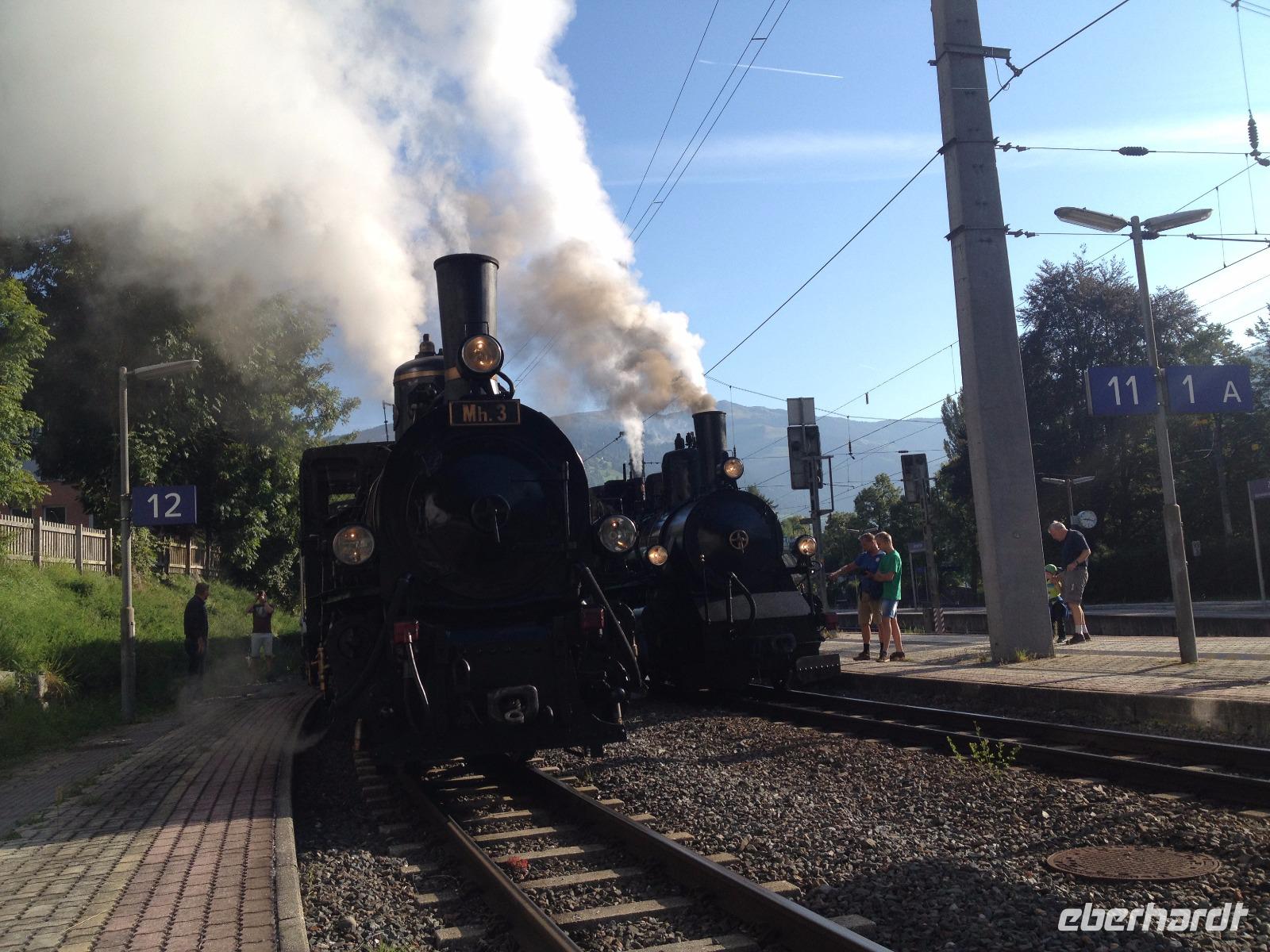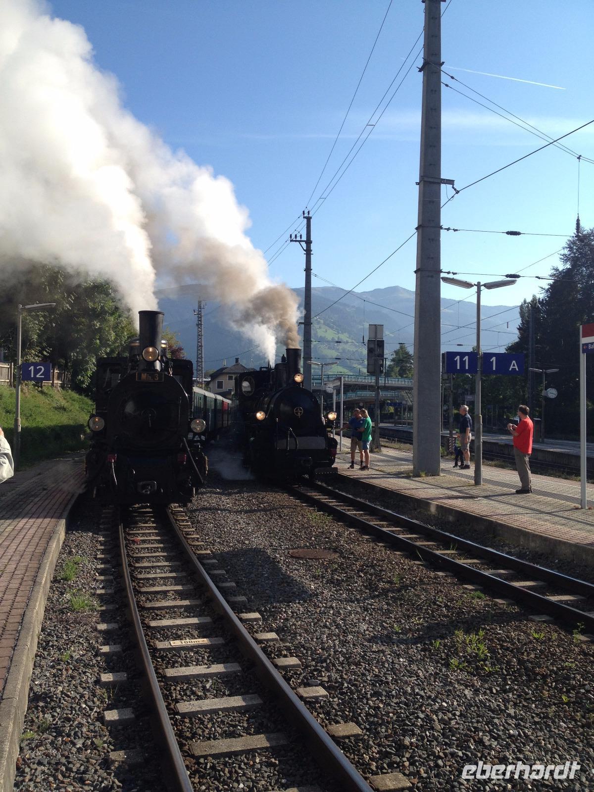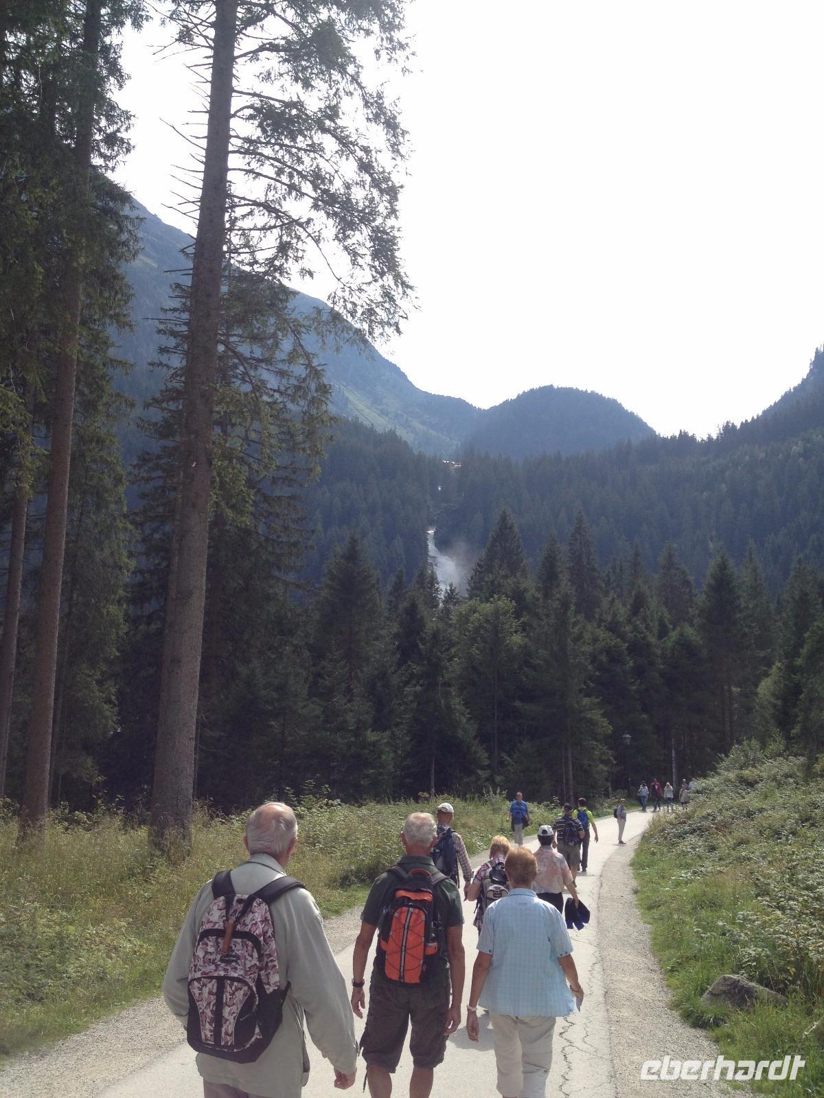 Am Samstag war unser nostalgischer Dampflok-Tag angesetzt und so starteten wir um 8:30 Uhr vom Hotel aus zu Fuß bis zum Bahnhof von Zell am See. Kurze Zeit nachdem wir den Bahnhof erreichten dampfte uns schon die erste historische Dampflok entgegen und wir waren hellauf begeistert und knipsten unsere Fotos bis zum Eintreffen der zweiten Bahn, in welcher für uns ein Wagen reserviert war. Als die Trillerpfeife des Schaffners und der antwortende Pfeifton des Lokführers verhallt waren setzte sich der Zug schnaufend in Bewegung und so ging es für uns entlang der Salzach bis nach Krimml zu den Wasserfällen, welche sich 400 Meter in die Tiefe stürzten und uns eine gute Erfrischung bei den doch sehr warmen 26°C genau recht war. Als wir den Weg entlang des Wasserfalls erklommen haben und uns wieder an der Bahn getroffen hatten ging es mit der lokalen S-Bahn zurück nach Zell am See. Unsere letzte gemeinsame Wanderung war der Aufstieg bis zum Hotel und somit ging eine schöne Woche in Zell am See so langsam dem Ende entgegen.