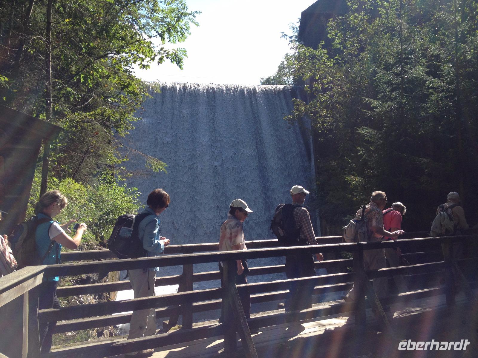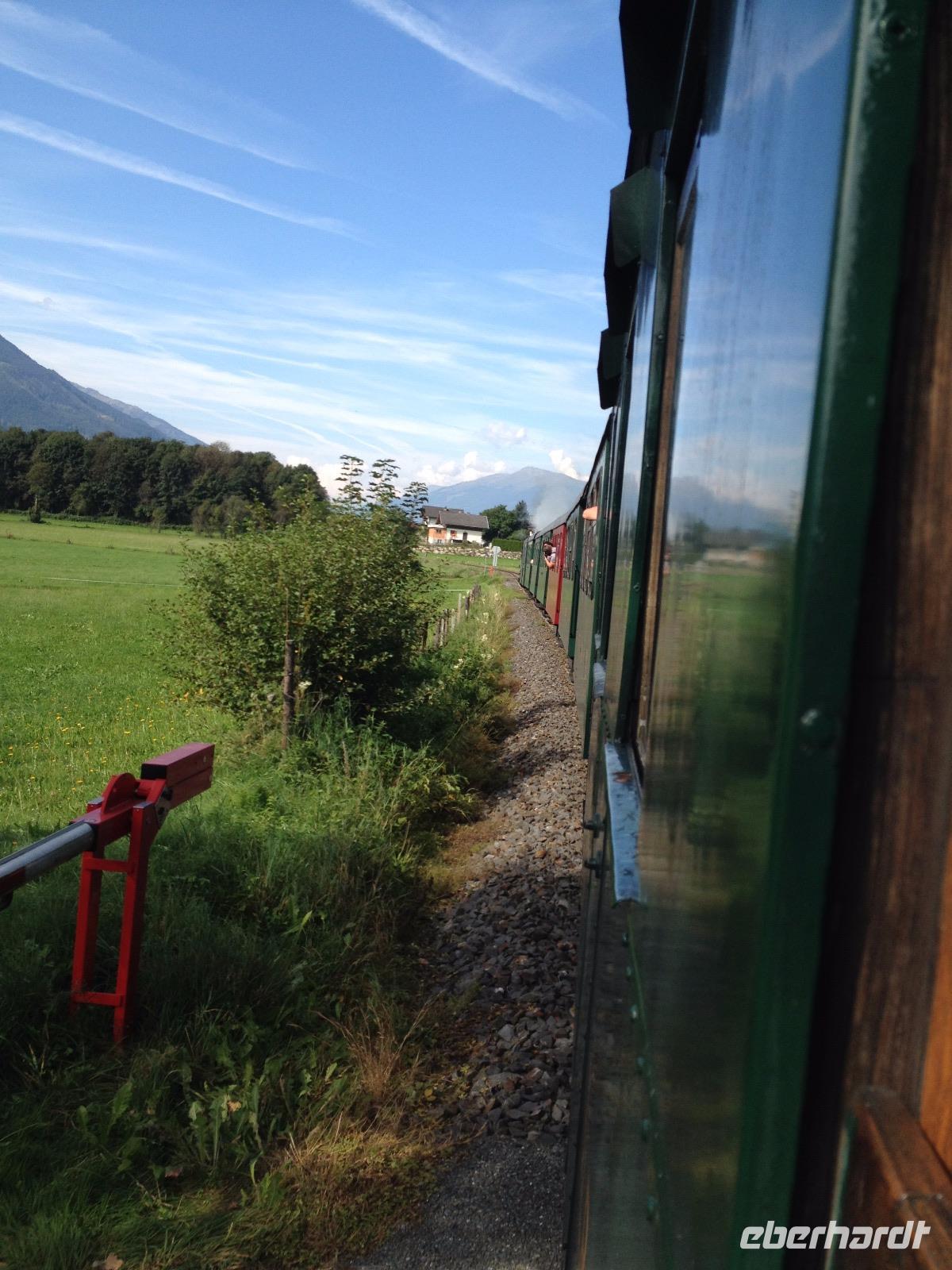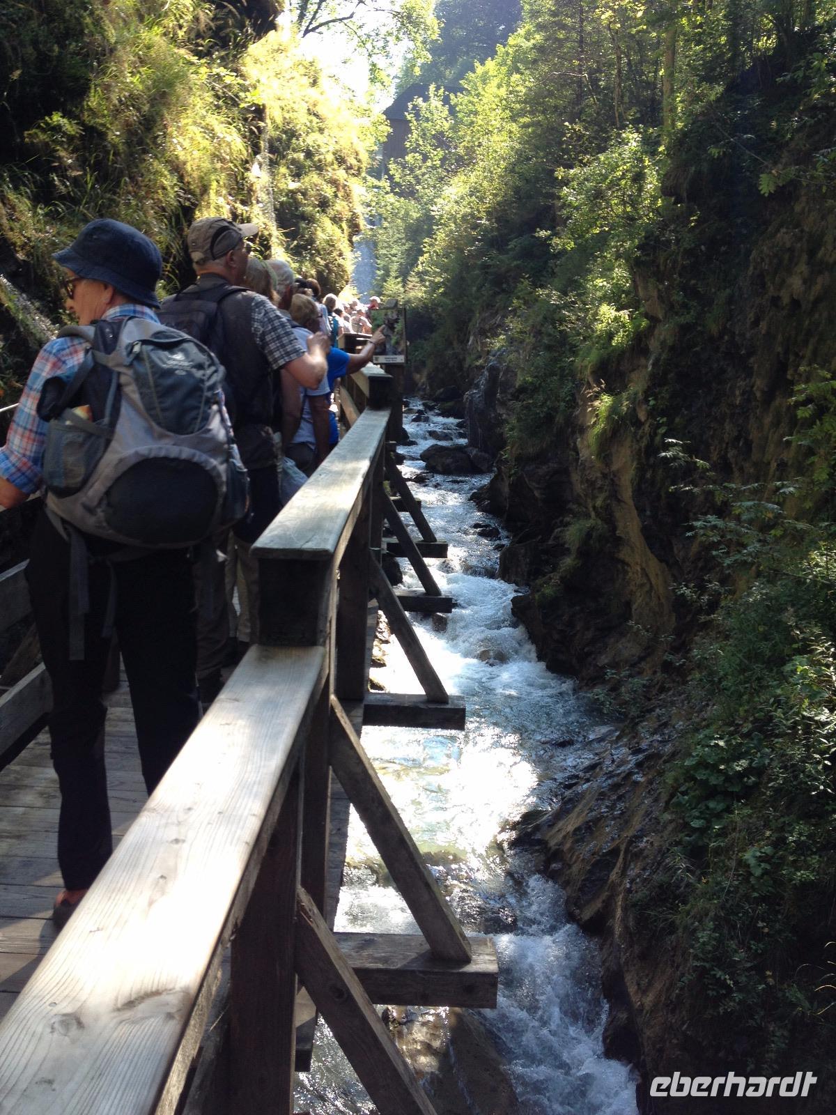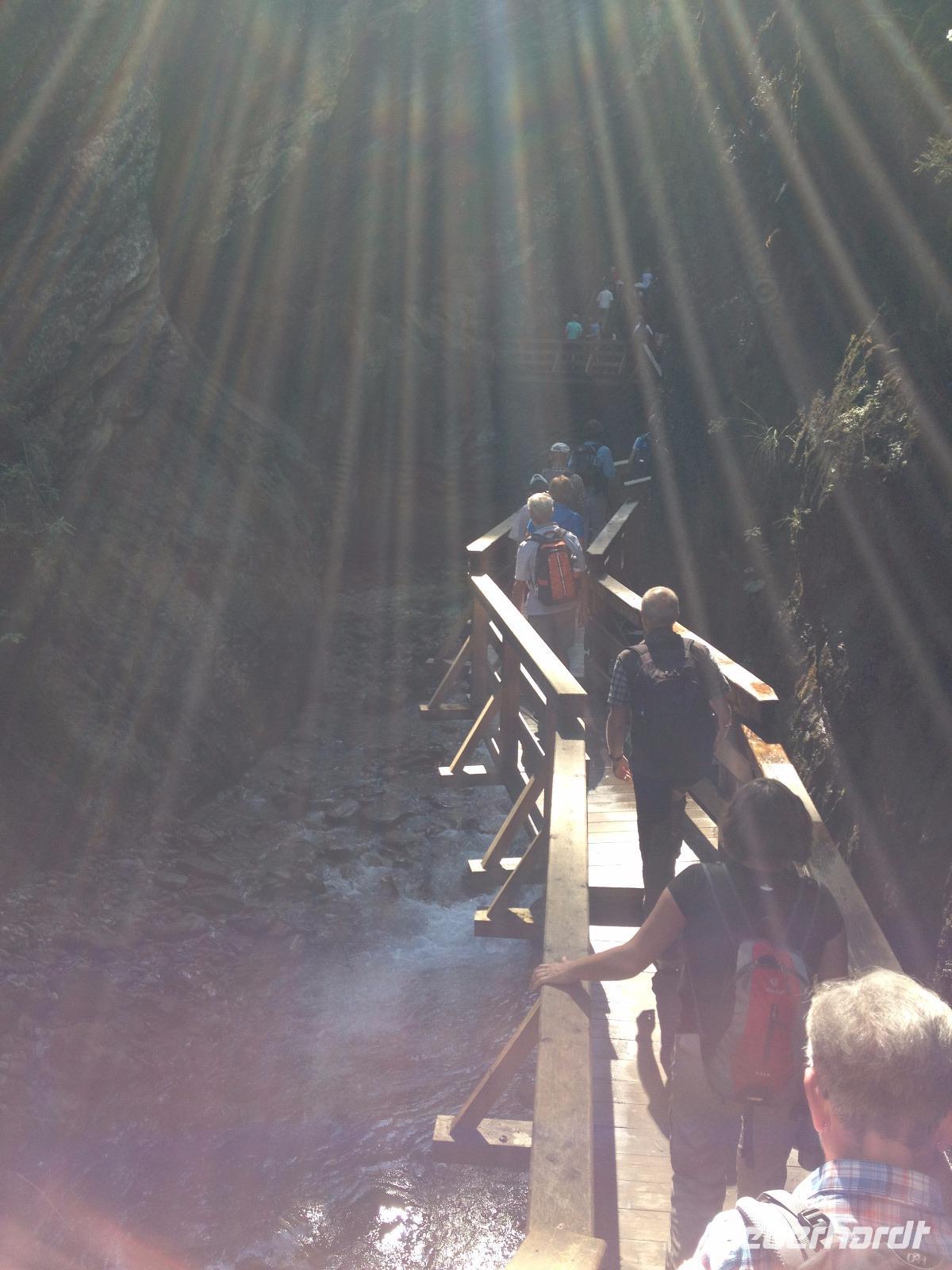Am Samstag war unser nostalgischer Dampflok-Tag angesetzt und so starteten wir um 8:30 Uhr vom Hotel aus zu Fuß bis zum Bahnhof von Zell am See. Kurze Zeit nachdem wir den Bahnhof erreichten dampfte uns schon die erste historische Dampflok entgegen und wir waren hellauf begeistert und knipsten unsere Fotos bis zum Eintreffen der zweiten Bahn, in welcher für uns ein Wagen reserviert war. Als die Trillerpfeife des Schaffners und der antwortende Pfeifton des Lokführers verhallt waren setzte sich der Zug schnaufend in Bewegung und so ging es für uns entlang der Salzach bis nach Krimml zu den Wasserfällen, welche sich 400 Meter in die Tiefe stürzten und uns eine gute Erfrischung bei den doch sehr warmen 26°C genau recht war. Als wir den Weg entlang des Wasserfalls erklommen haben und uns wieder an der Bahn getroffen hatten ging es mit der lokalen S-Bahn zurück nach Zell am See. Unsere letzte gemeinsame Wanderung war der Aufstieg bis zum Hotel und somit ging eine schöne Woche in Zell am See so langsam dem Ende entgegen.