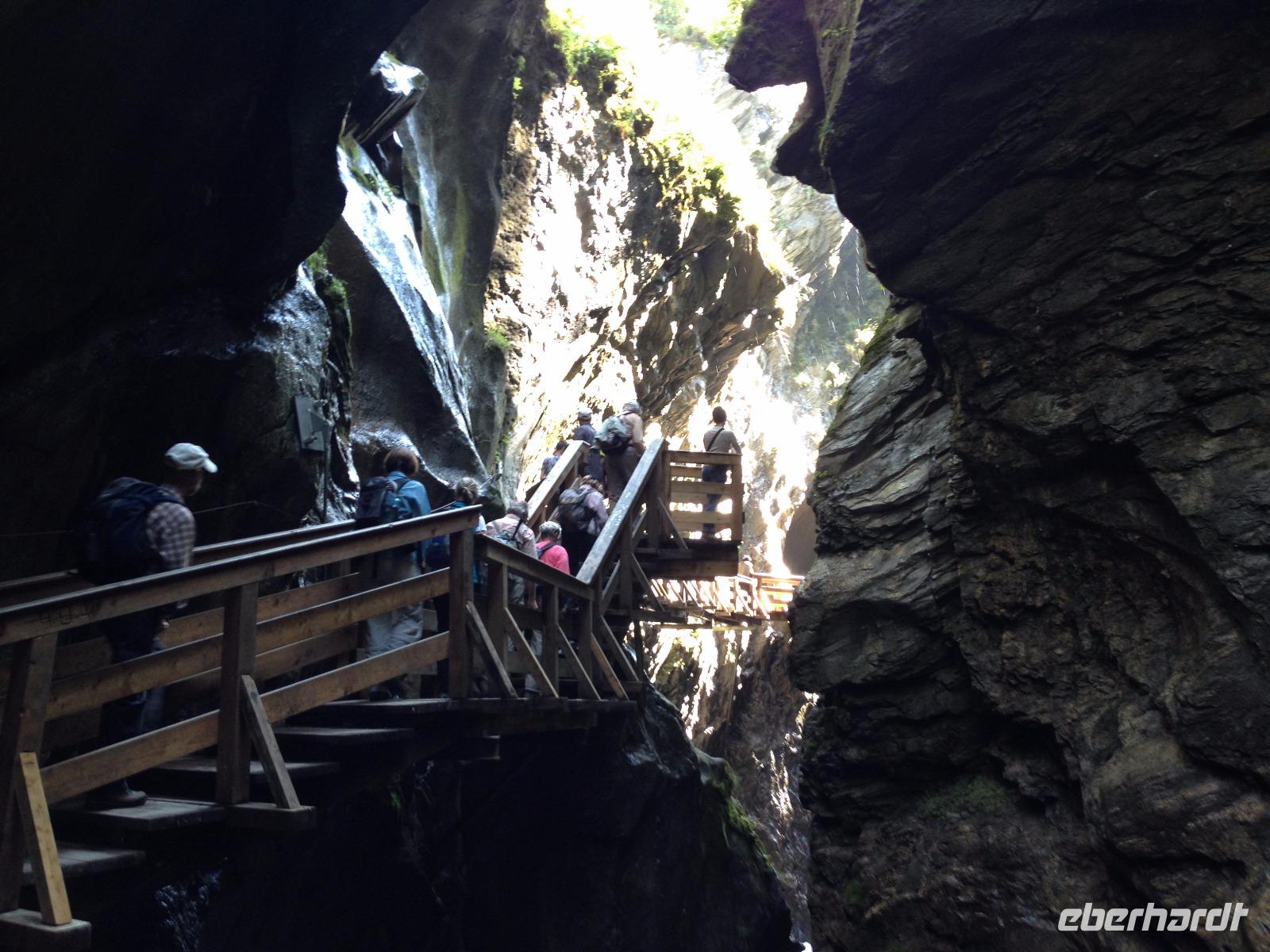 Am Dienstag war bereits am frühen Morgen abzusehen, dass auch dieser Tag von Regen gezeichnet sein wird und wir entschlossen uns unsere geplante Tour auf das Kitzsteinhorn zu verschieben. Also haben wir unsere Taxen für 9 Uhr zum Hotel bestellt und fuhren mit ihnen nach Kaprun um die Hochgebirgsstauseen anzuschauen. Unterwegs holten wir Herta ab und kamen um 9:50 Uhr an der Talstation der Stauseen an. Von hier aus ging es mit einem Bus durch enge und schwach beleuchtete Tunnels hinauf bis zum Schrägaufzug welcher uns zu einem weiteren Bus brachte mit dem wir noch ca. 15 Minuten fuhren bis wir die Bergstation der Stauseen erreicht hatten. Wir nahmen an einer Führung durch die Staumauer hindurch teil und bekamen viele interessante Informationen über die Staumauer, ihrer Geschichte und auch ihre Zukunft. Anschließend haben wir eine Stunde Mittagspause eingelegt um die Anlage der Staumauer selbstständig zu erkunden und unser Mittagsbrötchen oder -schnitten einzunehmen. Danach fuhren wir wieder mit dem Bus und dem Schrägaufzug zurück ins Tal und dem Taxi zurück zum Hotel. Am Nachmittag organisierte ich eine Rundführung durch das Augut (der örtlichen Käserei) und wir gingen in den Laden des Hofes um uns umzuschauen und eventuell Mitbringsel für die Liebsten zu Hause ausfindig zu machen. Um 16:30 Uhr kamen wir wieder am Hotel an und entspannten noch etwas bis zum Abendessen um 18 Uhr.
