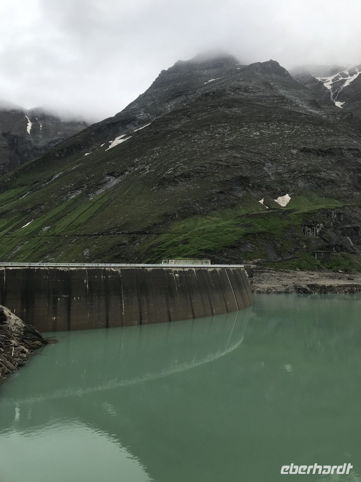Der Weg durchs Innenleben der Staumauer war beeindruckend. Nach der Führung riss die Wolkendecke auf, und es bot sich eine phantastische Gebirgsregion und inmitten die Stauseen.