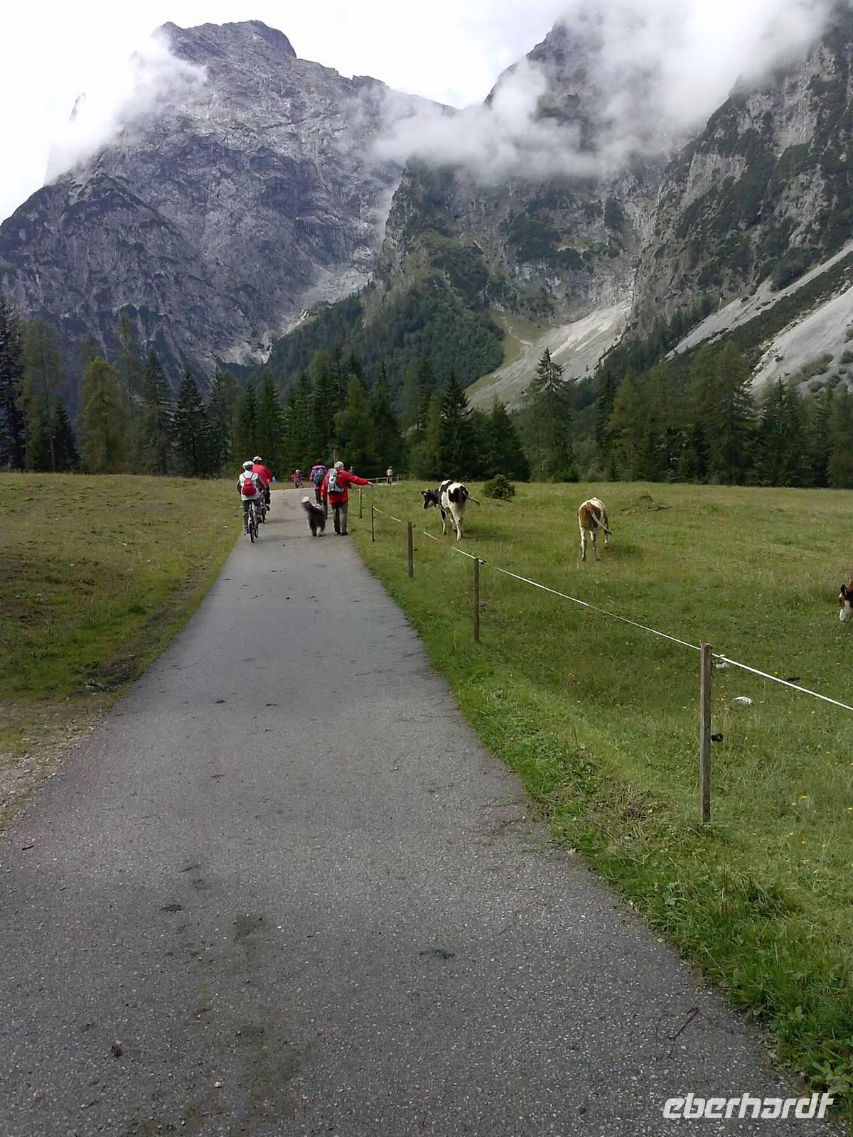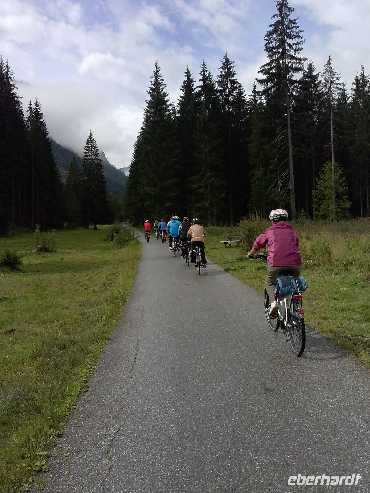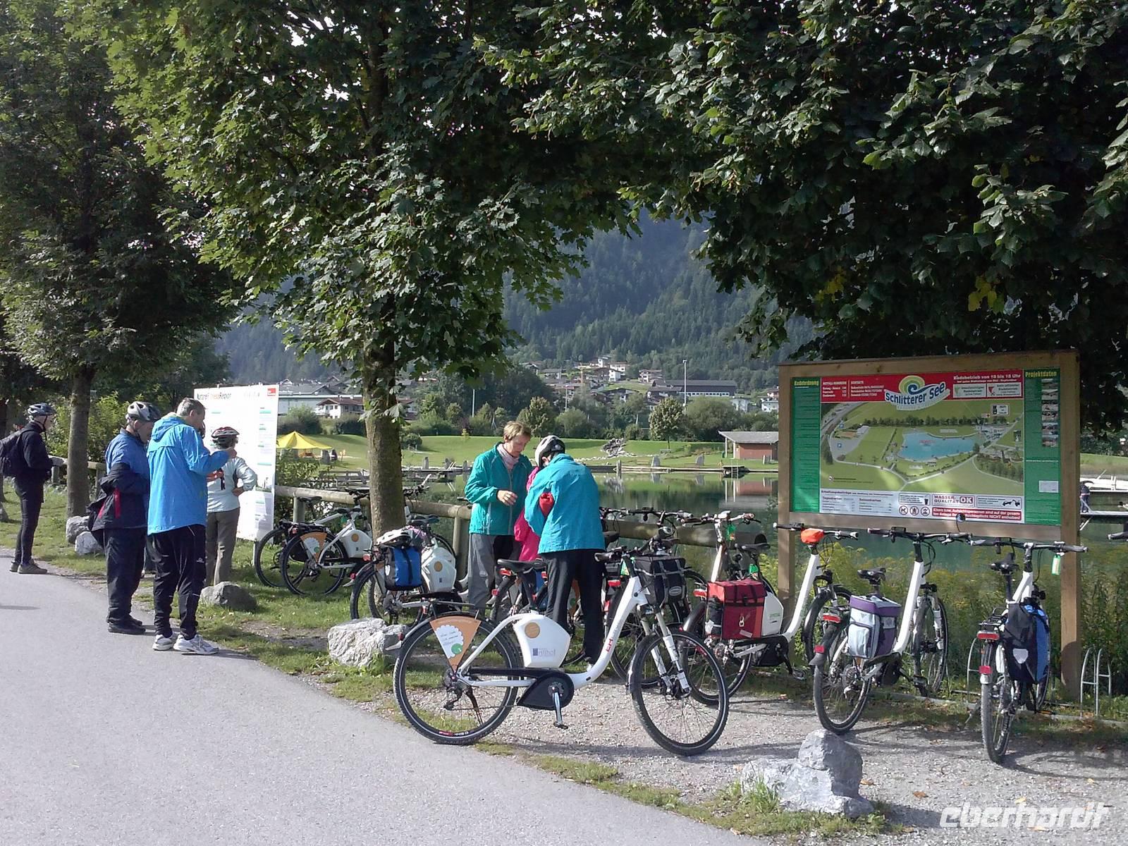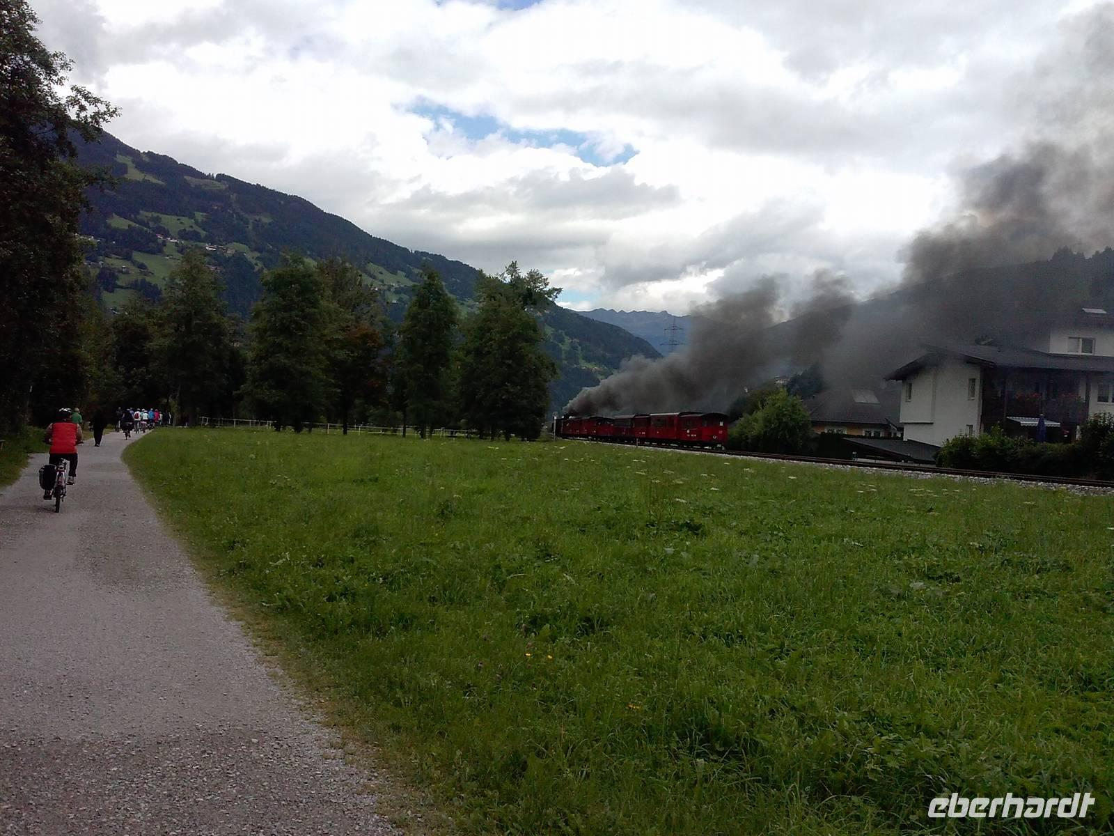 Früh am Morgen starten wir mit unserem Bus gen Zillertal. Da wir als Radgruppe nicht die Einzigen sind, die in diese schöne Ecke Tirols möchten, ist der Bus ordentlich gefüllt und wir haben mehrere Haltepunkte anzufahren. Gen Süden wird auch der Verkehr immer dichter und so entschließen wir uns, die Inntal-Autobahn zu verlassen und den schönen Weg über den Tegernsee und später über den Achensee zu fahren - hier sparen wir zwar nicht wirklich Zeit, aber dafür ist es schön! Dementsprechend spät kommen wir im Hotel an. Wir beziehen unsere Zimmer und können schon wenig später unsere E-Bikes begutachten. Die Sattel werden angepasst, die neue Schaltung ausprobiert und natürlich fährt jeder von uns eine kleine Proberunde. Etwas ungewohnt, aber wir haben ja eine Woche Zeit, um mit den Rädern warm zu werden. Am Abend kommen wir das erste Mal in den Genuß des hervorragenden Essens vom "Zillertaler Grillhof" und lassen dann den Tag in gemütlicher Runde ausklingen.