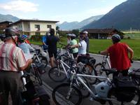 Unsere heutige zweite Fahrradtour ging in das berühmte Örtchen Mayerhofen. Die Sonne schien uns heute wieder auf den Pelz und so starteten wir vergnügt gegen 9 Uhr mit unseren schmucken Fahrrädern. Erster Stopp war der nahe gelegene Skilift der im Winter täglich 10.000 - 15.000 Menschen willkommen heißt. Danach ging es direkt nach Mayerhofen, wo wir zunächst einen kleinen Stopp mit Kaffee und Gepäck machten, bevor wir in die Stadt radelten. Durch eine trügerische Ampel wurden wir in zwei Gruppen geteilt und verbrachten die nächsten Minuten sehr unterschiedlich. Als wir alle wieder zusammen waren, radelten wir zu einem urigen Gasthaus, der Bruggerstube. Hier gibt es echte Tiroler Hausmannskost und dank mehrerer singfreudiger Gäste auch einen Gratis Schnaps für uns Radler. Nachdem wie uns wieder gestärkt hatten, ging es weiter in Richtung Zell am Ziller. Hier besuchten wir das Zillertaler Regionalmuseum und lernten einiges über die alten Lebensgewohnheiten der hiesigen Einwohner. Nachdem wir den Werkraum und die Küche und alle anderen Räume besucht hatten und wussten woher die Aussage:" Du hast aber einen ganz schönen Ranzen dran" stammt, radelten wir durch die schönen Tiroler Dörfer zurück ins Hotel.