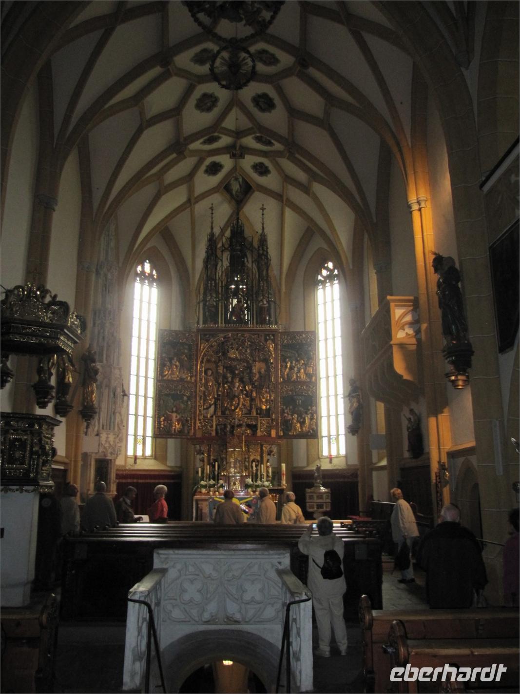 5. Tag, 24.05.2012: Neuer Tag, neues Glück! Heute wollen wir einen neuen Anlauf für unseren Ausflug nach Heiligenblut unternehmen. Erneut fährt allerdings ein österreichischer Bus vor, da unser Fahrzeug in der kurzen Zeit nicht zu reparieren war. Die Fahrt nach Heiligenblut dauert etwa zwei Stunden. Auf dem Weg machen wir eine Pause in Winkeln. die Passstrasse nach Heiligenblut, welche im weiteren Verlauf zum Großglockner führt, ist landschaftlich ausgesprochen reizvoll. Doch pünktlich bei unserer Ankunft setzt in Heiligenblut mal wieder Regen ein. Wir kämpfen uns dirch das Unwetter bis zur Pfarrkirche St. Vinzent. Die Pfarrkirche aus dem 13. Jahrhundert ist Aufbeahrungsort eines Fläschchens heiligen Blutes, welches Briccius vom byzantinischen Kaiser Konstantin VIII. zum Geschenk erhalten haben soll. Nach zirka einer Stunde machen wir uns auf den Weg zurück ins Tal. Nächster Halt ist Lienz.