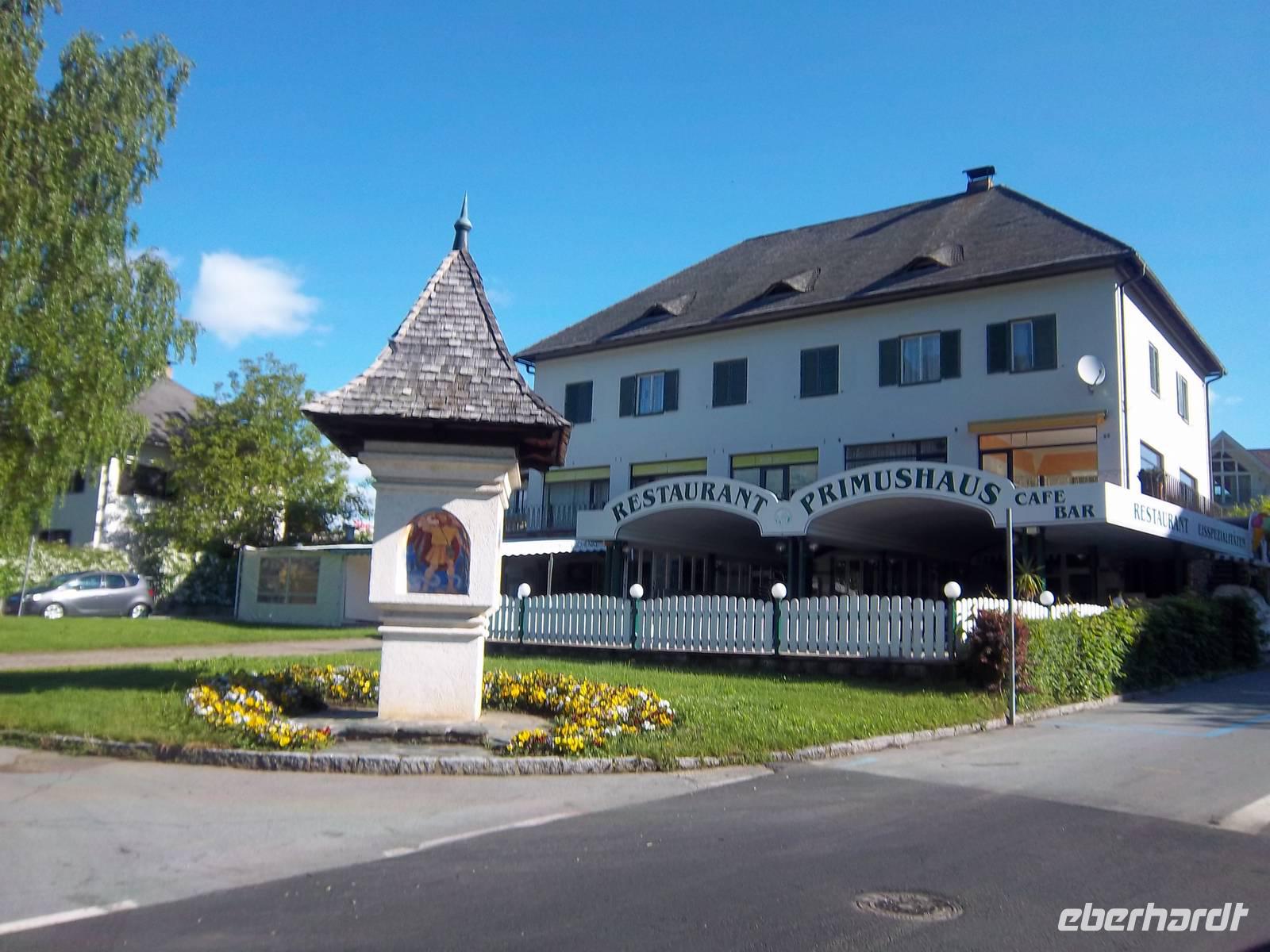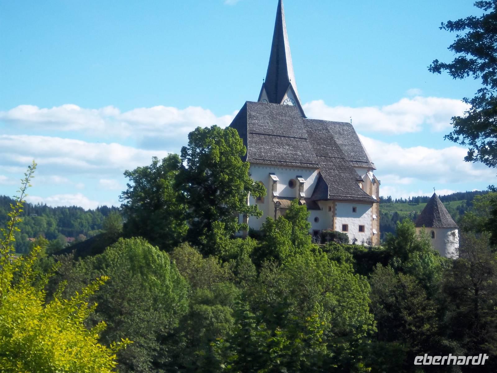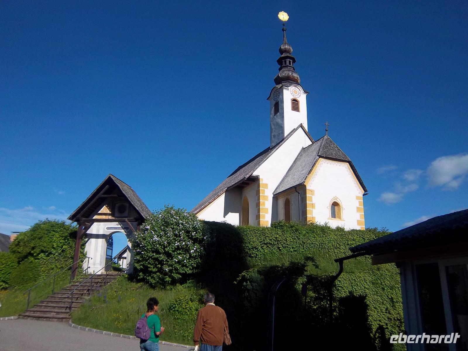 Der Bus brachte uns bei trübem Wetter zunächst nach Maria Wörth. Sehr fotogen zeigte sich trotzdem das Ensemble Winterkirche, Sommerkirche und Karner. Weiter ging es die Süduferstraße entlang nach Velden, wo wir das „Schloss am Wörthersee" aufsuchten, nach umfangreichem Umbau heute ein Hotel der gehobenen Klasse, in welchem man das preiswerteste Zimmer „schon" für etwa 250 Euro pro Nacht buchen kann. Nach oben sind die Preise selbstverständlich offen. Das Casino darf man betreten, wenn man 27 Euro löhnt. Dafür kann man einen Chip zu 30 Euro einlösen, den man dann auch verspielen darf. Wir haben unserem Glück nicht getraut und begaben uns lieber wieder zur Bushaltestelle.