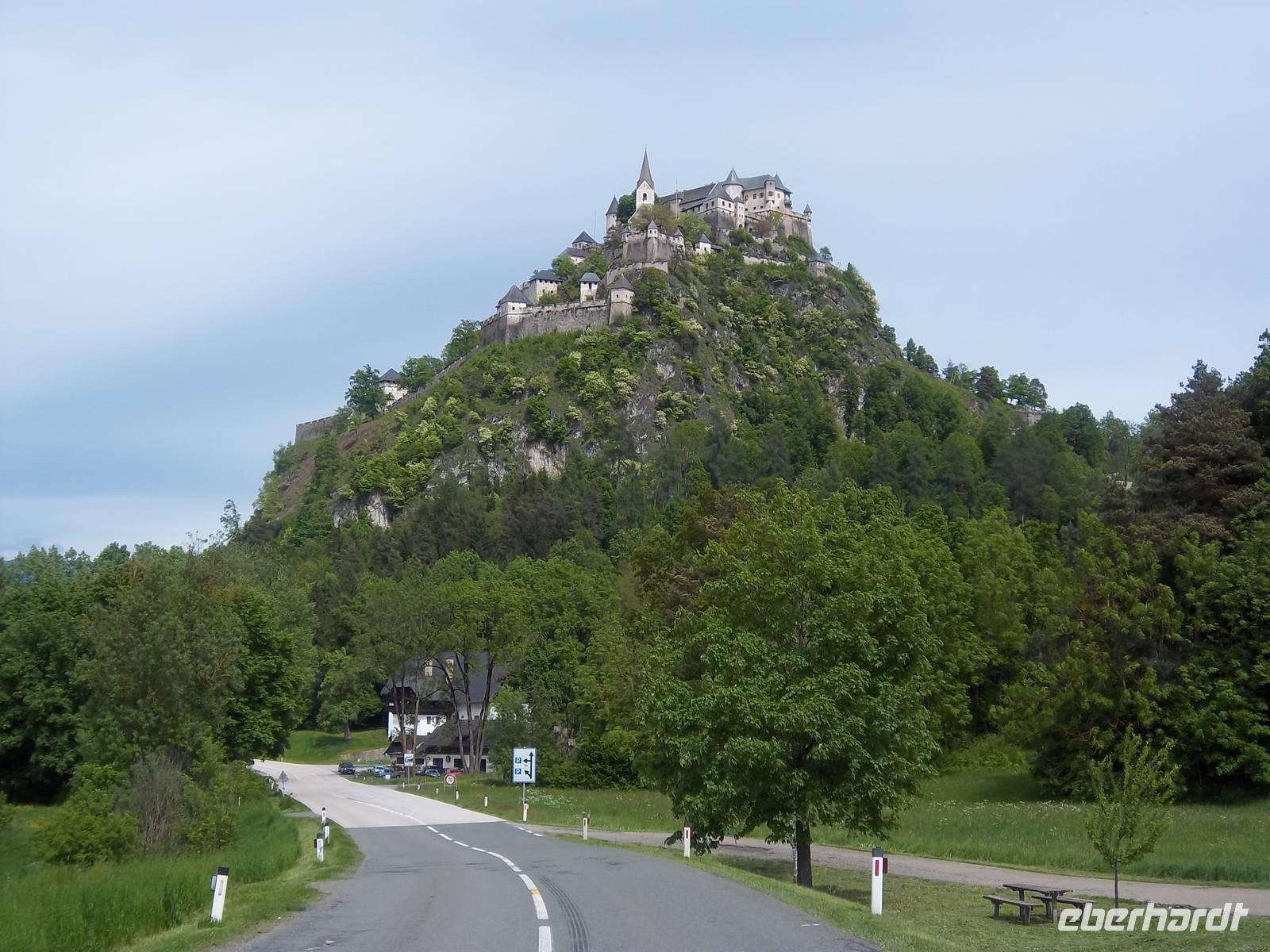 Bei etwas aufklarendem Wetter kam am Nachmittag die Burg Hochosterwitz in Sicht. Angesichts eines Schrägaufzugs, dessen Kabine nur 7 Personen fasst, verzichteten einige unserer Gäste auf das „Abenteuer Festung". Nur wenige nahmen den Aufstieg zu Fuß in Angriff, was heute etwas leichter zu sein scheint, mussten doch früher bei einem Angriff 14 Burgtore überwunden werden. Kein Wunder also, dass die Burg nie erobert wurde.