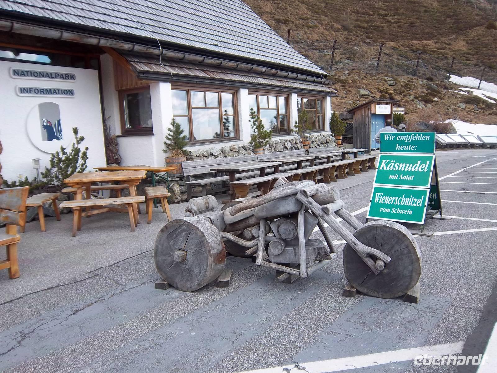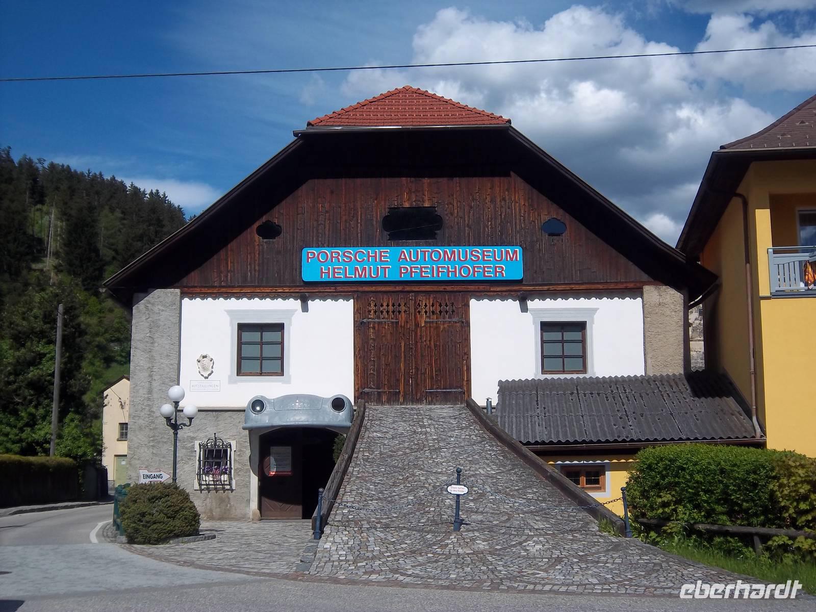Wegen Schlechtwetterprognosen für die nächsten Tage machten wir diesen Ausflug einen Tag früher als im Programm vorgesehen. Über Feldkirchen und Ebene Reichenau erreichten wir die östliche Mautstation. Nach steilem Anstieg legten wir am Windebensee die erste Fotopause ein. Schon dort blies ein kalter und steifer Wind, der dem Namen des Sees alle Ehre machte. Nur wenige Minuten später hielt unser Bus an der Glockenhütte auf der Schiestelscharte, dem ersten Scheitelpunkt der Nockalmstraße. Von dort Schussfahrt ins Tal vorbei am urigen Karlbad und wieder steil hinauf zur Eisentalhöhe, dem zweiten Scheitelpunkt und gleichermaßen auch höchstem Punkt dieser Mautstraße. Dort empfing uns heftiges Schneetreiben verbunden mit Schneeverwehungen. Das hielt unsere Gäste davon ab, die wohlige Wärme des Busses zu verlassen, so dass wir sofort weiterfahren konnten. Entsprechend zeitig trafen wir dadurch auch in Gmünd ein, wo wir uns einen längeren Aufenthalt gönnen konnten. Dort besuchten einige Interessierte das Porsche-Museum. Ein Großteil unserer Gäste sah sich auf dem langen Straßenmarkt um und nutzte die wenigen Sonnenstrahlen, die uns der Himmel schickte, für einen Kaffee im Freien.
