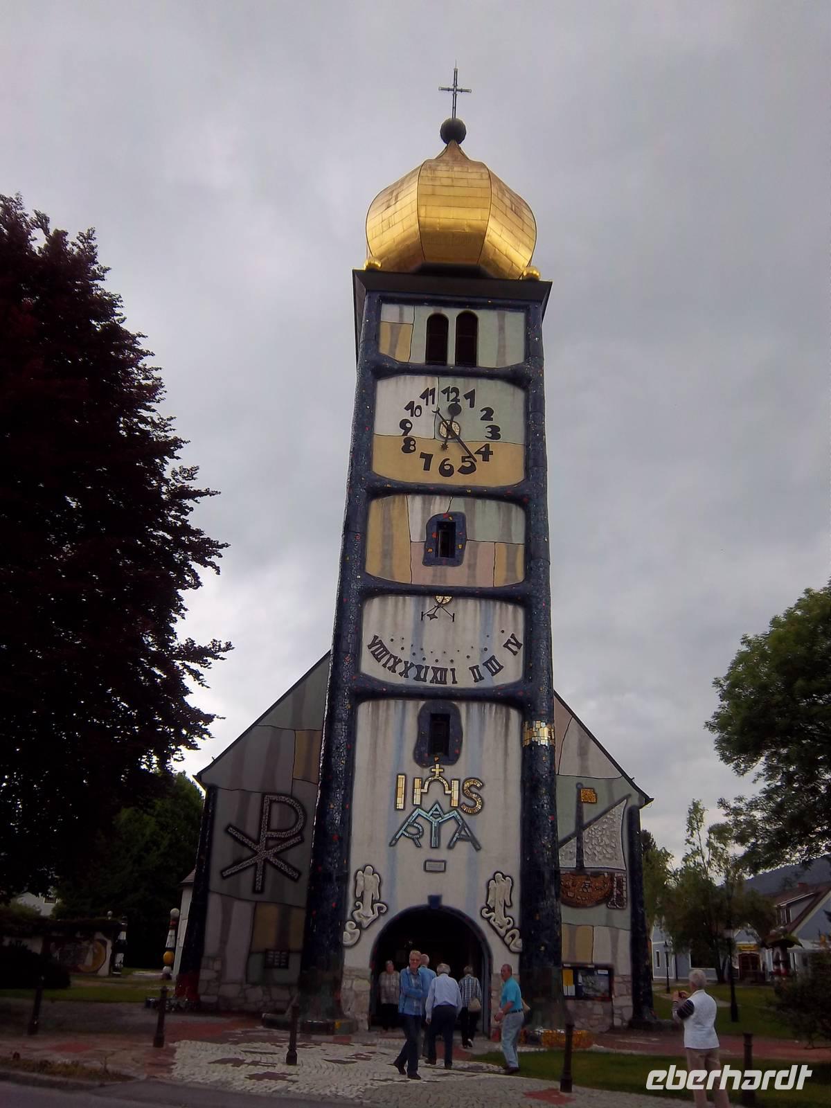 Auch an diesem Tag hing der Himmel voller Wolken. Wir waren aber froh, dass es im wesentlichen trocken blieb. Bei einer Führung durch das Gestüt Piber erfuhren wir viel Wissenswertes über die Zucht der Lipizzaner. Wenige Kilometer weiter besichtigten wir die von Friedensreich Hundertwasser gestaltete Kirche in Bärnbach. Über die Schilcherstraße , die längste Weinstraße der Steiermark, erreichten wir Eibiswald. Von dort aus gelangten wir über den Südrand der Koralpe entlang der Slowenischen Grenze durch eine sehr abwechslungsreiche Landschaft n ach Lavamünd. Phantastisch ist die „Sturzfahrt" hinunter ins Drautal. Über Völkermarkt und Klagenfurt erreichten wir unser Hotel.