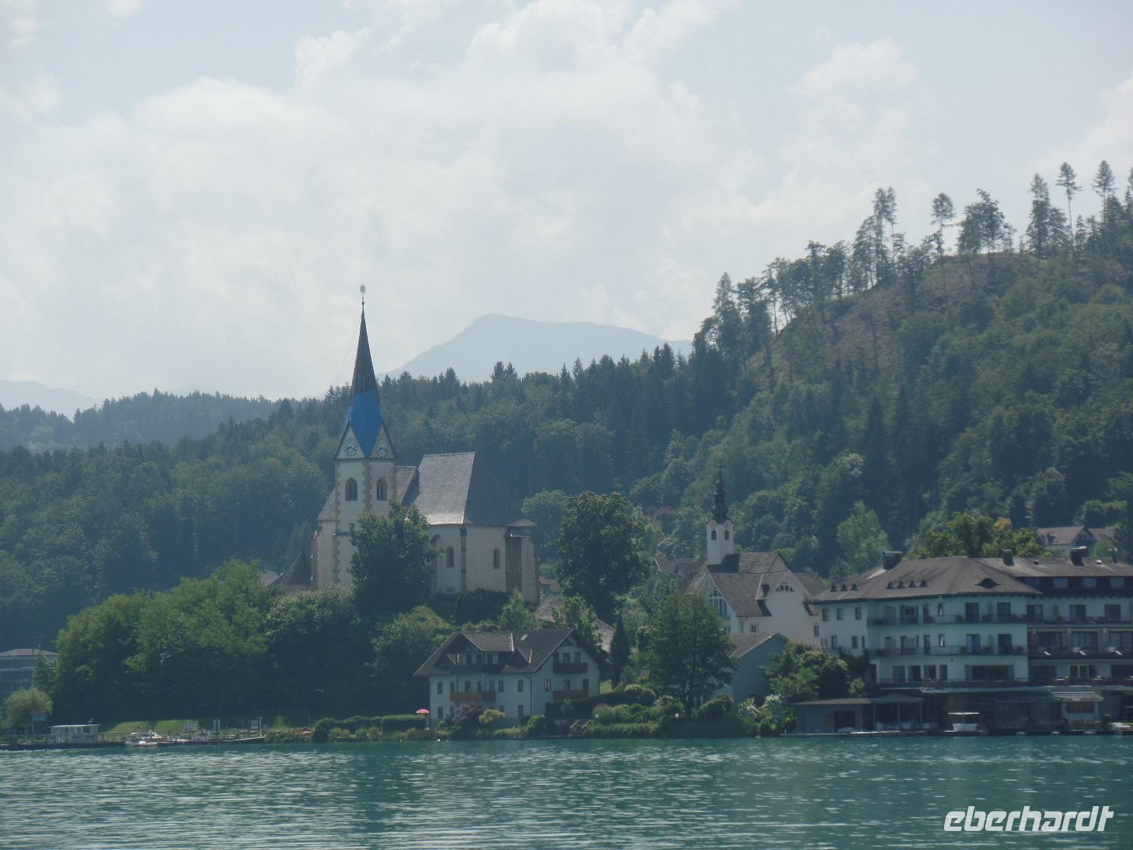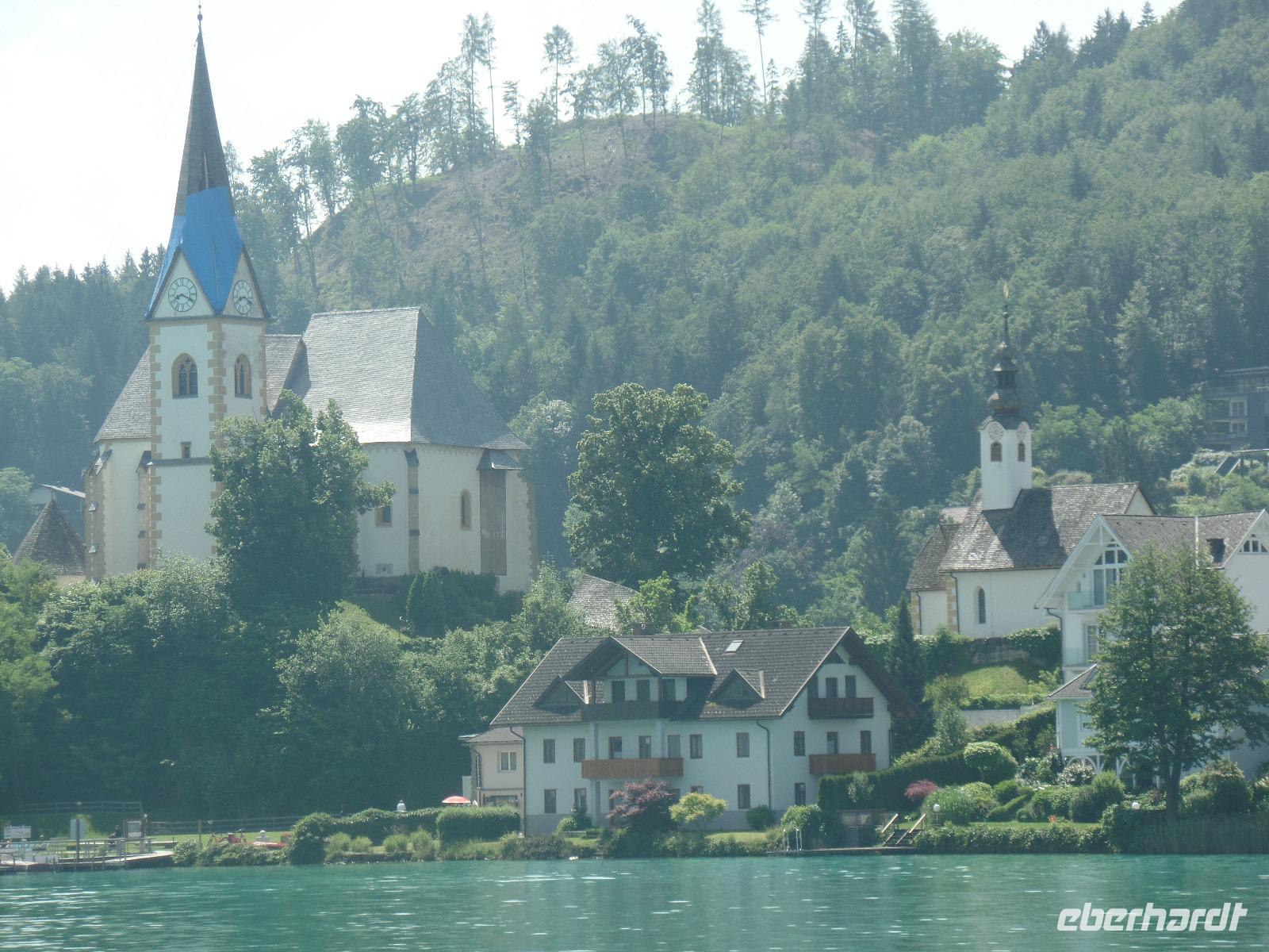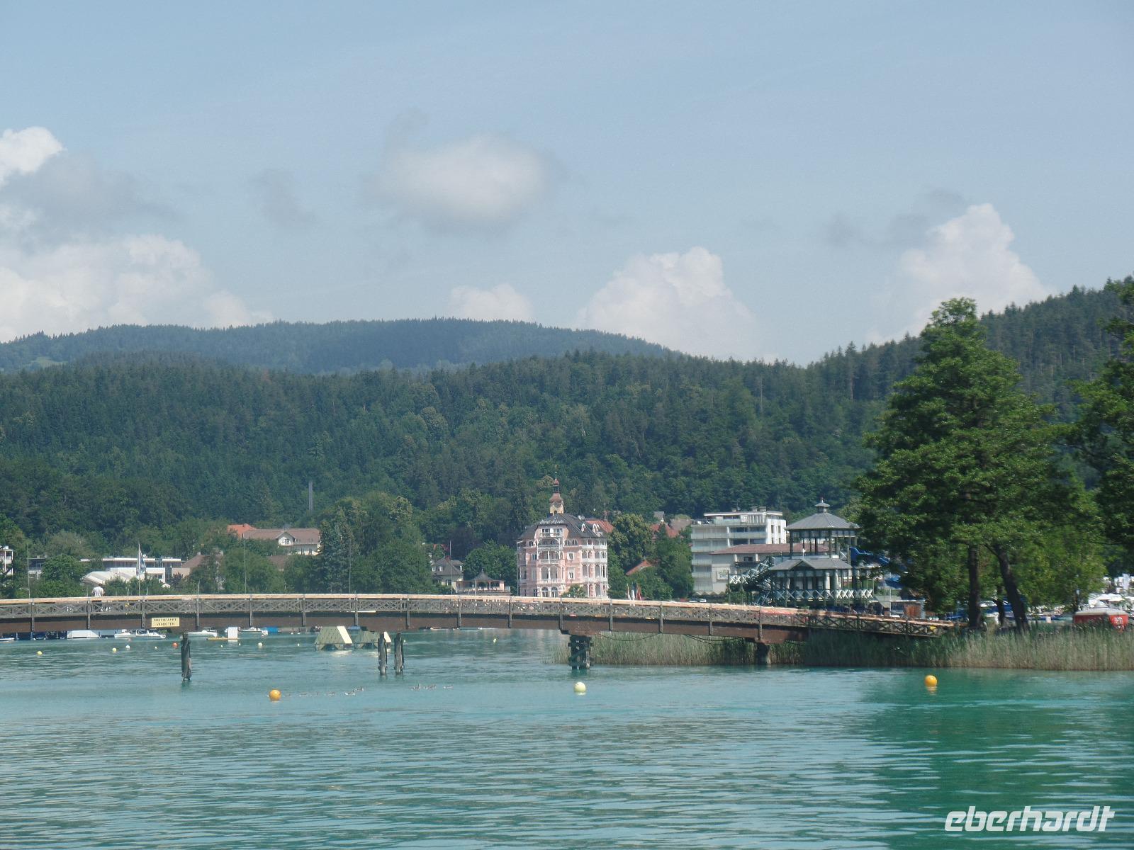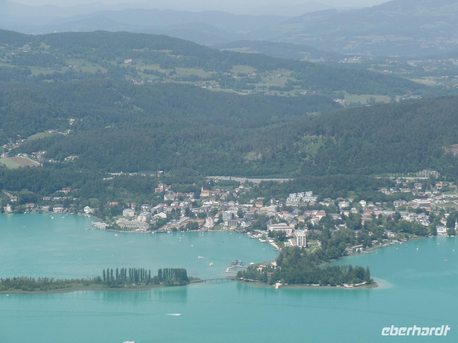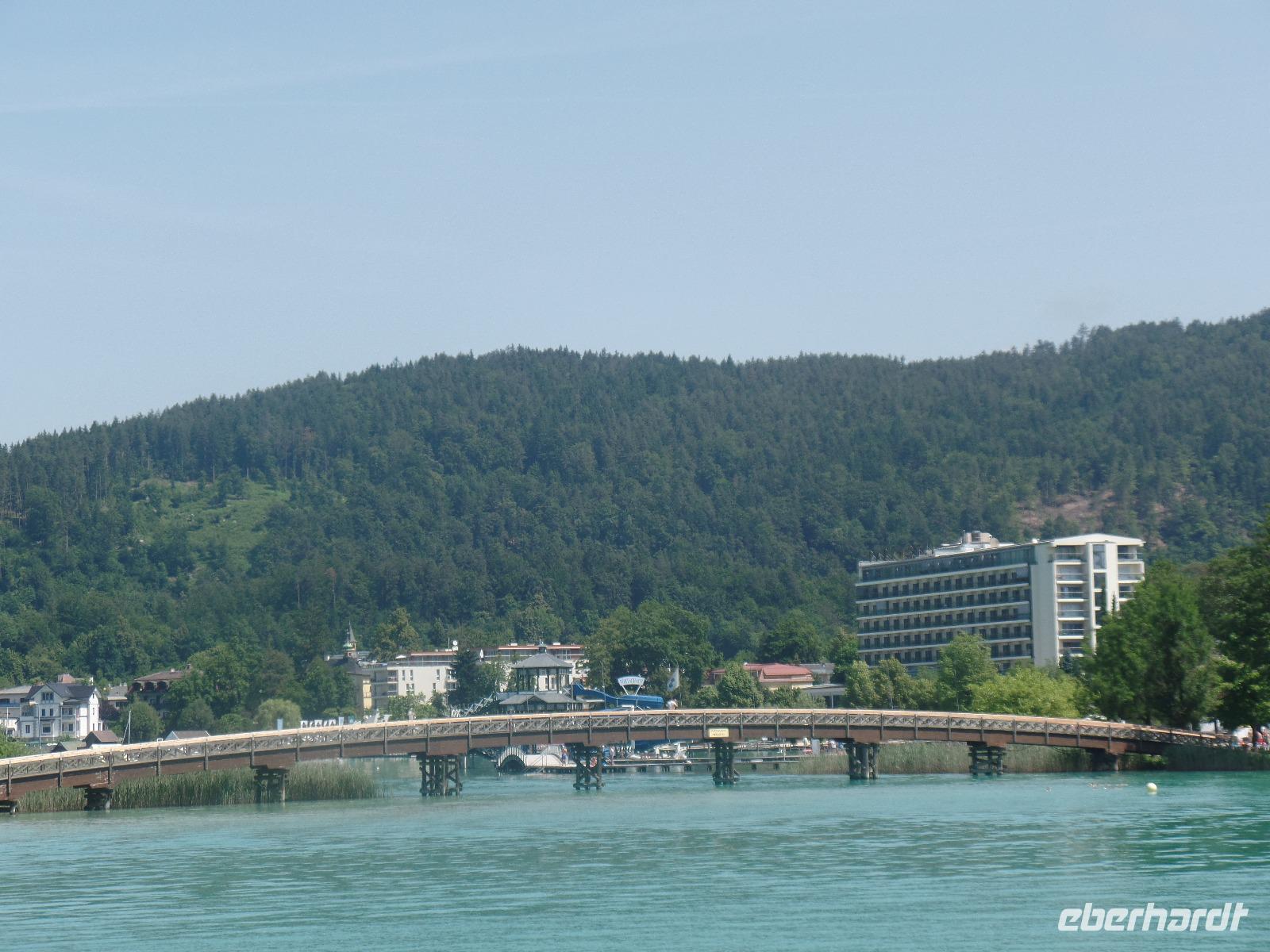 Der größte See Kärntens sollte entdeckt werden. In Velden unterhalb des Schloss am Wörtersee legte das Schiff zu einer Seerundfahrt ab. Auch heute bei schönem Wetter konnten wir die Fahrt genießen. Entlang der Seeufer hatten wir den Blick auf einige tolle Villen der „Schönen und Reichen". Unser Kapitän erzählte dazu so einige Anekdoten und Geschichten. Die 2- stündige Fahrt verging wie im Flug. Aber es stand ja noch ein besonderes Ziel bevor, der Pyramidenkogel. Schon während der Schifffahrt war er zu sehen. Auf dem Aussichtsberg Pyramidenkogel 851m befand sich ein Aussichtsturm. Er wurde abgerissen und 2013 der neue Aussichtsturm eröffnet. Mit 100m Höhe ist er der höchste Aussichtsturm der Welt aus Holz. Ein imposantes Meisterwerk. Der Fahrstuhl brachte uns bequem nach oben. Ein phantastischer Rundumblick erwartete uns. Der Wörthersee war in seiner vollen Schönheit zu sehen und der Blick auf die Karawanken bis hin zu den Julischen Alpen liessen auch keine Wünsche offen. Auch heute nutzen wir noch einmal die Gelegenheit für ein Bad im Ossiacher See.