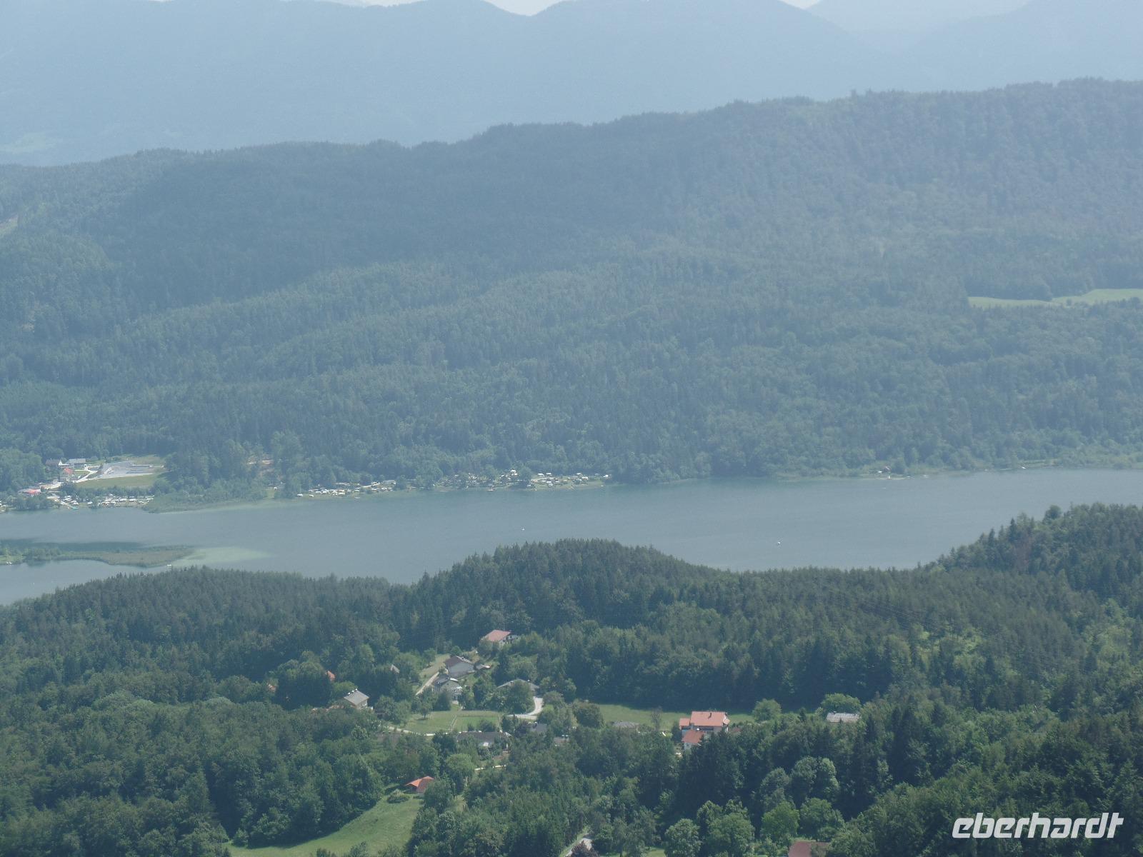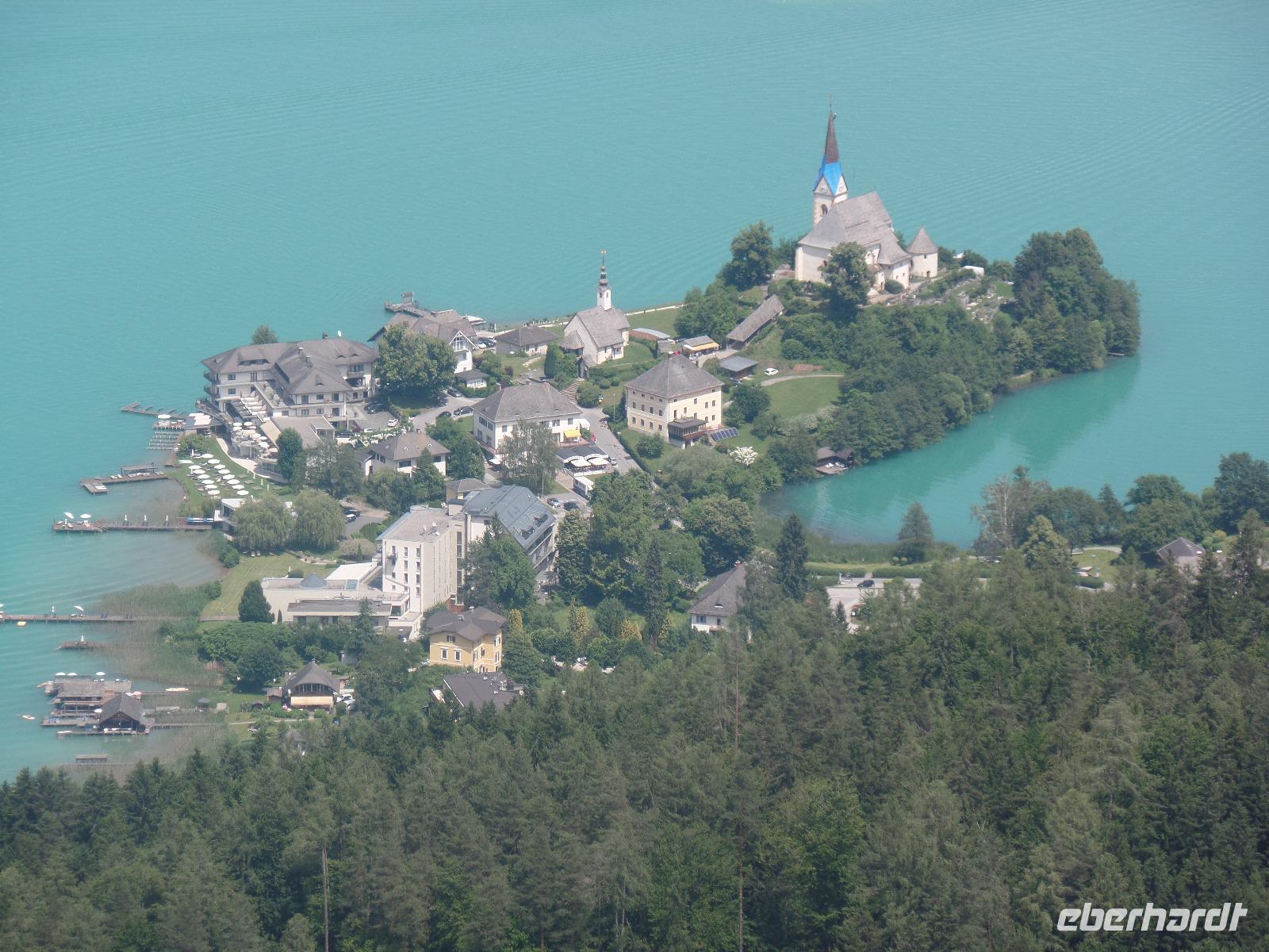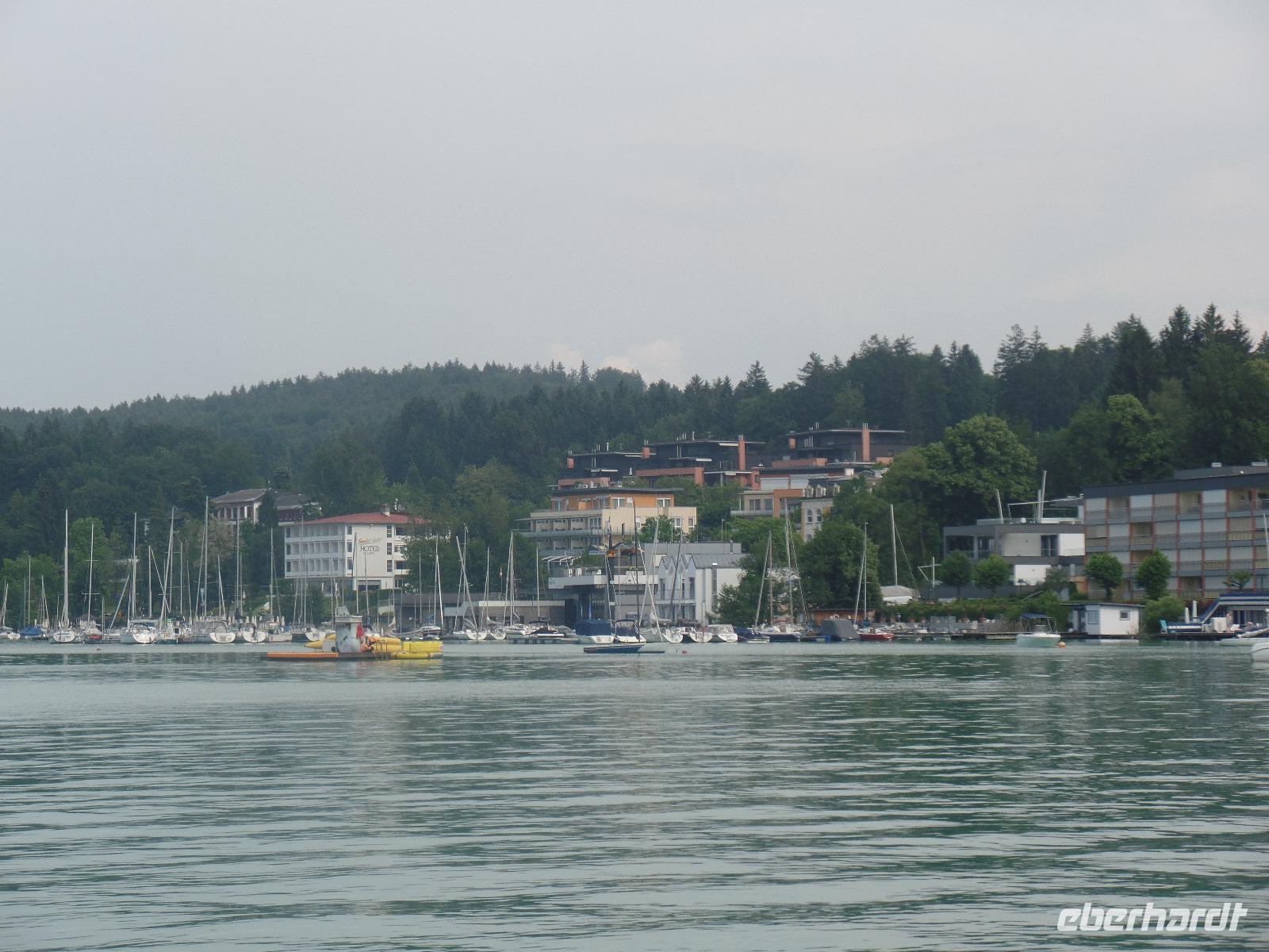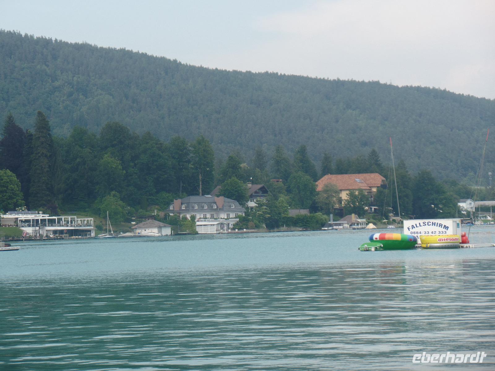 Der größte See Kärntens sollte entdeckt werden. In Velden unterhalb des Schloss am Wörtersee legte das Schiff zu einer Seerundfahrt ab. Auch heute bei schönem Wetter konnten wir die Fahrt genießen. Entlang der Seeufer hatten wir den Blick auf einige tolle Villen der „Schönen und Reichen". Unser Kapitän erzählte dazu so einige Anekdoten und Geschichten. Die 2- stündige Fahrt verging wie im Flug. Aber es stand ja noch ein besonderes Ziel bevor, der Pyramidenkogel. Schon während der Schifffahrt war er zu sehen. Auf dem Aussichtsberg Pyramidenkogel 851m befand sich ein Aussichtsturm. Er wurde abgerissen und 2013 der neue Aussichtsturm eröffnet. Mit 100m Höhe ist er der höchste Aussichtsturm der Welt aus Holz. Ein imposantes Meisterwerk. Der Fahrstuhl brachte uns bequem nach oben. Ein phantastischer Rundumblick erwartete uns. Der Wörthersee war in seiner vollen Schönheit zu sehen und der Blick auf die Karawanken bis hin zu den Julischen Alpen liessen auch keine Wünsche offen. Auch heute nutzen wir noch einmal die Gelegenheit für ein Bad im Ossiacher See.