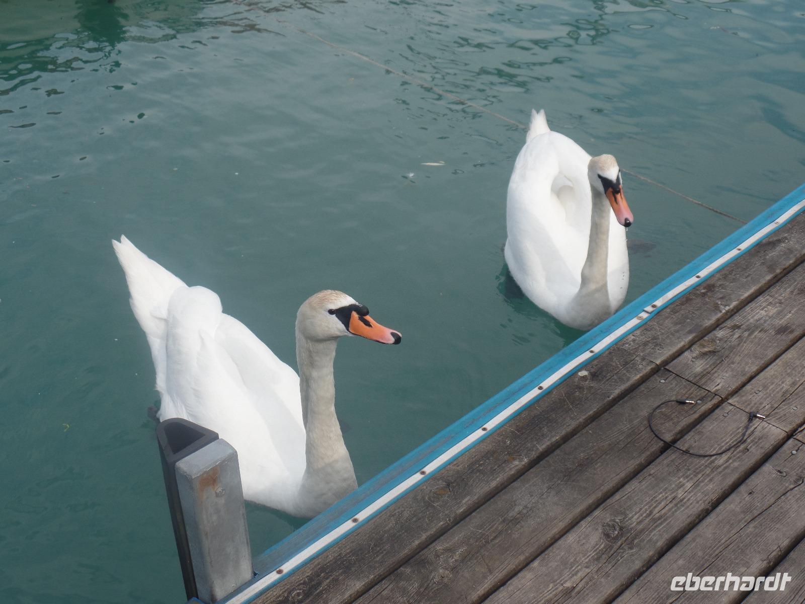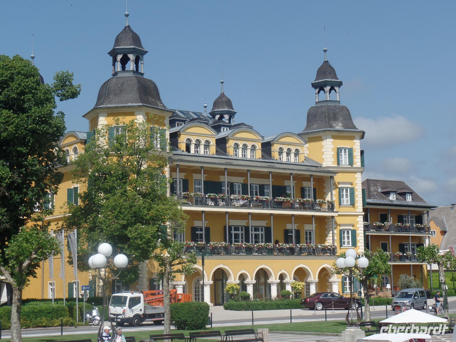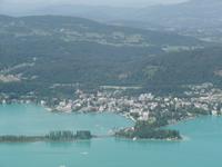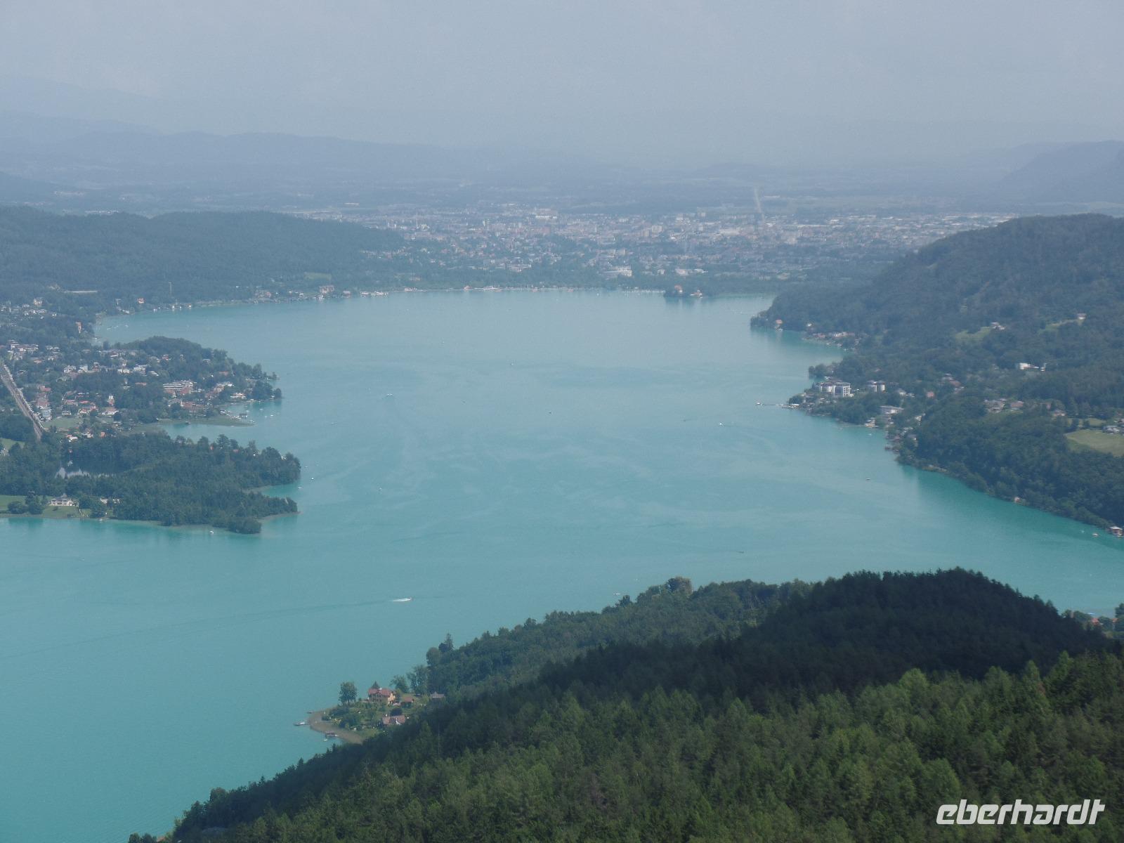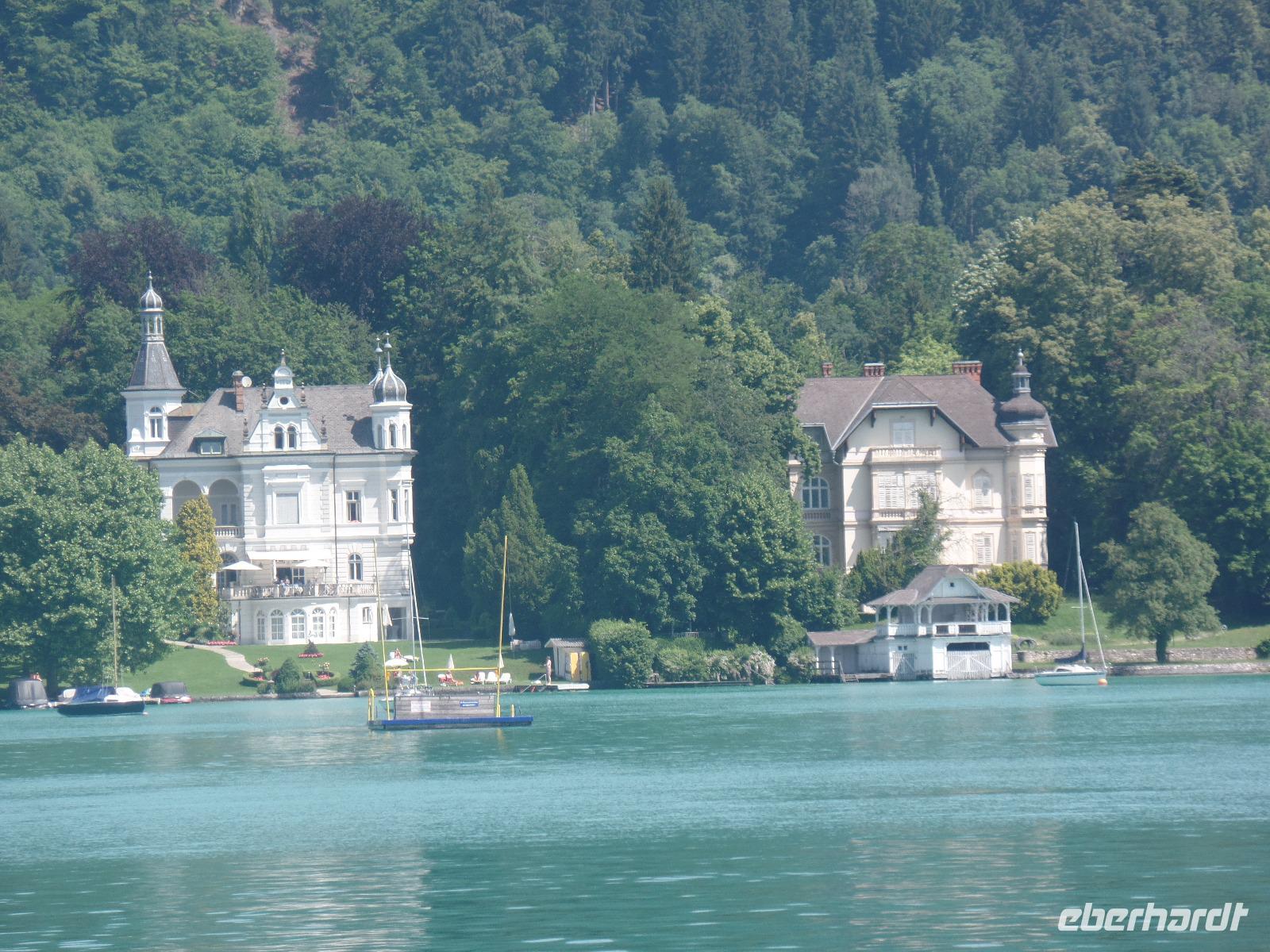 Der größte See Kärntens sollte entdeckt werden. In Velden unterhalb des Schloss am Wörtersee legte das Schiff zu einer Seerundfahrt ab. Auch heute bei schönem Wetter konnten wir die Fahrt genießen. Entlang der Seeufer hatten wir den Blick auf einige tolle Villen der „Schönen und Reichen". Unser Kapitän erzählte dazu so einige Anekdoten und Geschichten. Die 2- stündige Fahrt verging wie im Flug. Aber es stand ja noch ein besonderes Ziel bevor, der Pyramidenkogel. Schon während der Schifffahrt war er zu sehen. Auf dem Aussichtsberg Pyramidenkogel 851m befand sich ein Aussichtsturm. Er wurde abgerissen und 2013 der neue Aussichtsturm eröffnet. Mit 100m Höhe ist er der höchste Aussichtsturm der Welt aus Holz. Ein imposantes Meisterwerk. Der Fahrstuhl brachte uns bequem nach oben. Ein phantastischer Rundumblick erwartete uns. Der Wörthersee war in seiner vollen Schönheit zu sehen und der Blick auf die Karawanken bis hin zu den Julischen Alpen liessen auch keine Wünsche offen. Auch heute nutzen wir noch einmal die Gelegenheit für ein Bad im Ossiacher See.