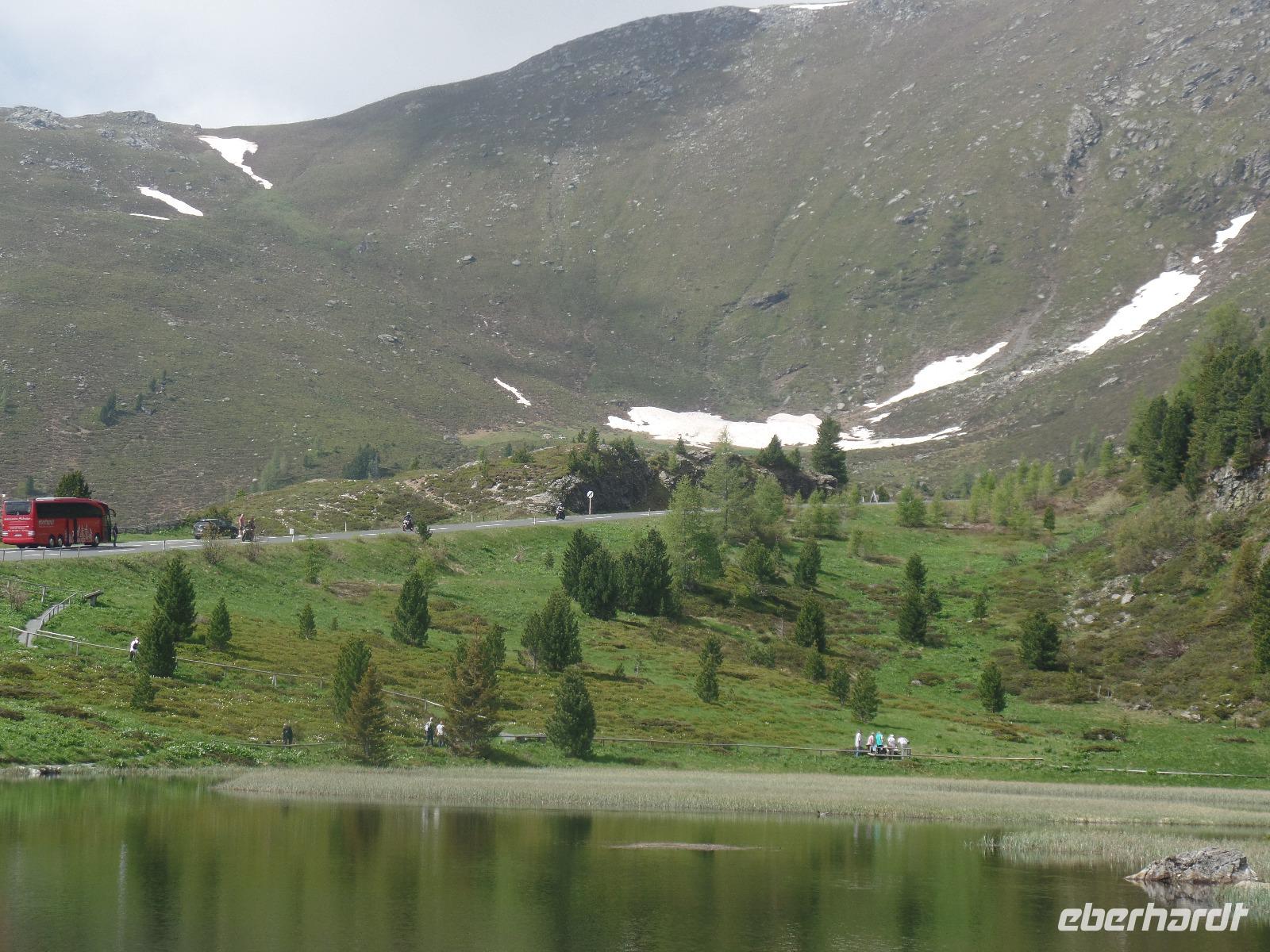 Die Nockalmstraße war unser heutiges Ziel. In der Ebene Reichenau auf 1500m Höhe begann die wunderschöne Mautstraße. Die Nockberge sind eine seichte Berge die in ihrer Form an Nocken erinnern. Die gesamte Strecke beträgt 35 km und es sind 52 Kehren zu bewältigen. Am Windichsee spazierten um den schönen See. Die ersten Alm Blumen waren schon zu sehen. Der Enzian und die ersten Almrosen waren schon zu sehen. Die Sonne schien und spiegelte sich im See. An der Glocknerhütte wurde die Glücksglocke geläutet und die ersten Souvenirs eingekauft. Ein schöner Blick über die Nockberge und weiter ging die Fahrt vorbei am Karlsbad, einem heute noch genutzten Kurbad, zur Zechnerhütte, wo wir einkehrten. Der Himmel verdunkelte sich und es regnete. Doch das störte uns nicht. Kurz darauf wurde es wieder schöner und wir fahren durch das Liesertal nach Gmünd .In der mittelalterliche Künstlerstadt befinden sich viele Galerien und Werkstätten. Der Marktplatz wird durch zwei Stadttore begrenzt. Oberhalb thront die alte Burganlage und unten befindet sich das Neue Schloss. Die Stadt lud zum Bummeln ein.
