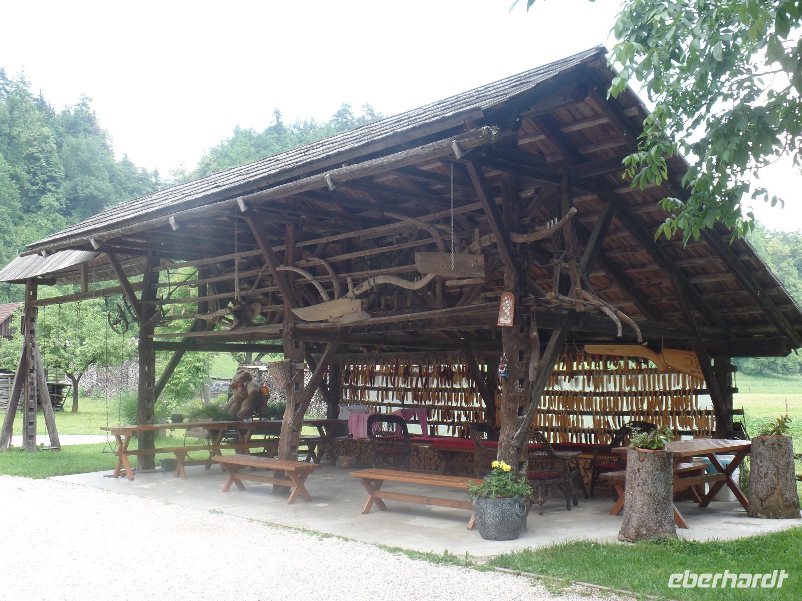 Auf nach Slowenien. Durch das beliebte Rosental fuhren wir vorbei an der Tscheppaschlucht auf den Loiblpass 1368m hinauf. Er ist die Verbindung über die Karawanken zwischen Kärnten mit Oberkrain. Eine enge Straße führte uns nach Begunje. Bekannt durch das Museum und die Musik der Oberkrainer. Wir erreichten den Bleder See und hatten den ersten schönen Blick auf den See und die Berge der Karawanken. Der Hunger schlich sich ein und so fuhren wir weiter nach Selo. Auf dem Bauernhof der Familie Soklic wurden wir schon mit einem Sliwowitz oder einen Heidelbeerschnaps erwartet. Nach einer kurzen Erläuterung über den Bauernhof ließen wir uns den selbst gemachten Schinken, die Wurst, den Käse und Salat munden. Ein Glas Wein durfte natürlich auch nicht fehlen. Zurück am Bleder See entschieden wir uns eine Bootsfahrt zur Insel im See zu unternehmen. Bei schönem Wetter ein tolles Erlebnis.