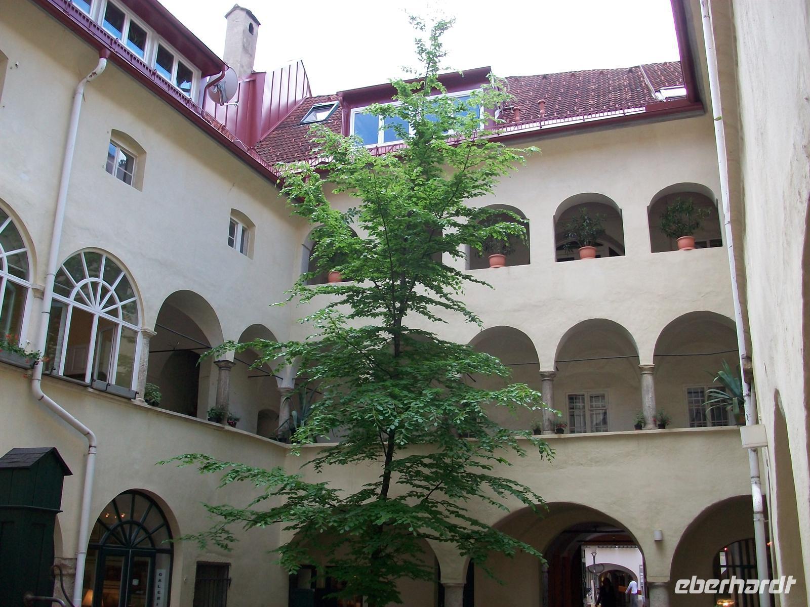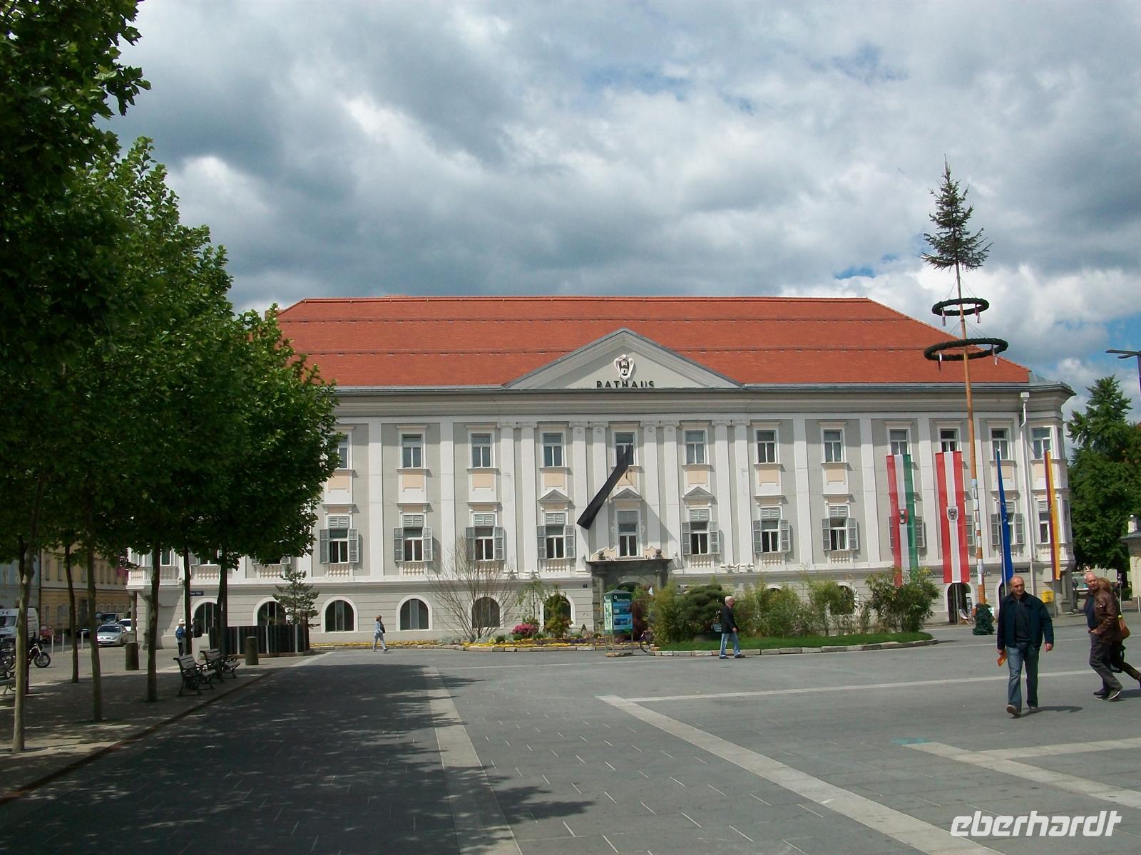 Dann ist man bald auf der Hauptfußgängerzone angelangt mit ihren gepflegten Geschäften und Restaurants. Links ist das mächtige Landhaus zu sehen, das administrative Zentrum Kärntens. Es ist ein schöner Tag in Klagenfurt und bis um zwei werden wir uns hier aufhalten, genügend Zeit für einen Bummel und ein Mittagessen in einem der zahlreichen Restaurants stärkt uns für das weitere Programm.