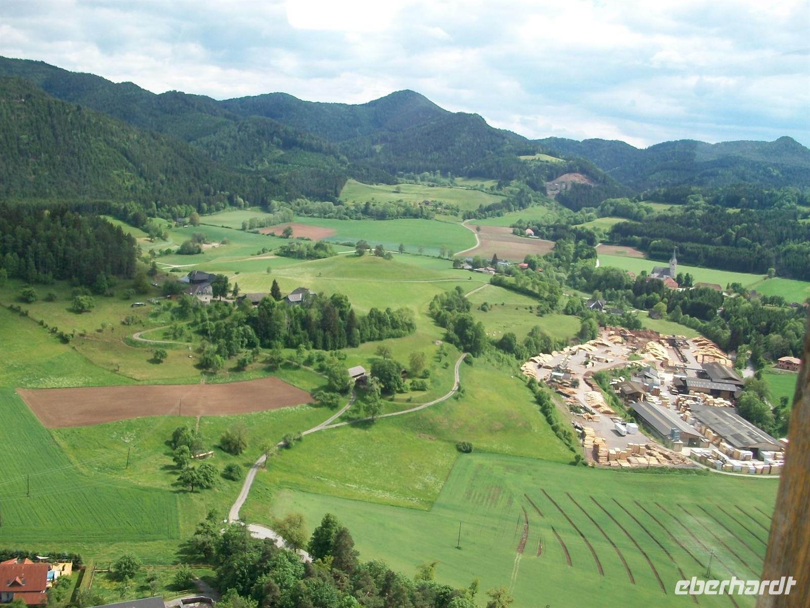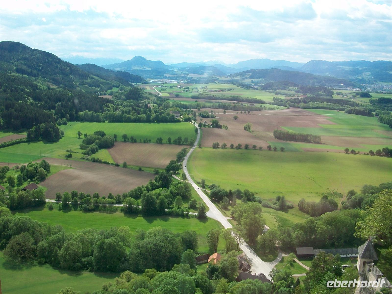 Ganz im Süden ist auch die Bergkette der Karawanken zu sehen, dahinter liegt Slowenien.