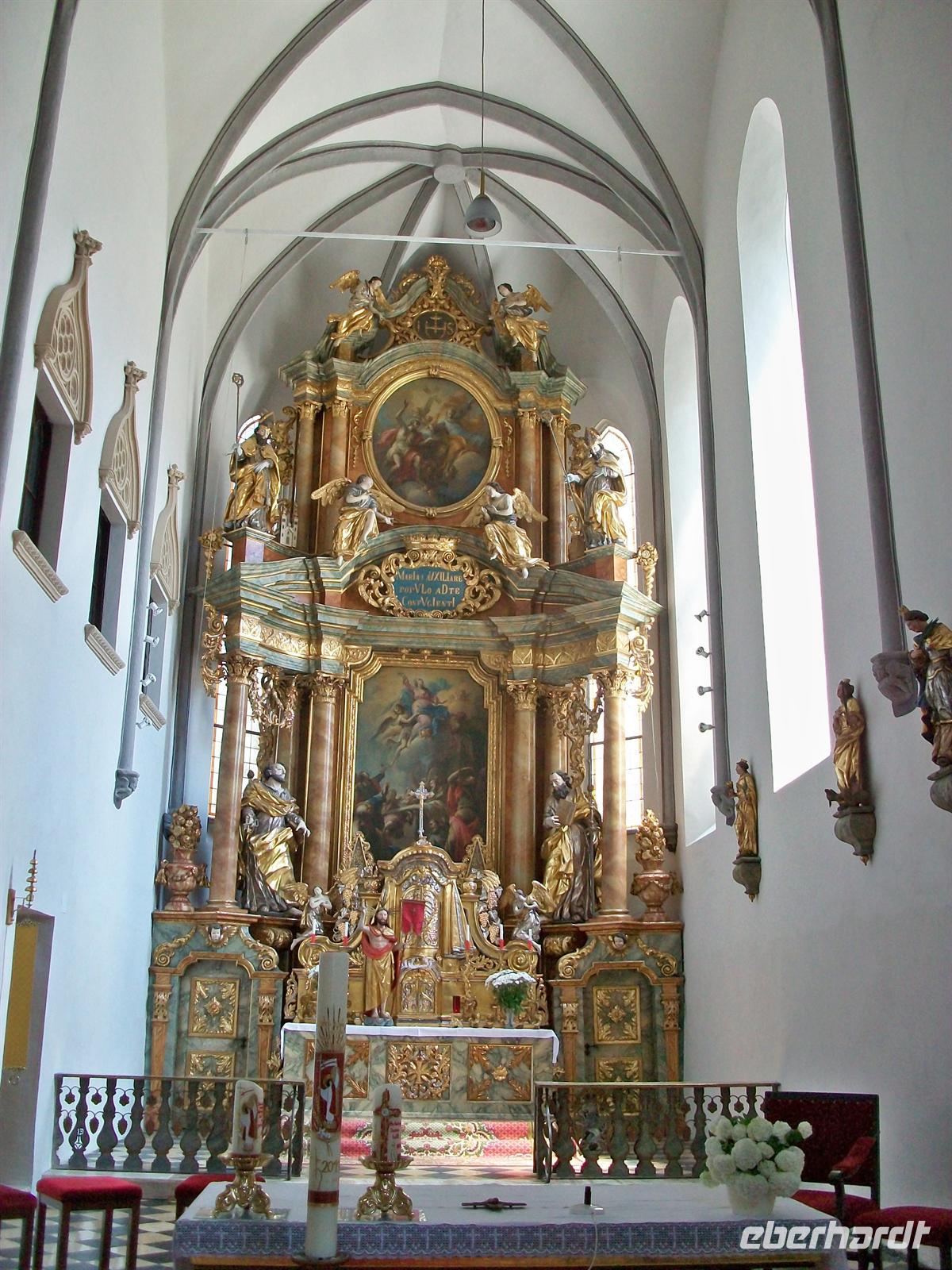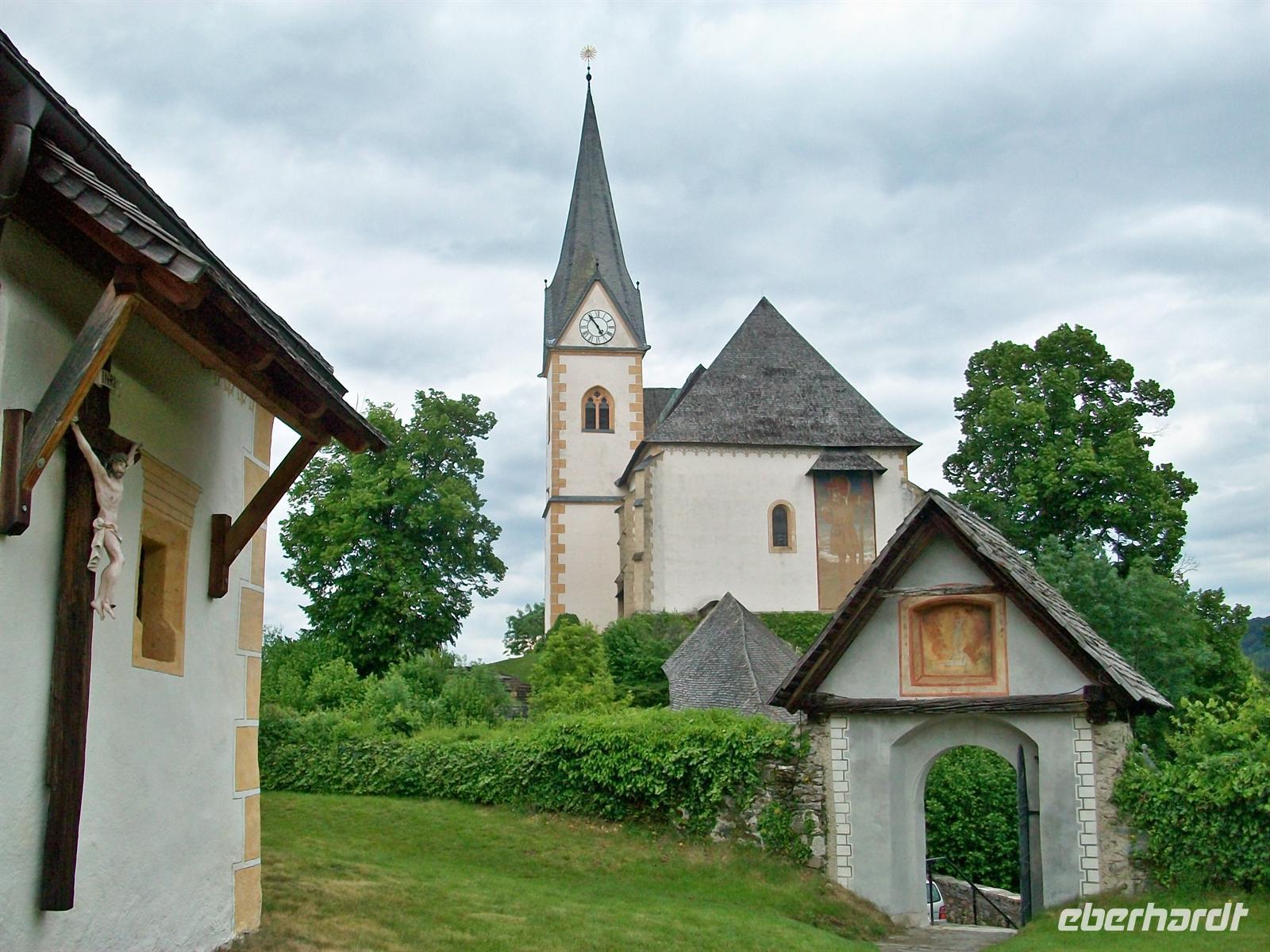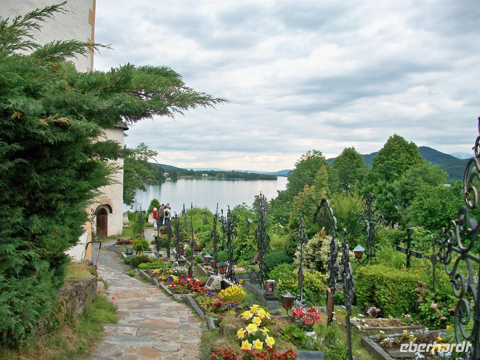 spätgotischen Kirche St.Felician. Im Innern ist diese Kirche sehr üppig mit einer Barockausstattung versehen wurden, im Hochaltar ist eine Schutzmantelmadonna zu sehen. Es lohnt auch ein kleiner Rundgang um die Kirche, hier sind die sehr gepflegten Gräber des Friedhofes zu sehen und der Ausblick auf den See ist hier oben besonders schön.