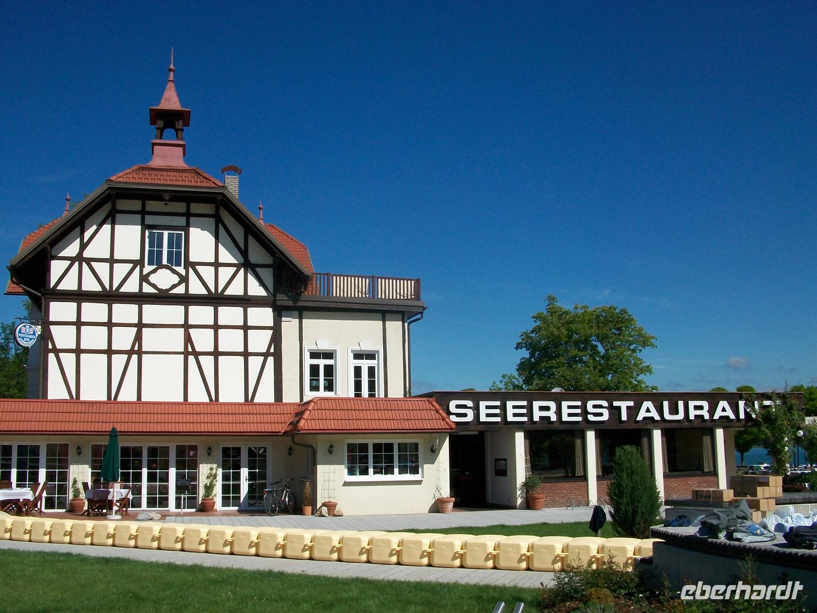 In wenigen Minuten ist man am See angelangt der von hier besonders schön aussieht. Dem Ufer gegenüber ist der prunkvolle gelbe Bau des Schlosses zu sehen. Ich unternehme einen kleinen Spaziergang an der Uferpromenade mit den gepflegten Anlagen. Hier ist auch der Schiffsanleger für die Ausflüge die man auf dem See unternehmen kann. In Richtung Ortskern kommt man dann auch am bekannten Casino vorbei, einem sehr modernen Rundbau. Um diese Tageszeit ist hier noch nicht viel los, ein Blick in den schön gestalteten Vorraum lohnt sich aber.