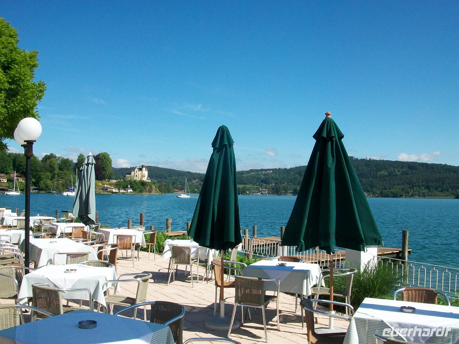 verlockender Duft von Kaffee steigt mir in die Nase. Muntere Stimmen zeugen davon dass die meisten der Reisegäste schon eingetroffen sind. Vom Restaurant kann man direkt auf den Wörthersee schauen und der schöne Ausblick macht Appetit auf den heutigen Tag.
