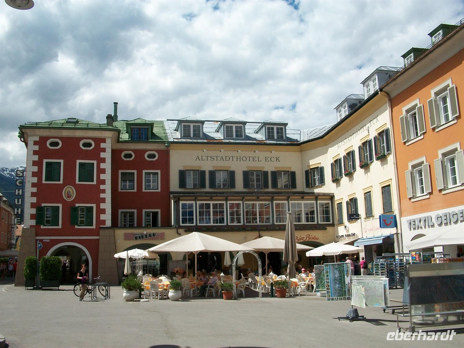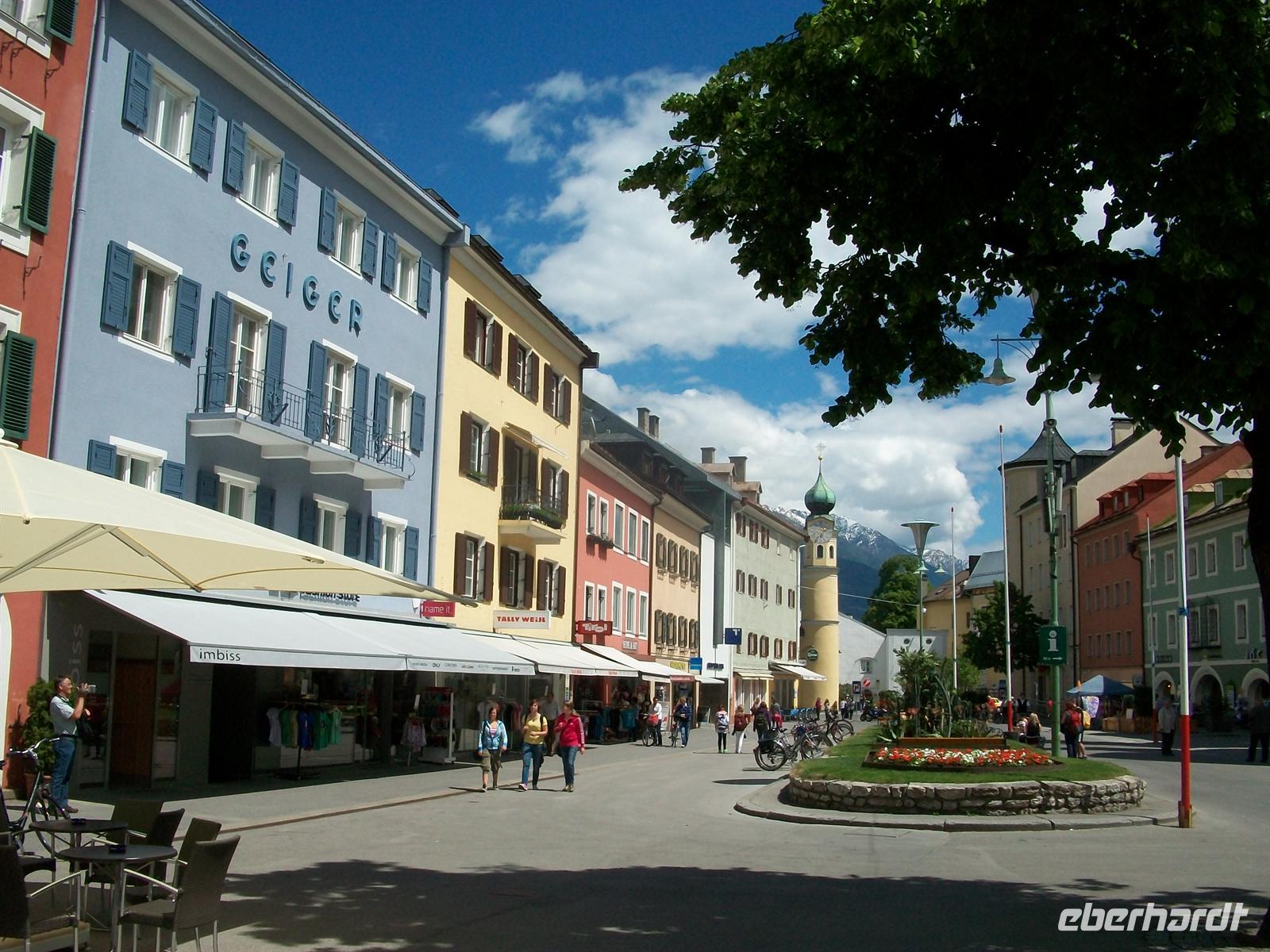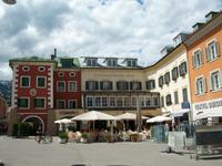 Weg ins Ortszentrum. Auch hier treffen sich zwei Flüsse: die Isel und die Drau. Lienz ist heute Bezirkshauptstadt von Osttirol. Seit Ende des 1.Weltkrieges ist Tirol geteilt, Südtirol gehört seit dieser Zeit zu Italien, Ost und Nordtirol zu Österreich. Lienz, nicht zu verwechseln mit Linz in Oberösterreich, ist ein beschauliches Örtchen. Unweit der Fußgängerzone können wir gegen 13.40 Uhr unseren Bus abstellen und die Reisegäste sind schon unterwegs diesen schönen Ort zu erkunden. An einer Passage entlang erreicht man den langgestreckten Hauptplatz mit den sehr gepflegten Bürgerhäusern. Hier herrscht zu dieser frühen Nachmittagsstunde ein buntes Treiben; der warme Sonnentag lädt ein um im Freien einen Kaffee zu trinken oder beim Italiener einen Eisbecher zu genießen. Dieser Teil der Altstadt ist autofrei und wird dominiert von der Liebburg mit ihren eigenartig gestalteten zwei Türmen. Auch dieser Ort ist umgeben von den Bergen und ein Bummel durch die schöne Altstadt mit den zahlreichen Arkaden ist sehr erholsam. Ein schöner Nachmittag hier in den Bergen!