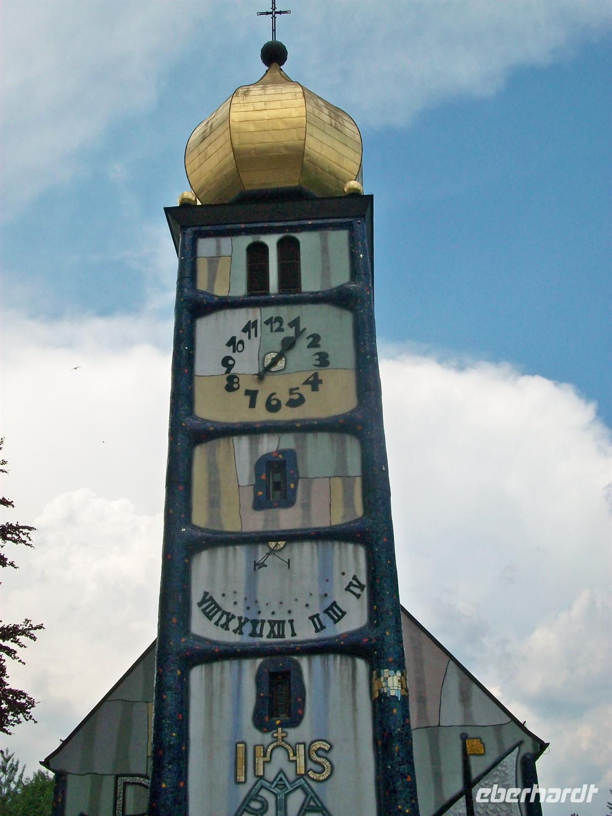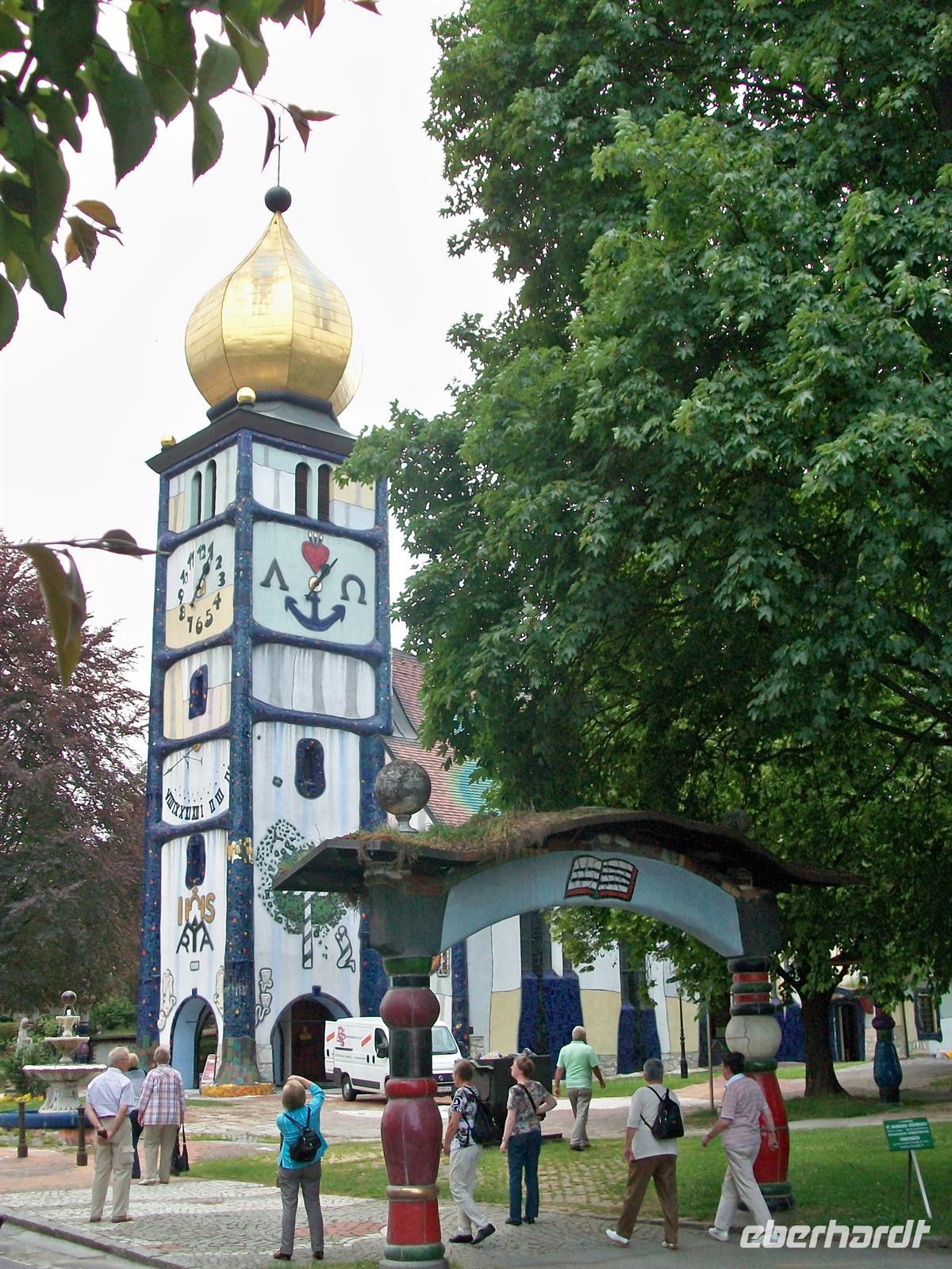 Friedensreich Hundertwasser um Umgestaltung. Da nun dieser Architekt ein erklärter Gegner des rechten Winkels war, ging er auf seine Art und Weise ans Werk und schuf ein wirklich außergewöhnliches Gotteshaus.