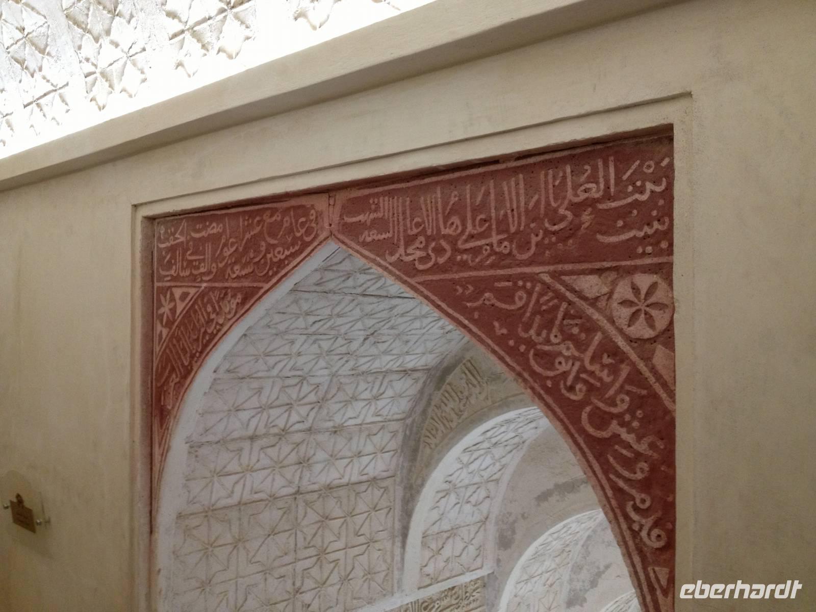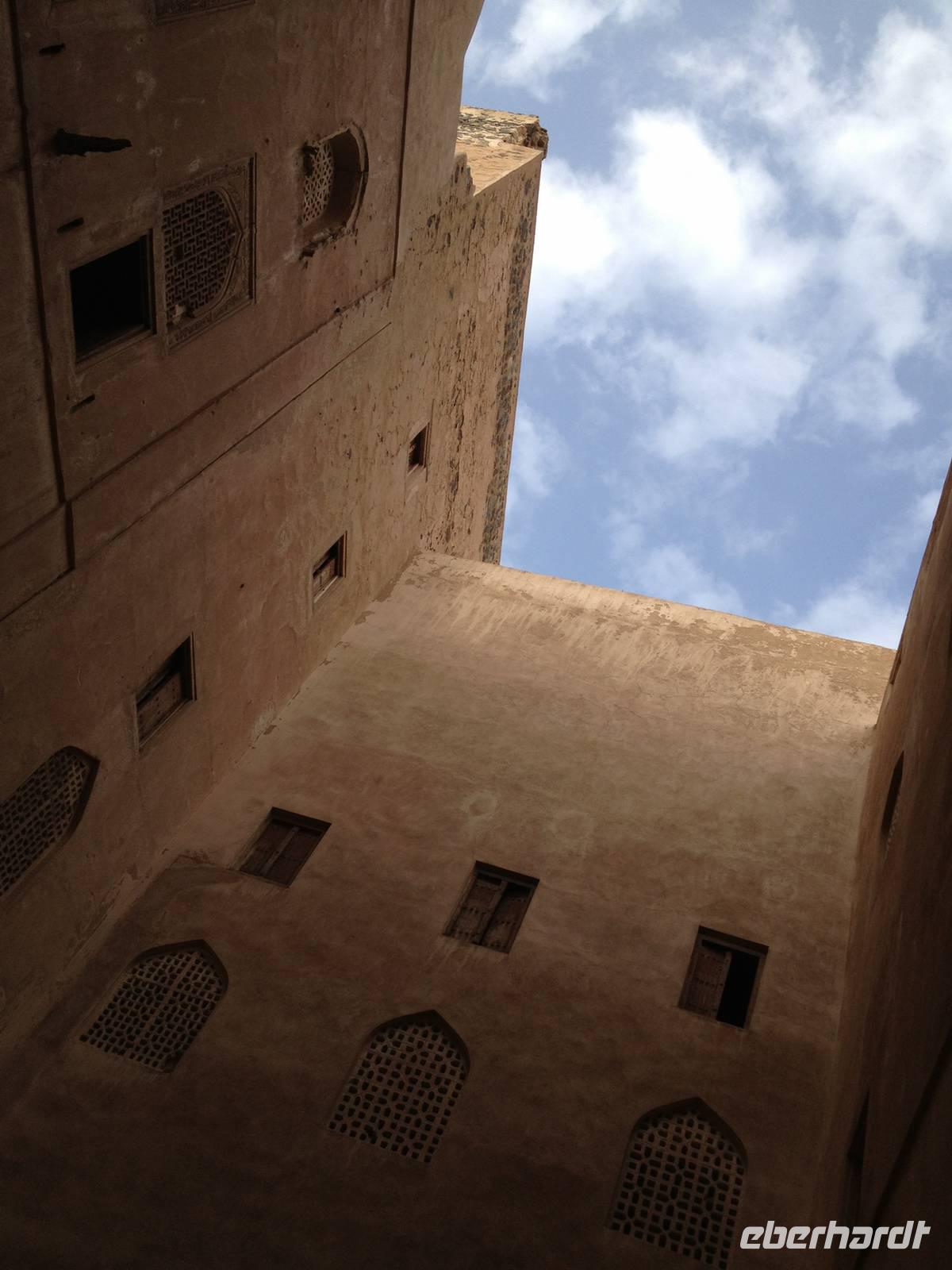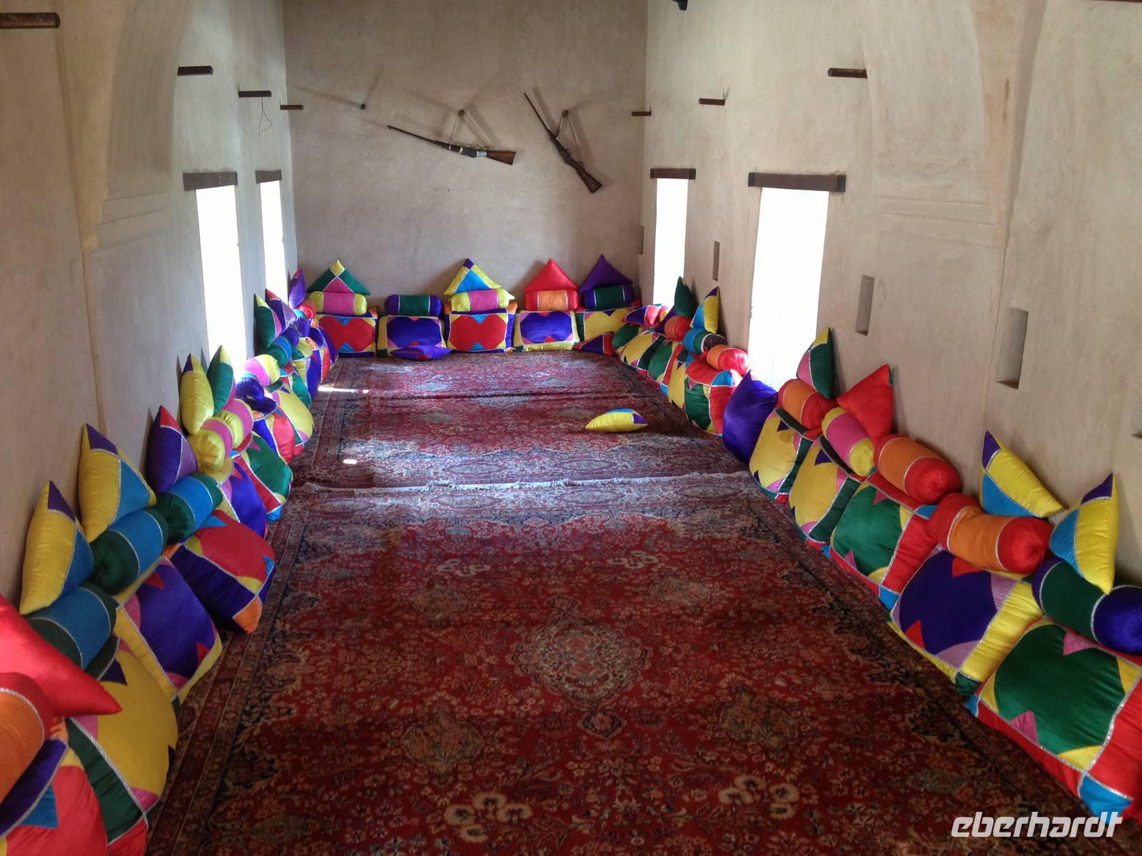 Das Schloss von Jabreen gehört zu den schönsten und interessantesten Gebäuden Omans und war ursprünglich kein Fort sondern ein Wohnschloss. 1984 wurde es durch eine umfassende Renovierung wieder in seinen alten, märchenhaften Zustand versetzt. Die Einrichtung mit traditionellen Gegenständen und antiken Möbeln vermittelte uns einen besonders lebendigen Eindruck des höfischen Lebens im mittelalterlichen Oman.