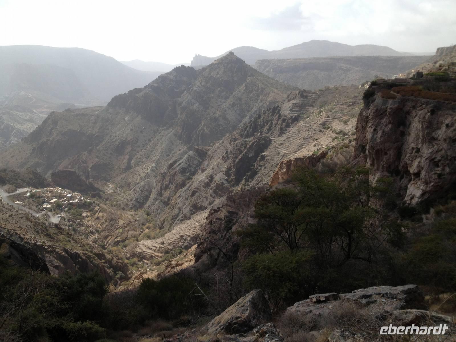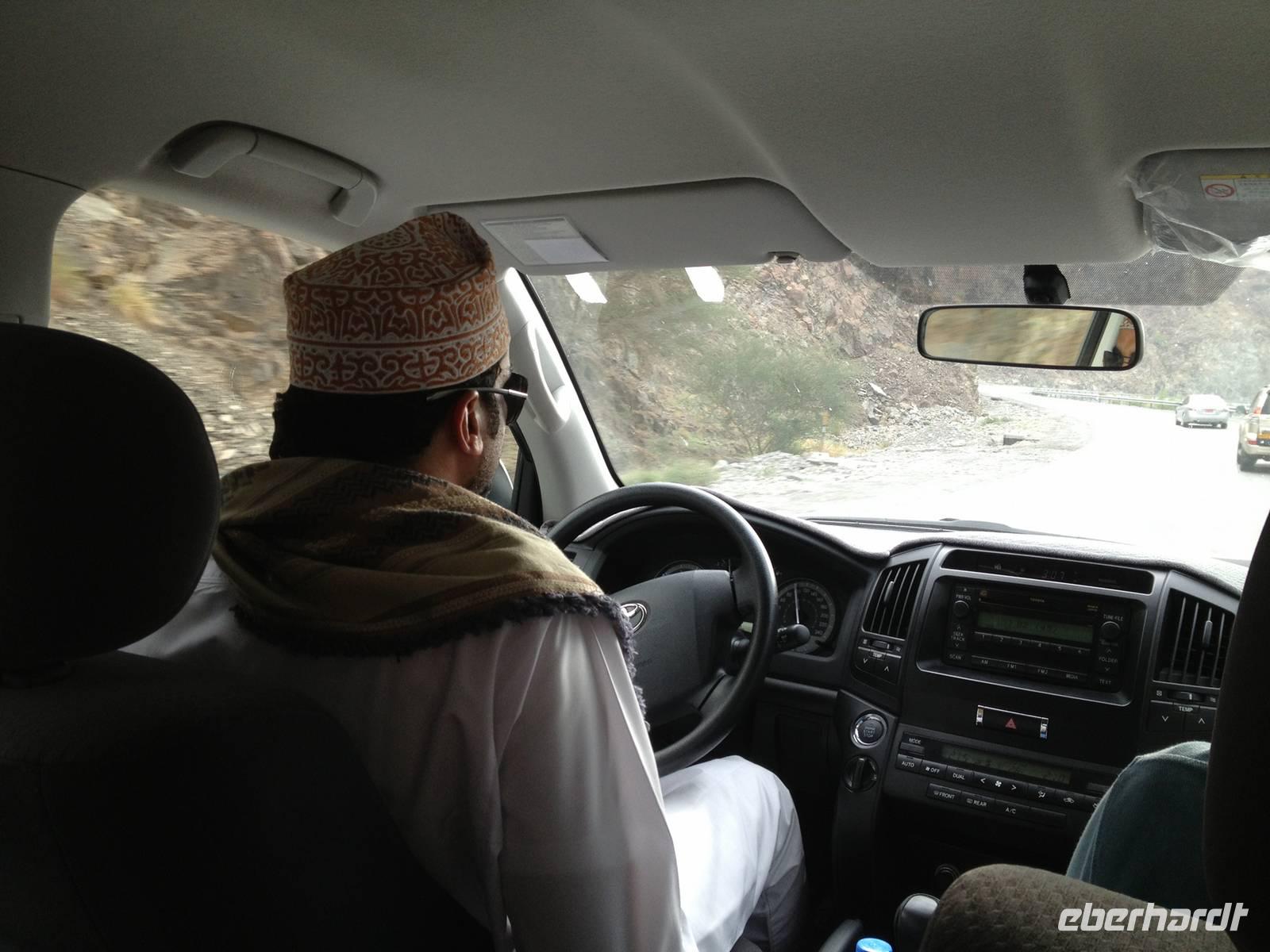 Wir starteten am Morgen zu einem weiteren Ausflug in das atemberaubende Gebirge. Mit einer bestechenden Vielfalt an Naturwundern zieht sich das Hajar-Gebirge über eine Länge von fast 500 Kilometern durch das Sultanat um eine hohe Barriere zwischen dem Golf von Oman und die Wüstenlandschaft im Landesinneren zu schieben. Vor 65 Millionen Jahren aufgefaltet, präsentieren sich die Gesteinsmassen des Jabal Akhdar, wie die Einheimischen den wichtigsten Höhenzug nennen.