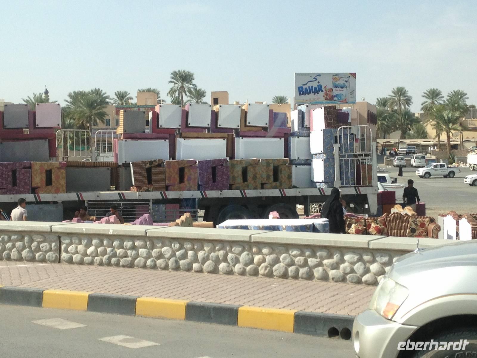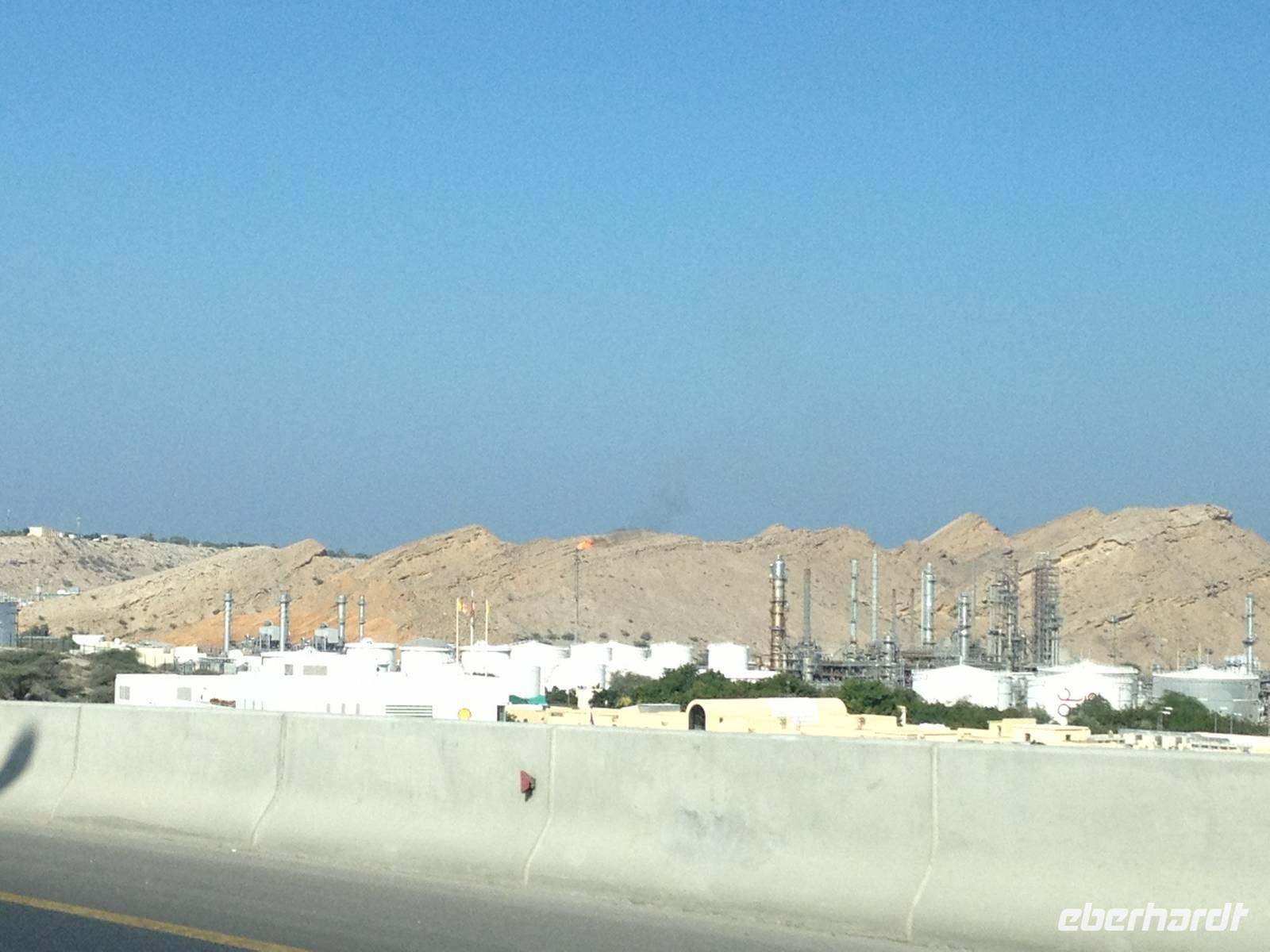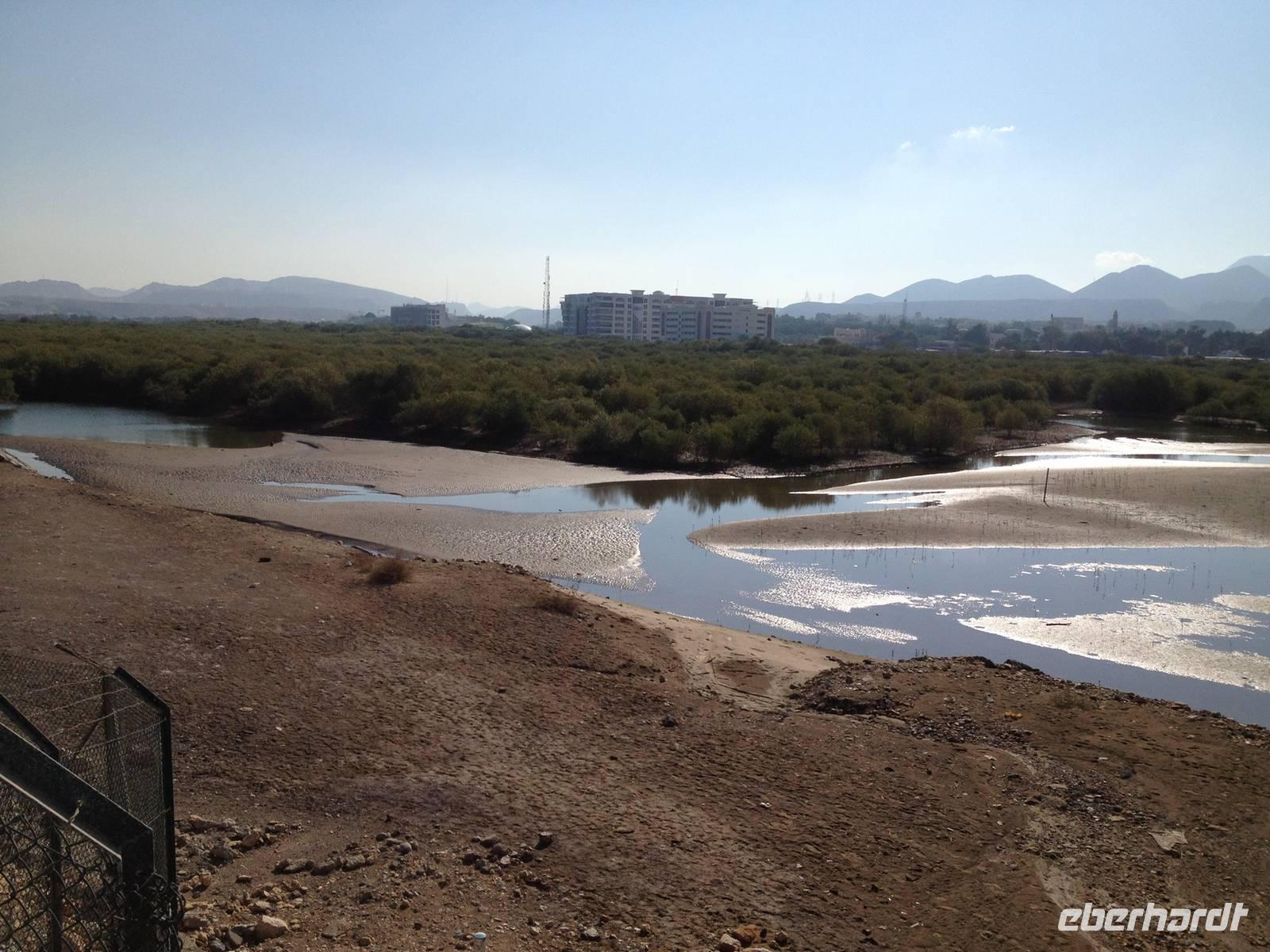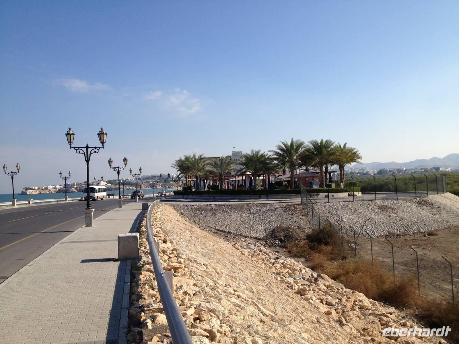 Wir verließen Muscat in Richtung Norden. Die relativ dicht besiedelte Hauptstadtregion, die sich als eine lockere Aneinanderreihung mehr oder minder großer Orte 60 Kilometer weit um die Hauptstadt Muscat ausdehnt, stellt das moderne Herz und das politische wie wirtschaftliche Zentrum des Landes dar. So bekamen wir einen ersten Eindruck der sich rasant ausbreitenden Stadt Muscat.