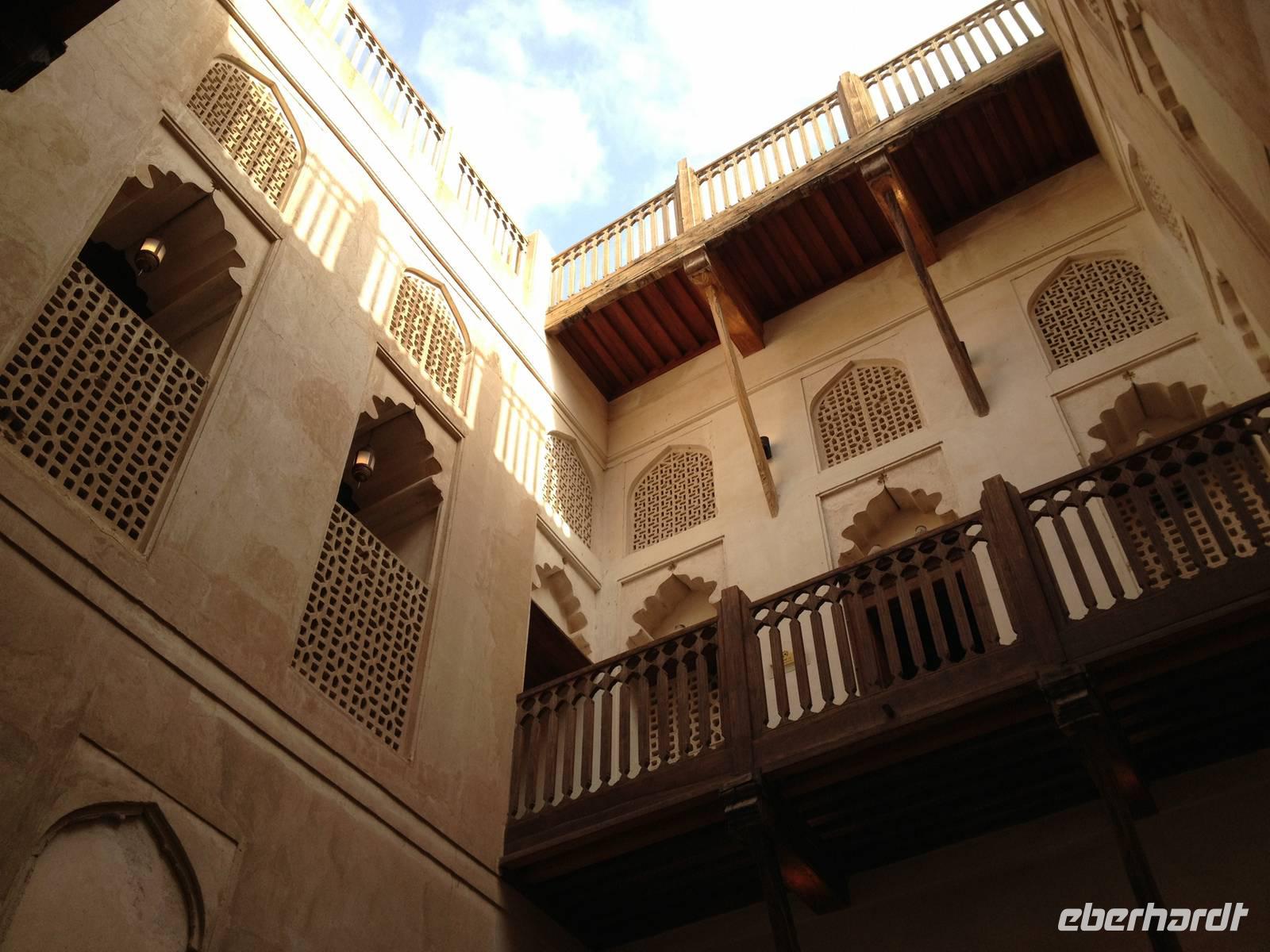 Unweit von der geschwungenen Corniche im Herzen der Stadt und am kleinen Hafen liegt der Eingang zum lebhaften, überdachten Souq. Gleich zog ein angenehmer Weihrauchduft in unsere Nase. Dieser mischte sich später mit Tee- und Gewürznoten. Da Handeln mit den netten Verkäufern machte so richtig Spaß! Und am Ende erfreuten sich einige aus der Gruppe an neuen Tüchern, Blusen und luftigen Kleidern.