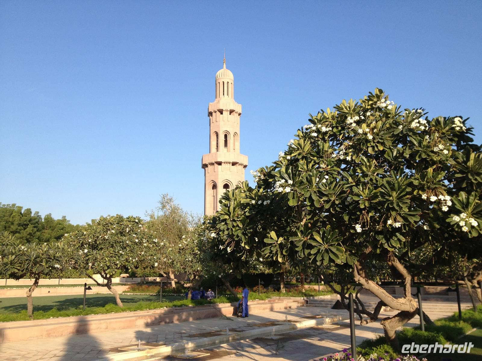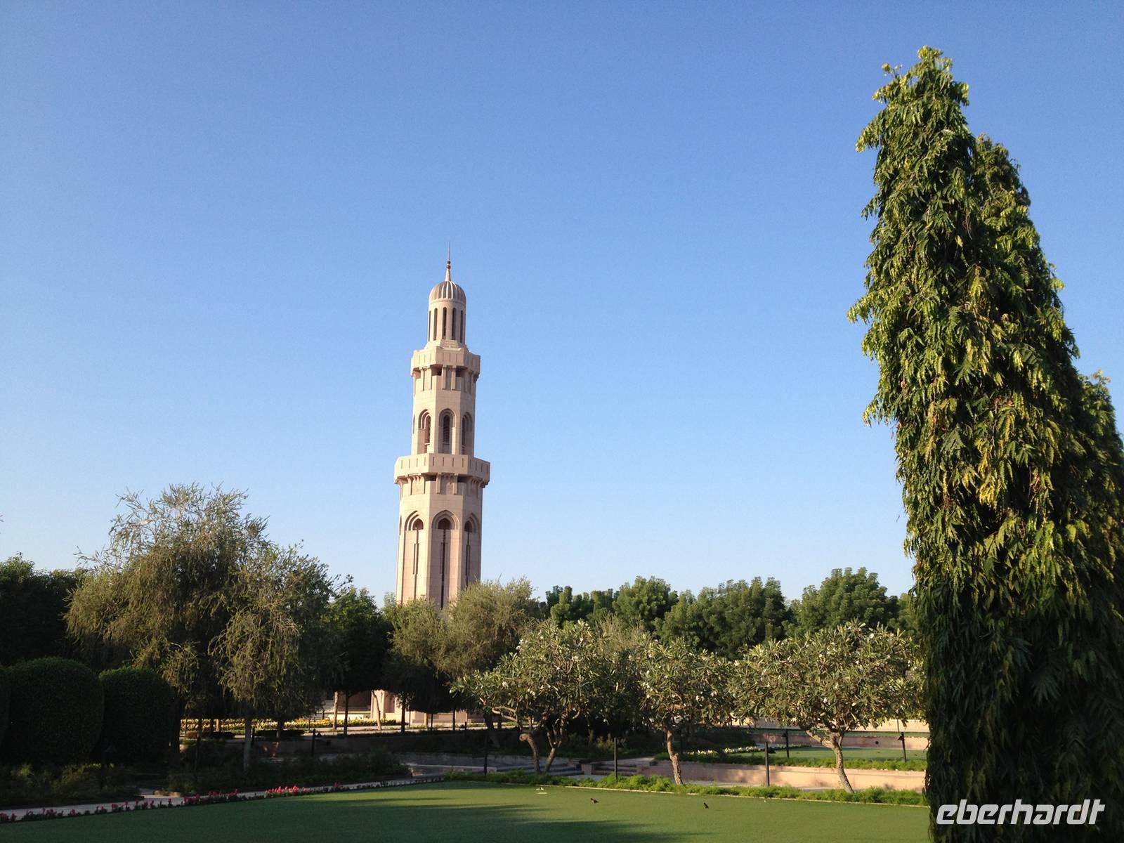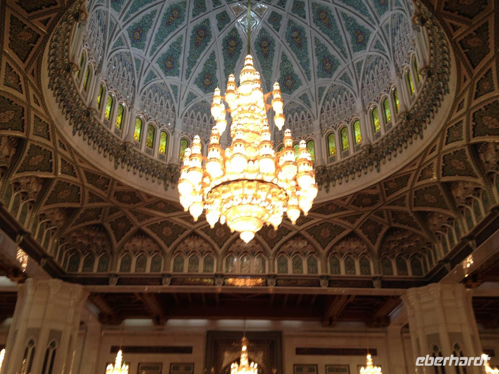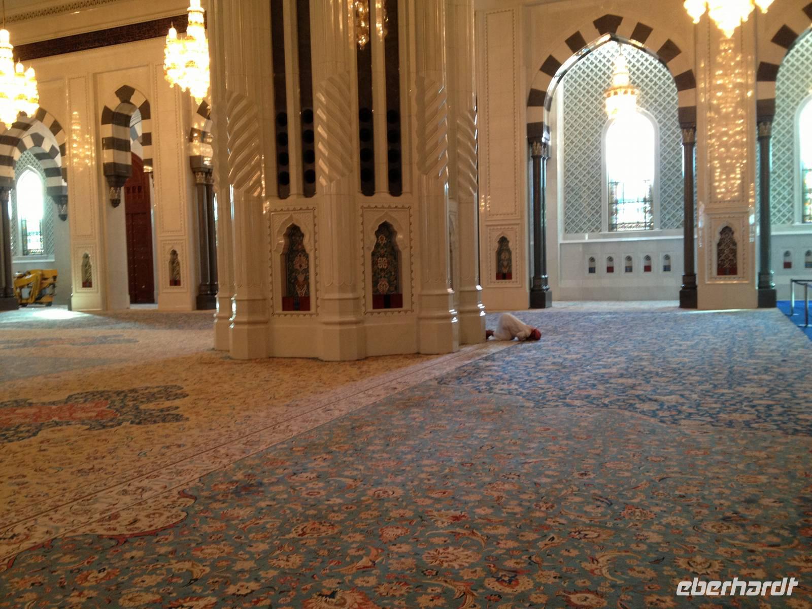 Zeitig klingelte heute der Wecker. Wir hatten viel vor! Der erste Programmpunkt war die sonnendurchflutete Sultan-Qaboos-Moschee. Sie gehört mit ihren reichen Verzierungen und dem wunderschön angelegten Park zu den prächtigsten Bauten des Sultanats. Sie ist eine Moschee der Superlative! Im Jahre 2001 wurde die Grand Mosque fertiggestellt. Der ruhigen, jedoch im Detail reichen Architektur der Moschee gelingt es, höchst unterschiedliche gestalterische islamische Traditionen verschiedenster Epochen und Regionen in großer Harmonie zusammenzuführen.Dieses Prinzip der Gestaltung ist auch Sinnbild für das Ideal der omanischen Gesellschaft, die in sich die verschiedensten islamischen Traditionen und Ausrichtungen unter dem Dach der Ibadhiyah friedlich vereint. Die 61 mal 71 Meter große Gebetshalle bietet 6.600 Gläubigen Platz für das Gebet. Sie ist mit einem 4.263 Quadratmeter großen Teppich ausgelegt, einem Meisterwerk persischer Teppichwebkunst. Das optische Gegenstück zum edlen Teppich stellt die reich mit Kalligraphien und Arabesken verzierte Holzdecke dar. Der ganze Raum wird von einer 34 Meter hohen Kuppel dominiert. In ihrer Mitte hängt ein 8 Tonnen schwerer Lüster aus Swarovski-Kristall, dessen 1.122 Lampen die Kuppel in ein magisches Licht tauchen.