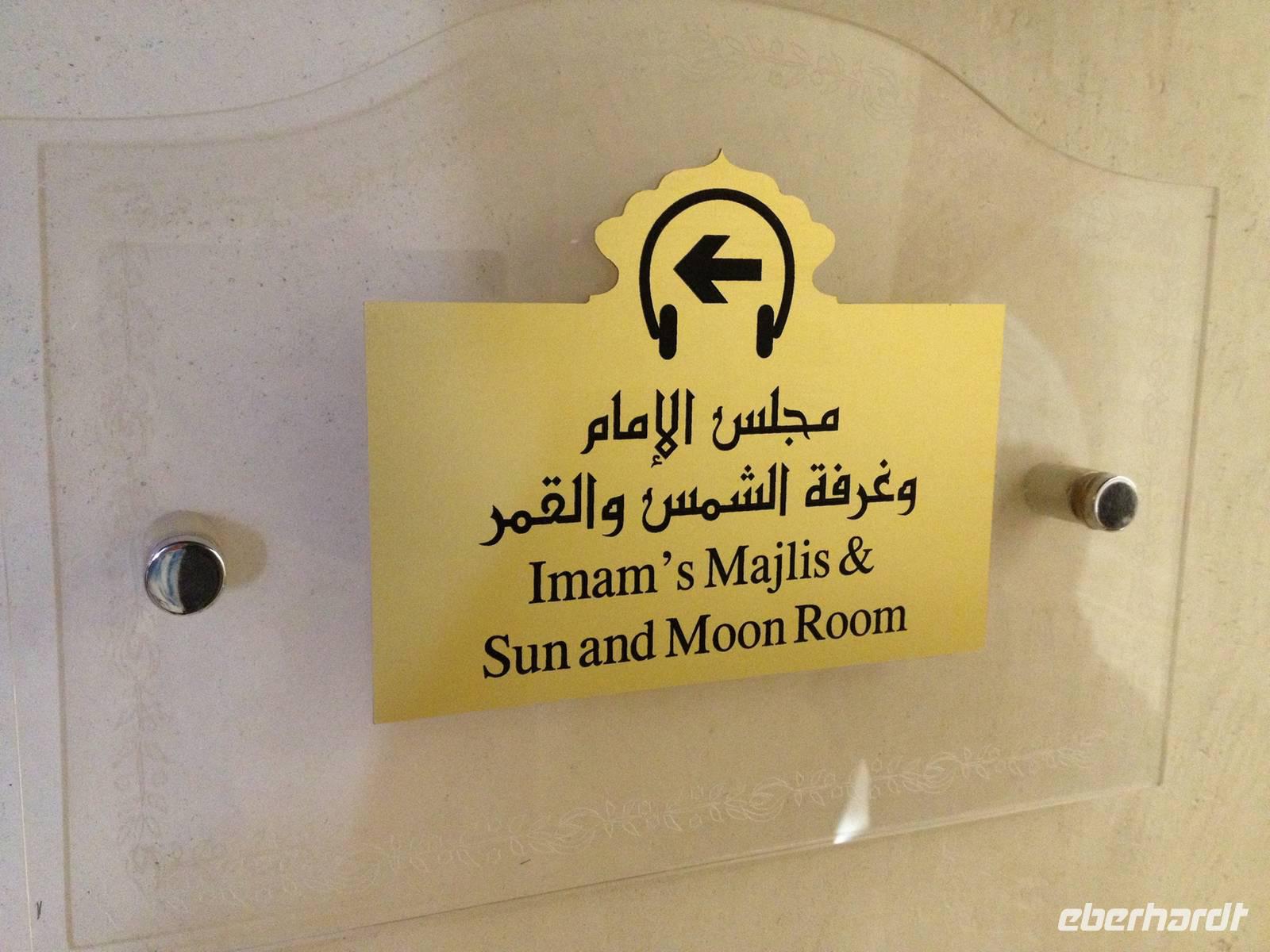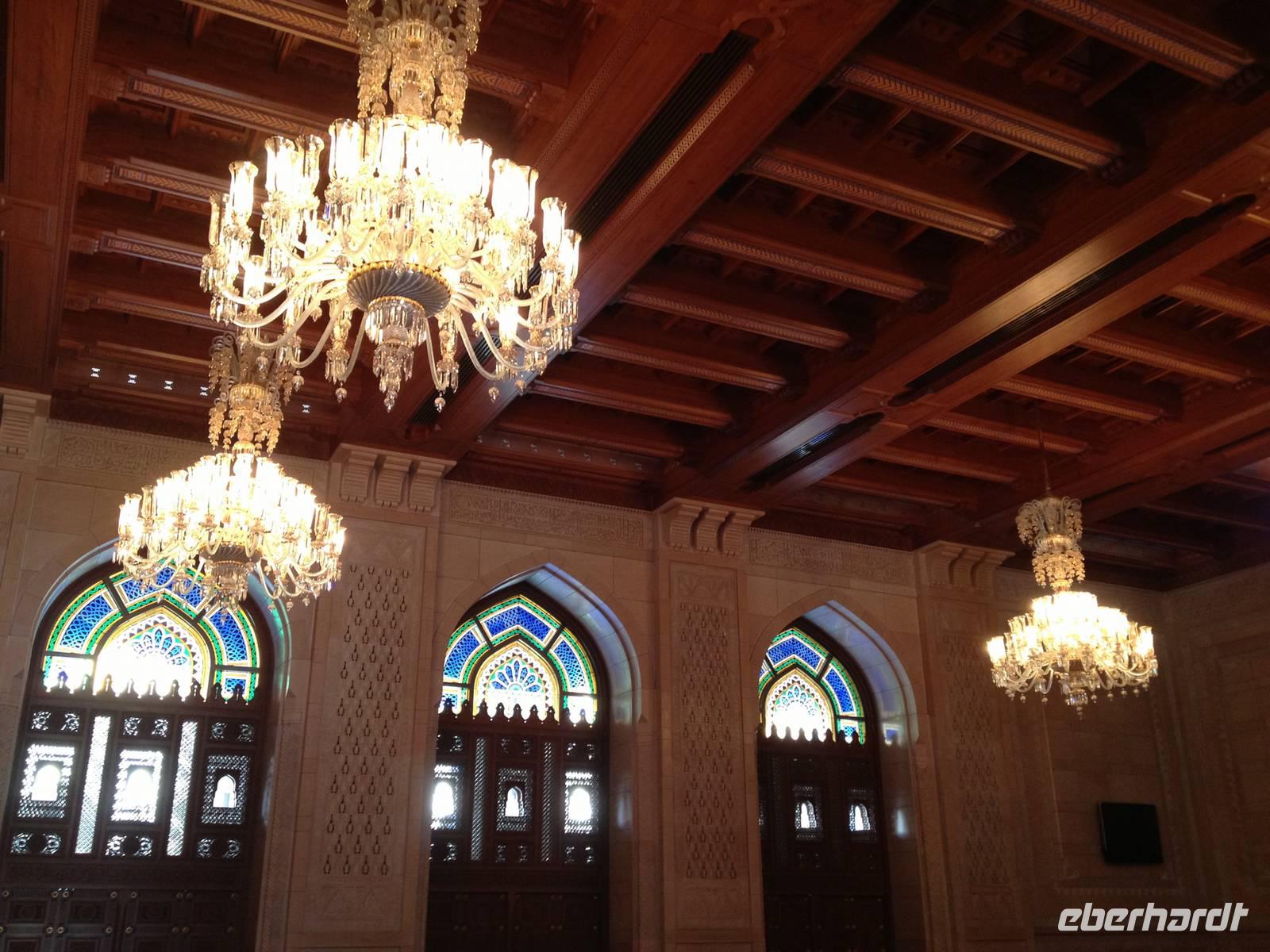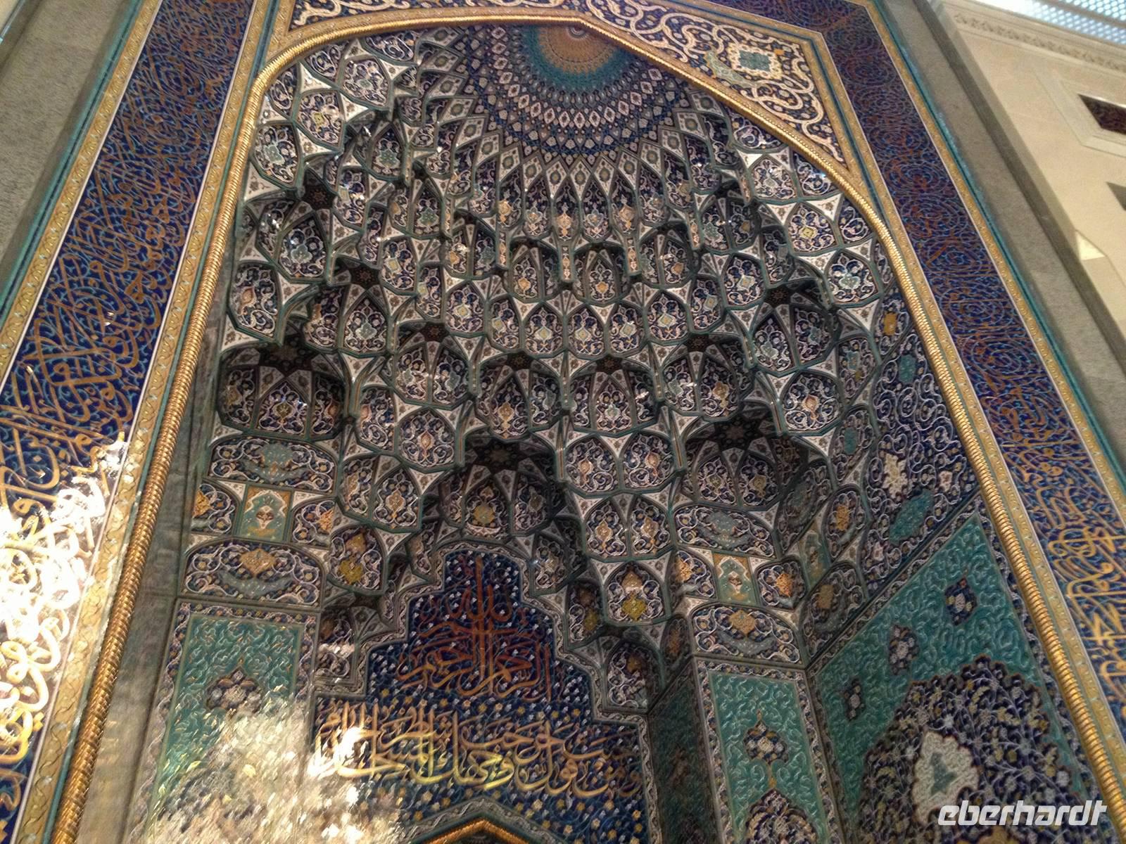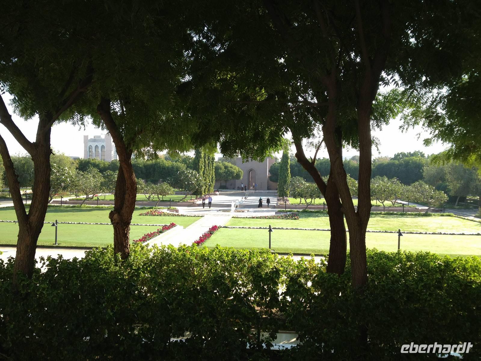 Zeitig klingelte heute der Wecker. Wir hatten viel vor! Der erste Programmpunkt war die sonnendurchflutete Sultan-Qaboos-Moschee. Sie gehört mit ihren reichen Verzierungen und dem wunderschön angelegten Park zu den prächtigsten Bauten des Sultanats. Sie ist eine Moschee der Superlative! Im Jahre 2001 wurde die Grand Mosque fertiggestellt. Der ruhigen, jedoch im Detail reichen Architektur der Moschee gelingt es, höchst unterschiedliche gestalterische islamische Traditionen verschiedenster Epochen und Regionen in großer Harmonie zusammenzuführen.Dieses Prinzip der Gestaltung ist auch Sinnbild für das Ideal der omanischen Gesellschaft, die in sich die verschiedensten islamischen Traditionen und Ausrichtungen unter dem Dach der Ibadhiyah friedlich vereint. Die 61 mal 71 Meter große Gebetshalle bietet 6.600 Gläubigen Platz für das Gebet. Sie ist mit einem 4.263 Quadratmeter großen Teppich ausgelegt, einem Meisterwerk persischer Teppichwebkunst. Das optische Gegenstück zum edlen Teppich stellt die reich mit Kalligraphien und Arabesken verzierte Holzdecke dar. Der ganze Raum wird von einer 34 Meter hohen Kuppel dominiert. In ihrer Mitte hängt ein 8 Tonnen schwerer Lüster aus Swarovski-Kristall, dessen 1.122 Lampen die Kuppel in ein magisches Licht tauchen.