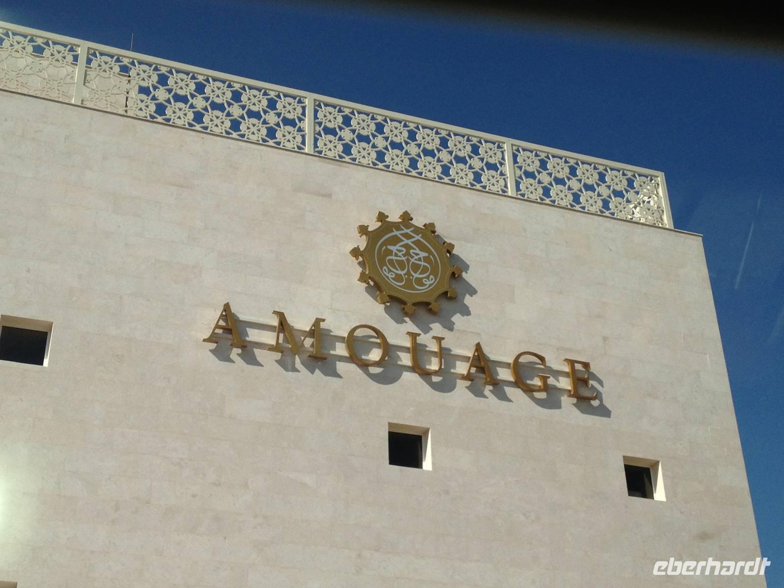 Nach einer angenehmen Nacht im Luxushotel starteten wir unseren letzten Ausflug ins Umland der Hauptstadt Muscat. Unser erstes Ziel war die Amouage-Fabrik. Leider war diese heute außerplanmäßig geschlossen. Doch Bharat hatte sofort einen Plan B parat. In der nahegelegenen Shopping-Mall gab es eine Amouage-Boutique, in der wir viel Interessantes über die Marke Amouage, die Geschichte und die Philosophie des Unternehmens erfuhren. Anfang der Achtziger entschied der Sultan, dass die Parfumherstellung, die im Orient seit dem 9. Jhd. Tradition hat, wieder eine dortige Heimat haben und sein Sultanat eine duftende Visitenkarte bekommen sollte. Er gründete in der Hauptstadt Muskat Amouage (arabisch: Welle) und staffierte das Unternehmen großzügig mit Mitteln aus dem Staatsschatz aus. Der französische Parfumeur Guy Robert wurde unter Vertrag genommen und keine Mühen oder Kosten wurden gescheut, damit dieser den ultimativen Oman-Duft mit allen landestypischen Essenzen kreieren konnte (Mhyrre, Rosenwasser, Hölzer, aber vor allem der erstklassige Weihrauch des Oman). Das Resultat war Amouage Gold.