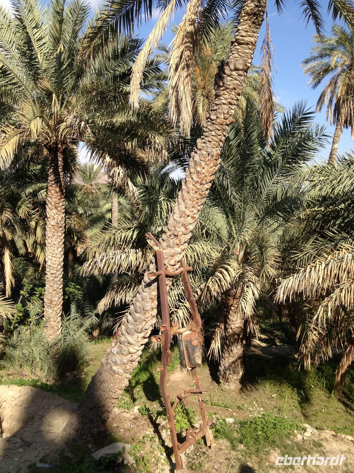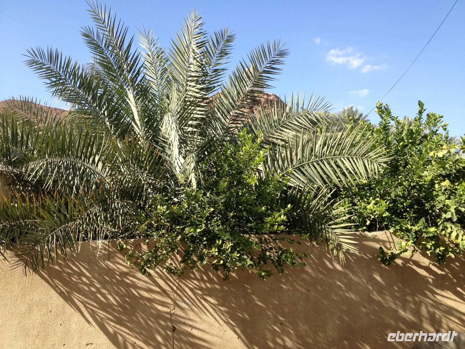 In Birkat al Mauz, dem Ort auf den Reiseführerfotos schlechthin, besuchten wir einen Omani auf seiner Farm und saßen in gemütlicher Runde in seinem Palmengarten. Bei Omani-Kaffee und Datteln erhielten wir interessante Informationen über das Leben und die Arbeit in solch einer Farm.