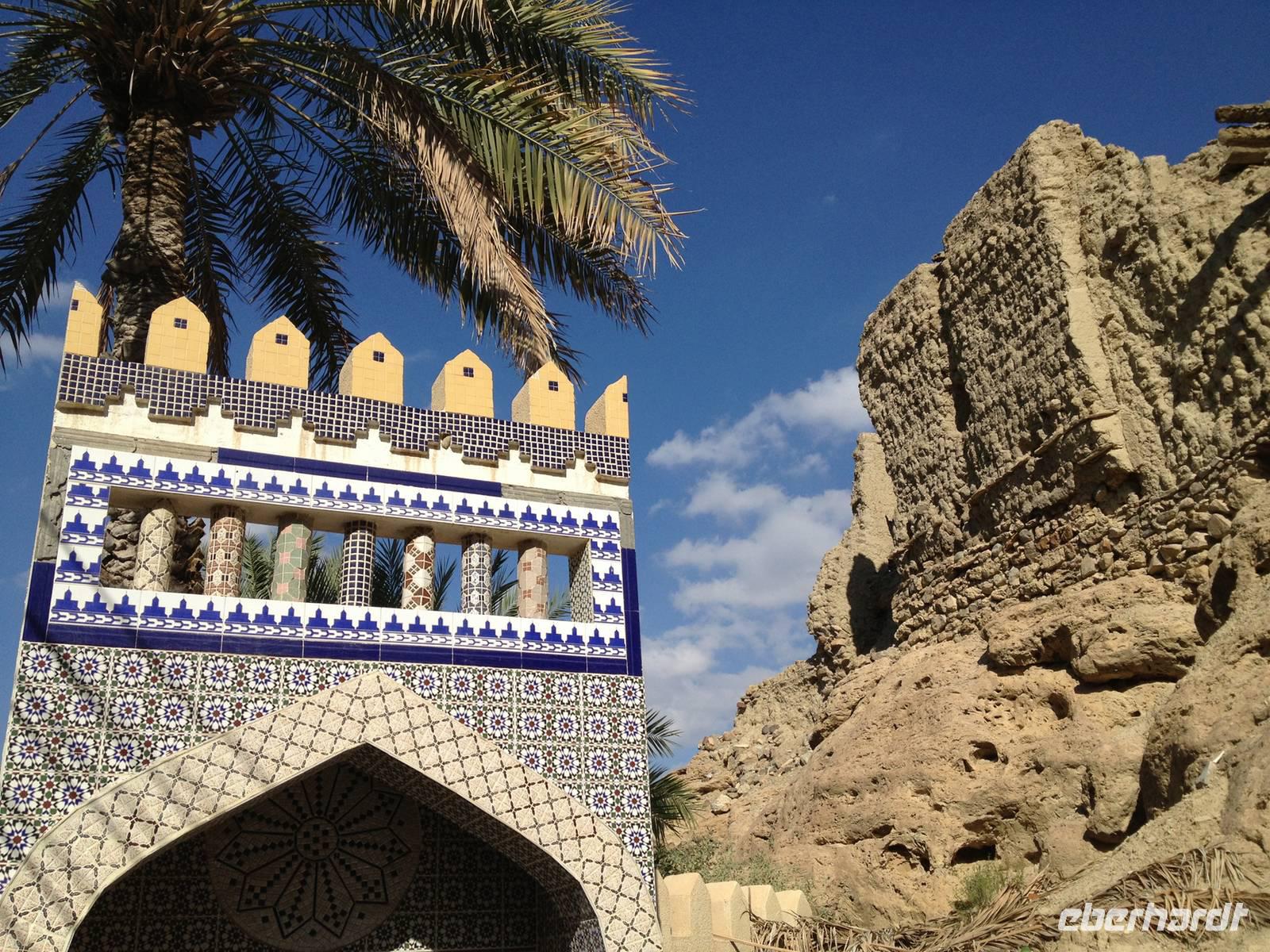Einen kurzen Stopp legten wir anschließend in Bahla ein. Sehenswert war hier unbedingt das Fort, welches zum UNESCO-Weltkulturerbe gehört. Der Ort selbst ist von einer 13 Kilometer langen Stadtmauer umgeben und die über 10 Meter hohen Burgfesten ragen inmitten der üppigen Oase auf. Von einem Aussichtspunkt hatten wir den besten Blick auf das Fort, die Oase und die zum Teil noch bewohnten Lehmhäuser der kleinen Stadt.