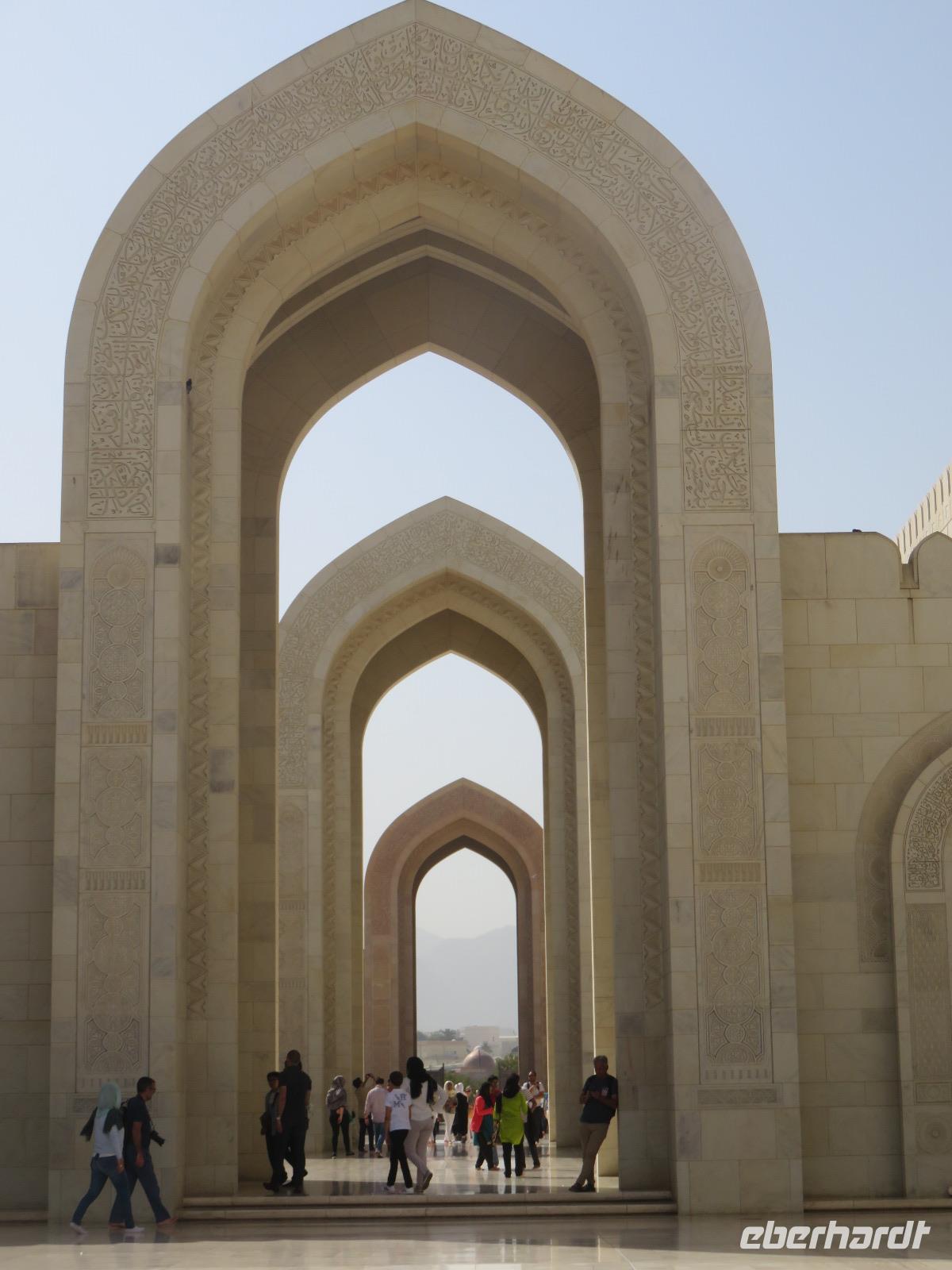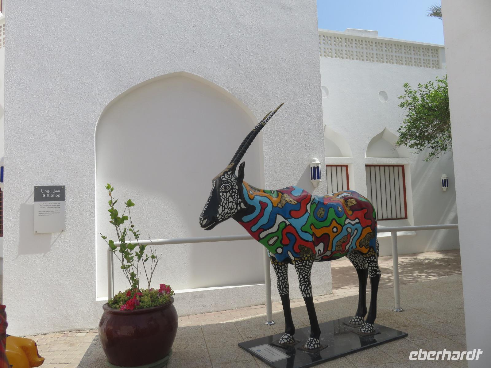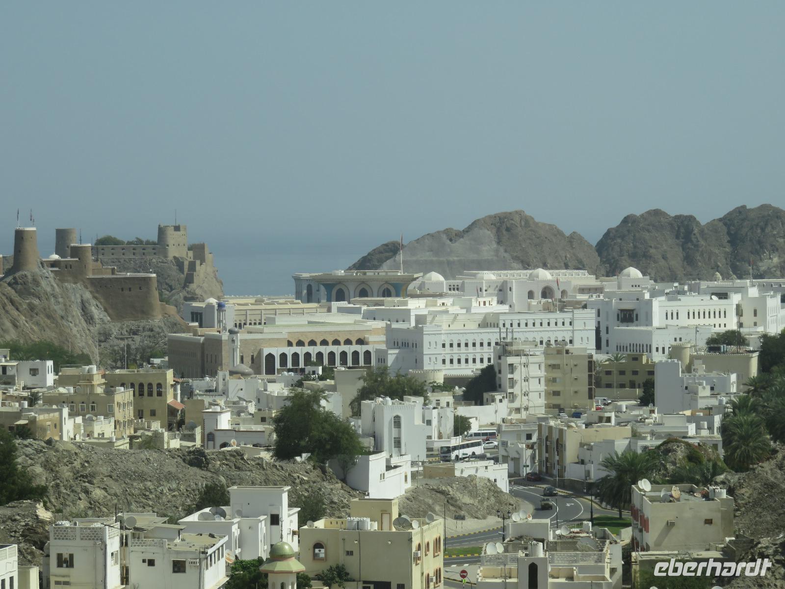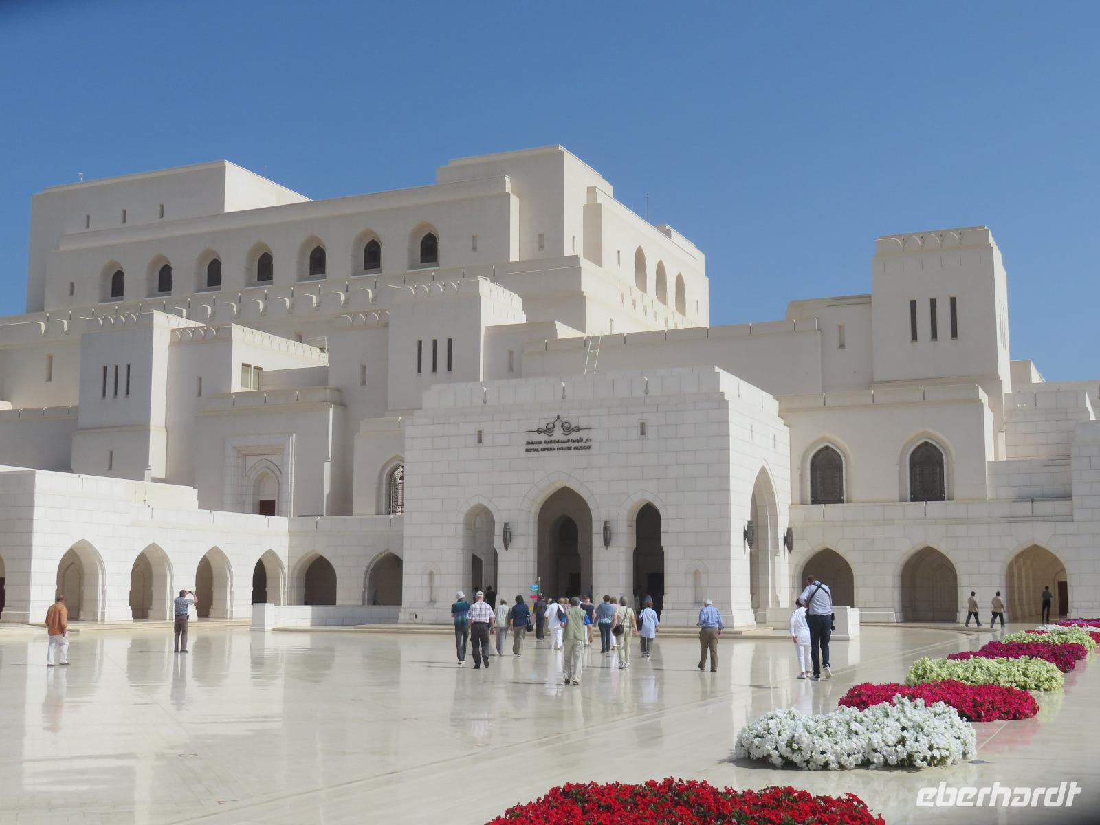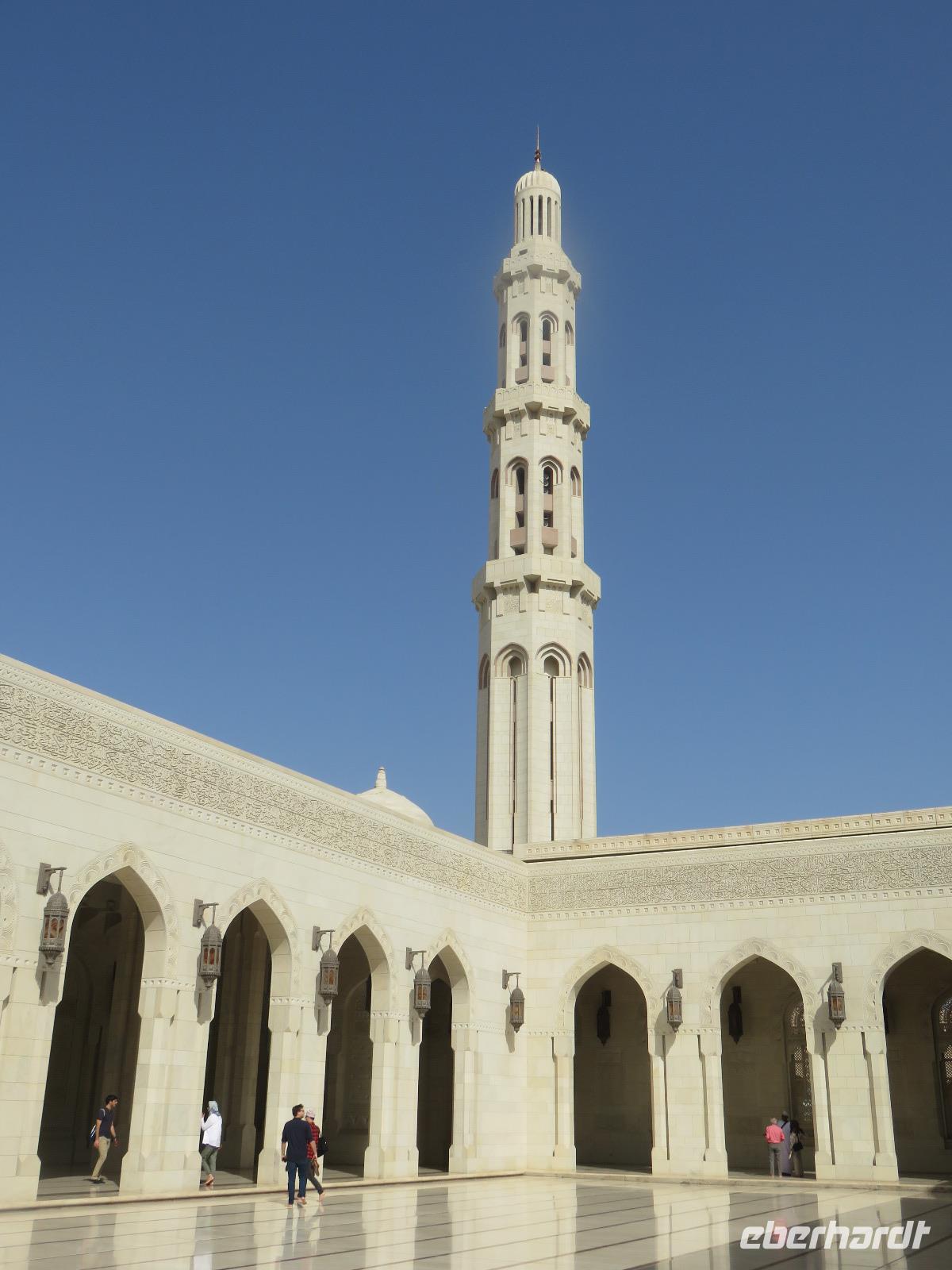 Nach dem Frühstück steht der Besuch der Großen Sultan Qaboos Moschee. Die fünftgrößte Moschee der Welt bietet Platz für bis zu 20.000 Menschen zum Gebet. Der Sultan von Oman ließ dieses imposante Bauerk in nur 6 Jahren Bauzeit von 1995 bis 2001 aus indischem Sandstein und vielen anderen wertvollen Baustoffen, wie Marmor aus Italien und edlen Hölzern errichten. Den riesigen Teppich knüpften im Iran 600 Frauen in vier Jahren von Hand. Die imposanten Kronleuchter, der größte wiegt 8 Tonnen, gestaltete und fertigte die Firma Swarovski in Österreich. Tawfiq gibt uns wieder sehr viele Informationen zur Moschee und zum Islam und dessen 5 Säulen. Diese werden die durch die 5 Minarette symbolisiert. Die Große Sultan Qaboos Moschee ist in der Ausschmückung wirklich orientalisch und wir sind sehr beeindruckt. Anschließend geht es zurück nach Muscat. Am modernen Royalen Opernhaus, welches 2011 eingeweiht wurde, legen wir einen Fotostopp ein. In dem wunderschönen Bau im orientalischen Stil eines alten Forts hat heute die Musik ihr Zuhause. Nun geht es in die Altstadt von Muscat zum berühmten Muttrah Souk. Wir spazieren durch den Markt mit seinem bunten Treiben und zahlreichen Angeboten. Von der Corniche aus sehen wir die beiden großen Yachten des Sultans. Anschließend bringt uns der Bus in das alte Muscat. Oberhalb der alten Straße eröffnet sich uns ein schöner Blick auf den Sultanspalast und die beiden alten Forts, die aus der Zeit der portugiesischen Besetzung stammen. Wir besuchen das Bait Al Zubair Museum. In dieser privaten Sammlung wird das Leben der Omanis an Hand vieler interessanter Exponate, wie Schmuck, traditionelle Kleidung, Alltagsgegenstände sehr anschaulich dargestellt. Wir bekommen dadurch einen guten Einblick in die Traditionen, die Tawfiq mit seinen Informationen noch untersetzt. Unsere Tour führt uns nun zum Sultanspalast Qasr al-Alam. Den heutigen prunkvollen Palast ließ der Sultan Qaboos von Oman in den frühen 1970er Jahren auf der Stelle erweitern, wo die Al-Bu-Said-Regenten seit dem 19. Jahrhundert ihre Residenzen hatten. Der Palast dient heute für offizielle Anlässe und dem Empfang von Staatsgästen. Anschließend kehren wir zum Hotel zurück. Nun bleibt noch Zeit für einen Spaziergang am Meer, bevor uns Tawfiq zum Abendessen in einem typischen arabischen Restaurant abholt. In einem netten Garten des Restaurants Kargeen werden wir mit arabischen Köstlichkeiten verwöhnt. Es gibt gegrilltes Lamm und Hühnchen, Hummus, arabischen Salat und natürlich Fladenbrot. Statt Wein oder Bier wird uns eine super leckere Lemon-Minze-Limonade. Der Abend ist ein schöner Abschluss unseres Aufenthaltes im Norden des Omans.