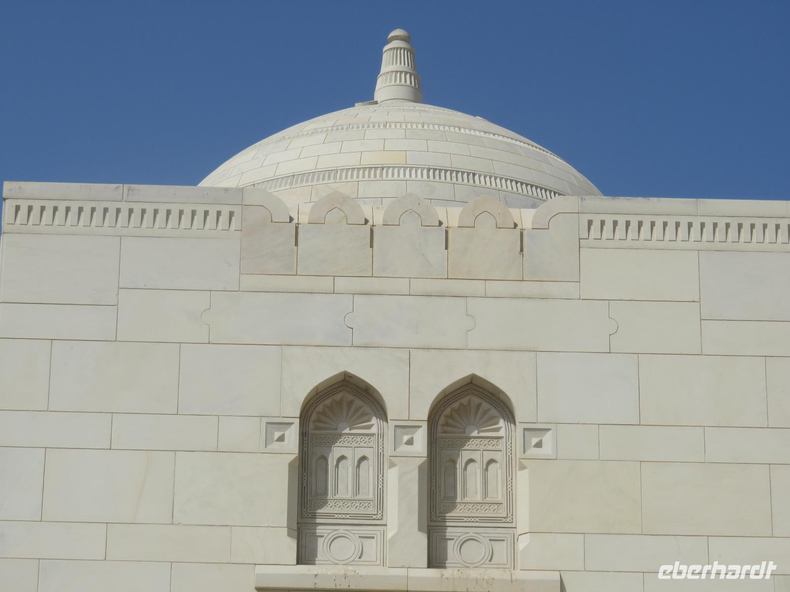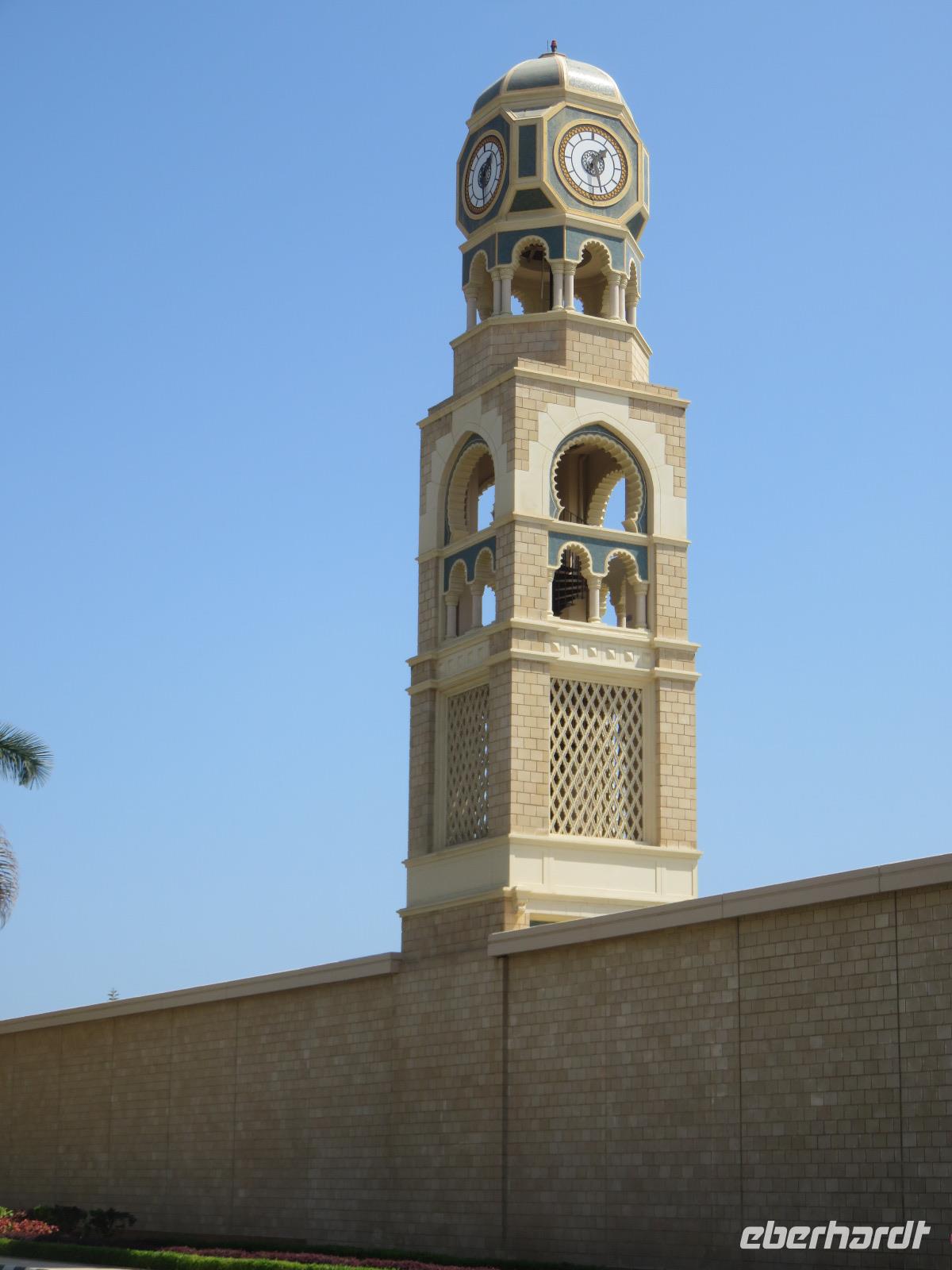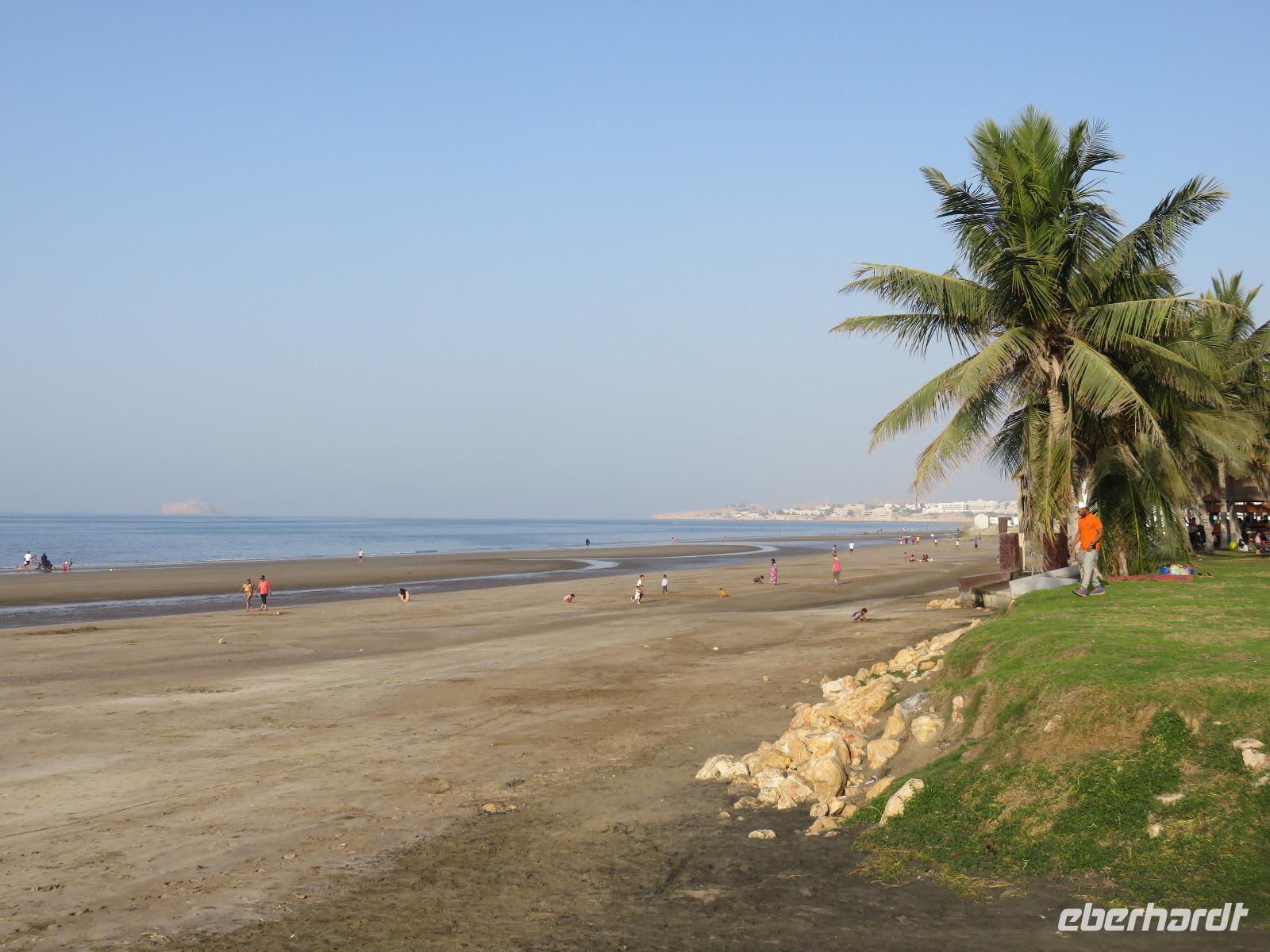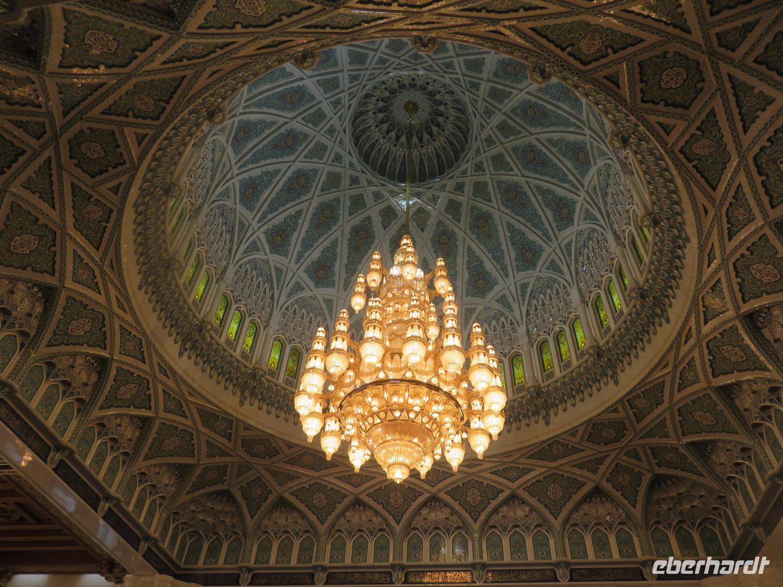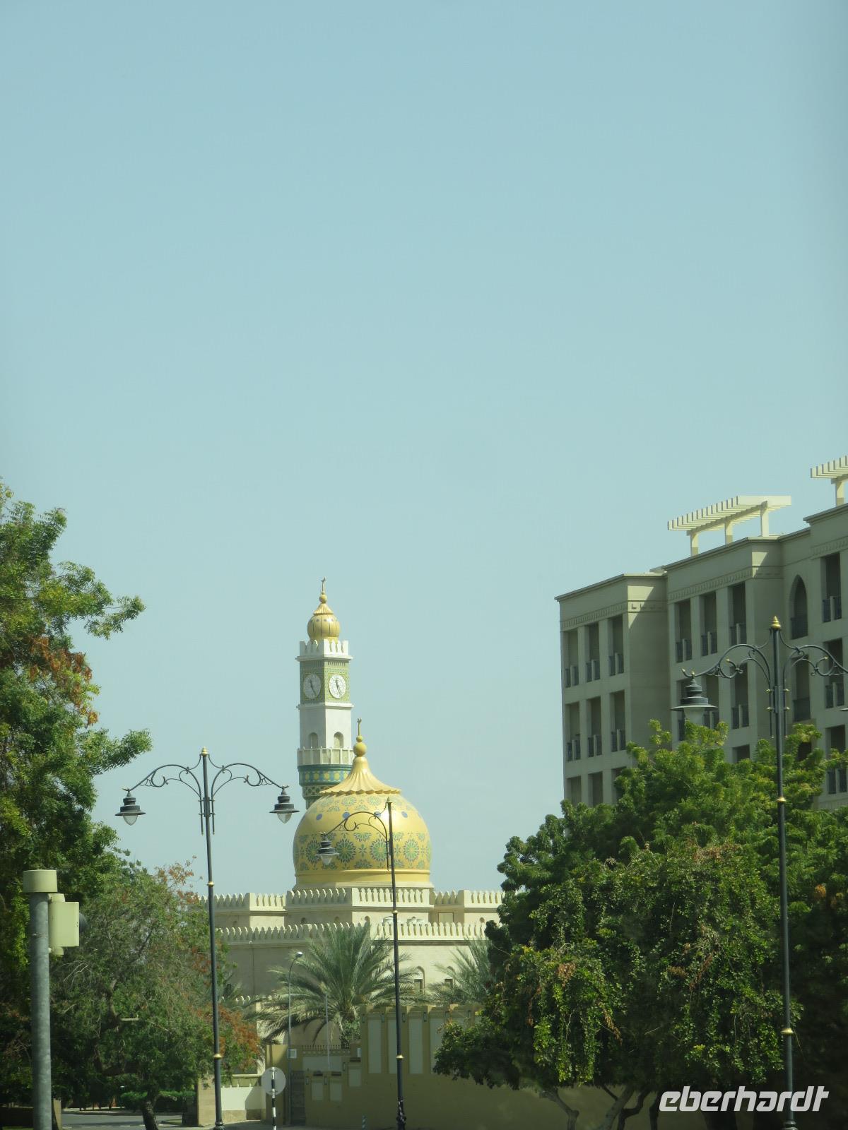 Nach dem Frühstück steht der Besuch der Großen Sultan Qaboos Moschee. Die fünftgrößte Moschee der Welt bietet Platz für bis zu 20.000 Menschen zum Gebet. Der Sultan von Oman ließ dieses imposante Bauerk in nur 6 Jahren Bauzeit von 1995 bis 2001 aus indischem Sandstein und vielen anderen wertvollen Baustoffen, wie Marmor aus Italien und edlen Hölzern errichten. Den riesigen Teppich knüpften im Iran 600 Frauen in vier Jahren von Hand. Die imposanten Kronleuchter, der größte wiegt 8 Tonnen, gestaltete und fertigte die Firma Swarovski in Österreich. Tawfiq gibt uns wieder sehr viele Informationen zur Moschee und zum Islam und dessen 5 Säulen. Diese werden die durch die 5 Minarette symbolisiert. Die Große Sultan Qaboos Moschee ist in der Ausschmückung wirklich orientalisch und wir sind sehr beeindruckt. Anschließend geht es zurück nach Muscat. Am modernen Royalen Opernhaus, welches 2011 eingeweiht wurde, legen wir einen Fotostopp ein. In dem wunderschönen Bau im orientalischen Stil eines alten Forts hat heute die Musik ihr Zuhause. Nun geht es in die Altstadt von Muscat zum berühmten Muttrah Souk. Wir spazieren durch den Markt mit seinem bunten Treiben und zahlreichen Angeboten. Von der Corniche aus sehen wir die beiden großen Yachten des Sultans. Anschließend bringt uns der Bus in das alte Muscat. Oberhalb der alten Straße eröffnet sich uns ein schöner Blick auf den Sultanspalast und die beiden alten Forts, die aus der Zeit der portugiesischen Besetzung stammen. Wir besuchen das Bait Al Zubair Museum. In dieser privaten Sammlung wird das Leben der Omanis an Hand vieler interessanter Exponate, wie Schmuck, traditionelle Kleidung, Alltagsgegenstände sehr anschaulich dargestellt. Wir bekommen dadurch einen guten Einblick in die Traditionen, die Tawfiq mit seinen Informationen noch untersetzt. Unsere Tour führt uns nun zum Sultanspalast Qasr al-Alam. Den heutigen prunkvollen Palast ließ der Sultan Qaboos von Oman in den frühen 1970er Jahren auf der Stelle erweitern, wo die Al-Bu-Said-Regenten seit dem 19. Jahrhundert ihre Residenzen hatten. Der Palast dient heute für offizielle Anlässe und dem Empfang von Staatsgästen. Anschließend kehren wir zum Hotel zurück. Nun bleibt noch Zeit für einen Spaziergang am Meer, bevor uns Tawfiq zum Abendessen in einem typischen arabischen Restaurant abholt. In einem netten Garten des Restaurants Kargeen werden wir mit arabischen Köstlichkeiten verwöhnt. Es gibt gegrilltes Lamm und Hühnchen, Hummus, arabischen Salat und natürlich Fladenbrot. Statt Wein oder Bier wird uns eine super leckere Lemon-Minze-Limonade. Der Abend ist ein schöner Abschluss unseres Aufenthaltes im Norden des Omans.