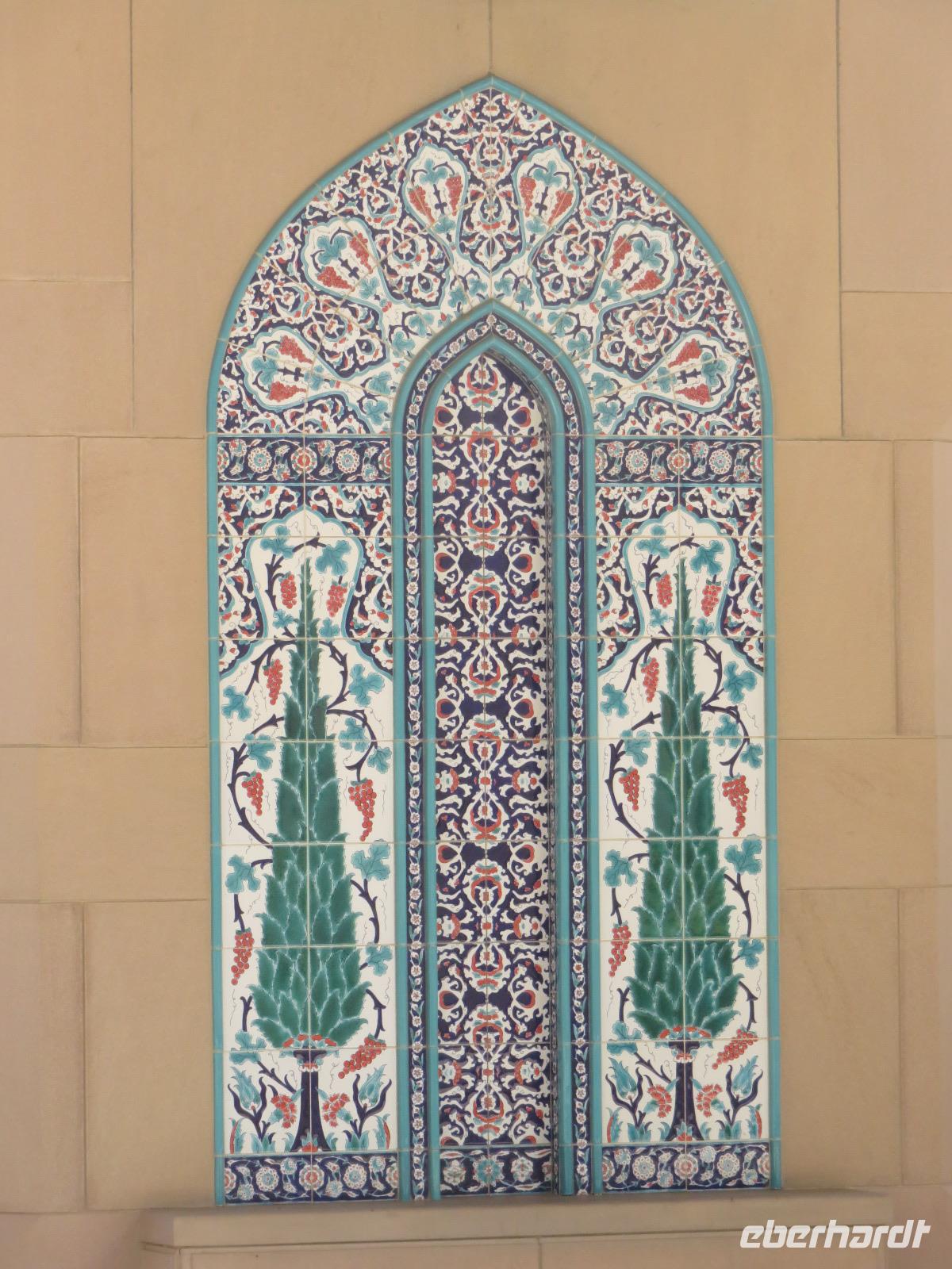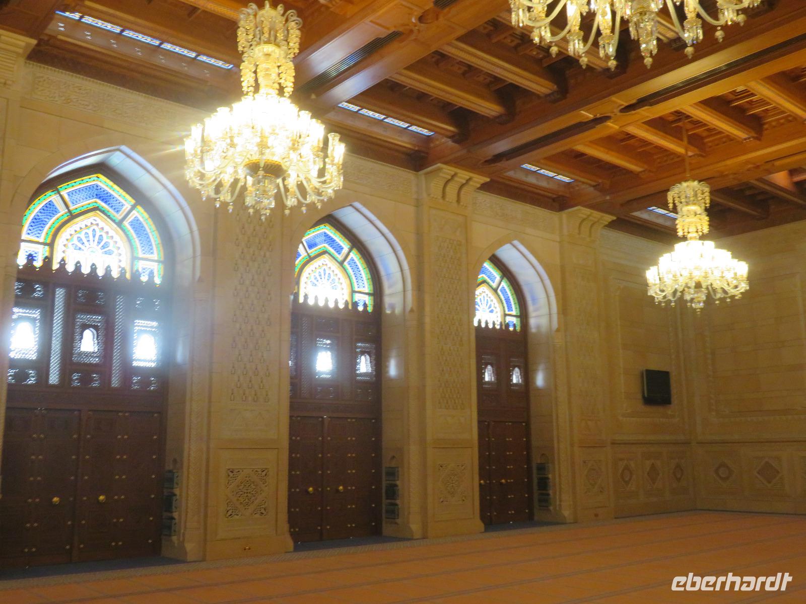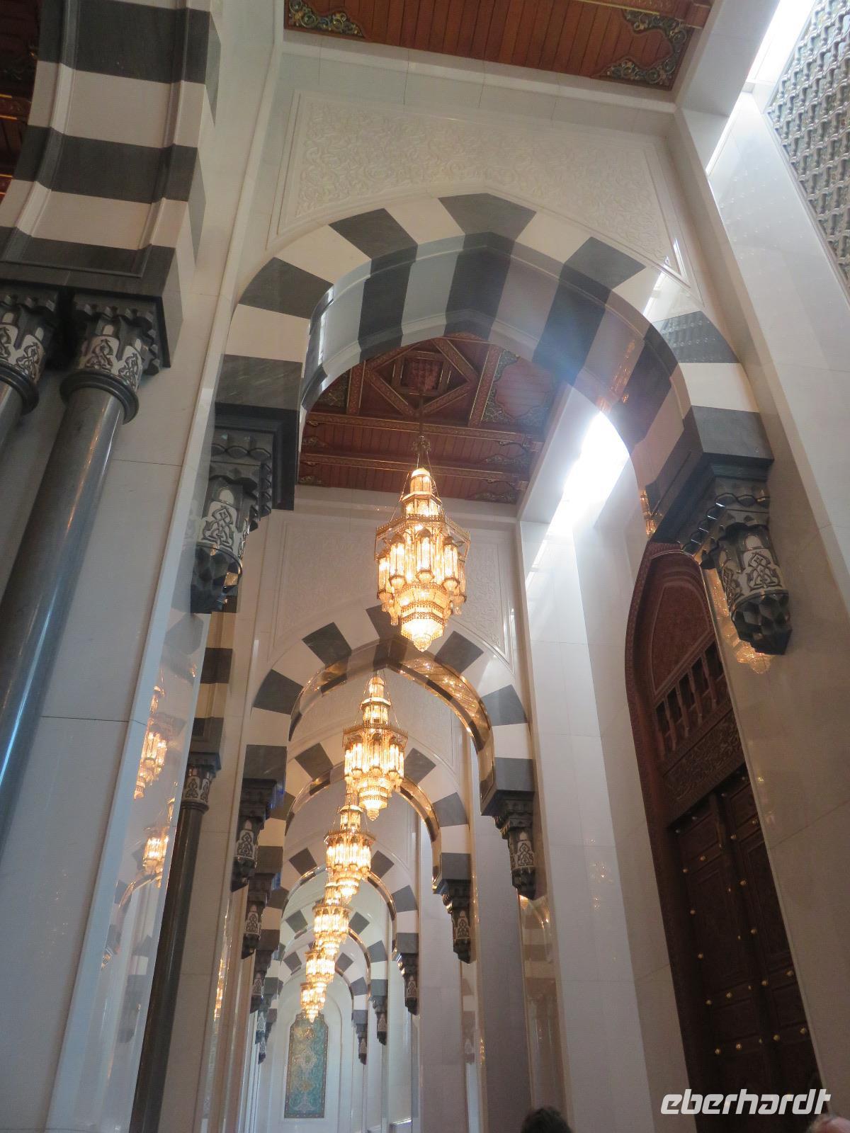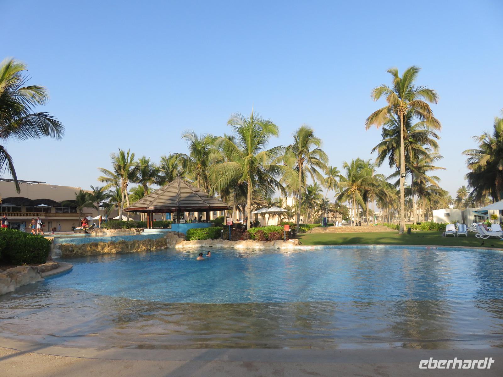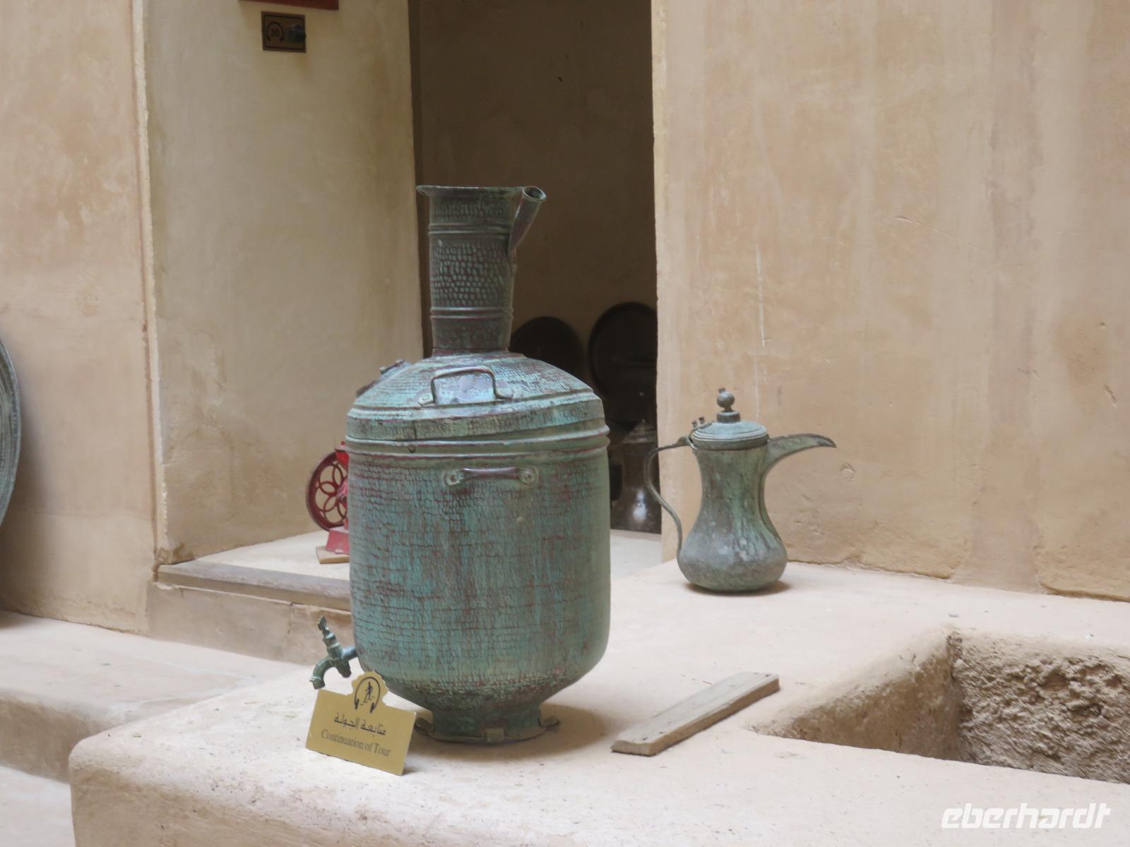 Nach dem Frühstück steht der Besuch der Großen Sultan Qaboos Moschee. Die fünftgrößte Moschee der Welt bietet Platz für bis zu 20.000 Menschen zum Gebet. Der Sultan von Oman ließ dieses imposante Bauerk in nur 6 Jahren Bauzeit von 1995 bis 2001 aus indischem Sandstein und vielen anderen wertvollen Baustoffen, wie Marmor aus Italien und edlen Hölzern errichten. Den riesigen Teppich knüpften im Iran 600 Frauen in vier Jahren von Hand. Die imposanten Kronleuchter, der größte wiegt 8 Tonnen, gestaltete und fertigte die Firma Swarovski in Österreich. Tawfiq gibt uns wieder sehr viele Informationen zur Moschee und zum Islam und dessen 5 Säulen. Diese werden die durch die 5 Minarette symbolisiert. Die Große Sultan Qaboos Moschee ist in der Ausschmückung wirklich orientalisch und wir sind sehr beeindruckt. Anschließend geht es zurück nach Muscat. Am modernen Royalen Opernhaus, welches 2011 eingeweiht wurde, legen wir einen Fotostopp ein. In dem wunderschönen Bau im orientalischen Stil eines alten Forts hat heute die Musik ihr Zuhause. Nun geht es in die Altstadt von Muscat zum berühmten Muttrah Souk. Wir spazieren durch den Markt mit seinem bunten Treiben und zahlreichen Angeboten. Von der Corniche aus sehen wir die beiden großen Yachten des Sultans. Anschließend bringt uns der Bus in das alte Muscat. Oberhalb der alten Straße eröffnet sich uns ein schöner Blick auf den Sultanspalast und die beiden alten Forts, die aus der Zeit der portugiesischen Besetzung stammen. Wir besuchen das Bait Al Zubair Museum. In dieser privaten Sammlung wird das Leben der Omanis an Hand vieler interessanter Exponate, wie Schmuck, traditionelle Kleidung, Alltagsgegenstände sehr anschaulich dargestellt. Wir bekommen dadurch einen guten Einblick in die Traditionen, die Tawfiq mit seinen Informationen noch untersetzt. Unsere Tour führt uns nun zum Sultanspalast Qasr al-Alam. Den heutigen prunkvollen Palast ließ der Sultan Qaboos von Oman in den frühen 1970er Jahren auf der Stelle erweitern, wo die Al-Bu-Said-Regenten seit dem 19. Jahrhundert ihre Residenzen hatten. Der Palast dient heute für offizielle Anlässe und dem Empfang von Staatsgästen. Anschließend kehren wir zum Hotel zurück. Nun bleibt noch Zeit für einen Spaziergang am Meer, bevor uns Tawfiq zum Abendessen in einem typischen arabischen Restaurant abholt. In einem netten Garten des Restaurants Kargeen werden wir mit arabischen Köstlichkeiten verwöhnt. Es gibt gegrilltes Lamm und Hühnchen, Hummus, arabischen Salat und natürlich Fladenbrot. Statt Wein oder Bier wird uns eine super leckere Lemon-Minze-Limonade. Der Abend ist ein schöner Abschluss unseres Aufenthaltes im Norden des Omans.