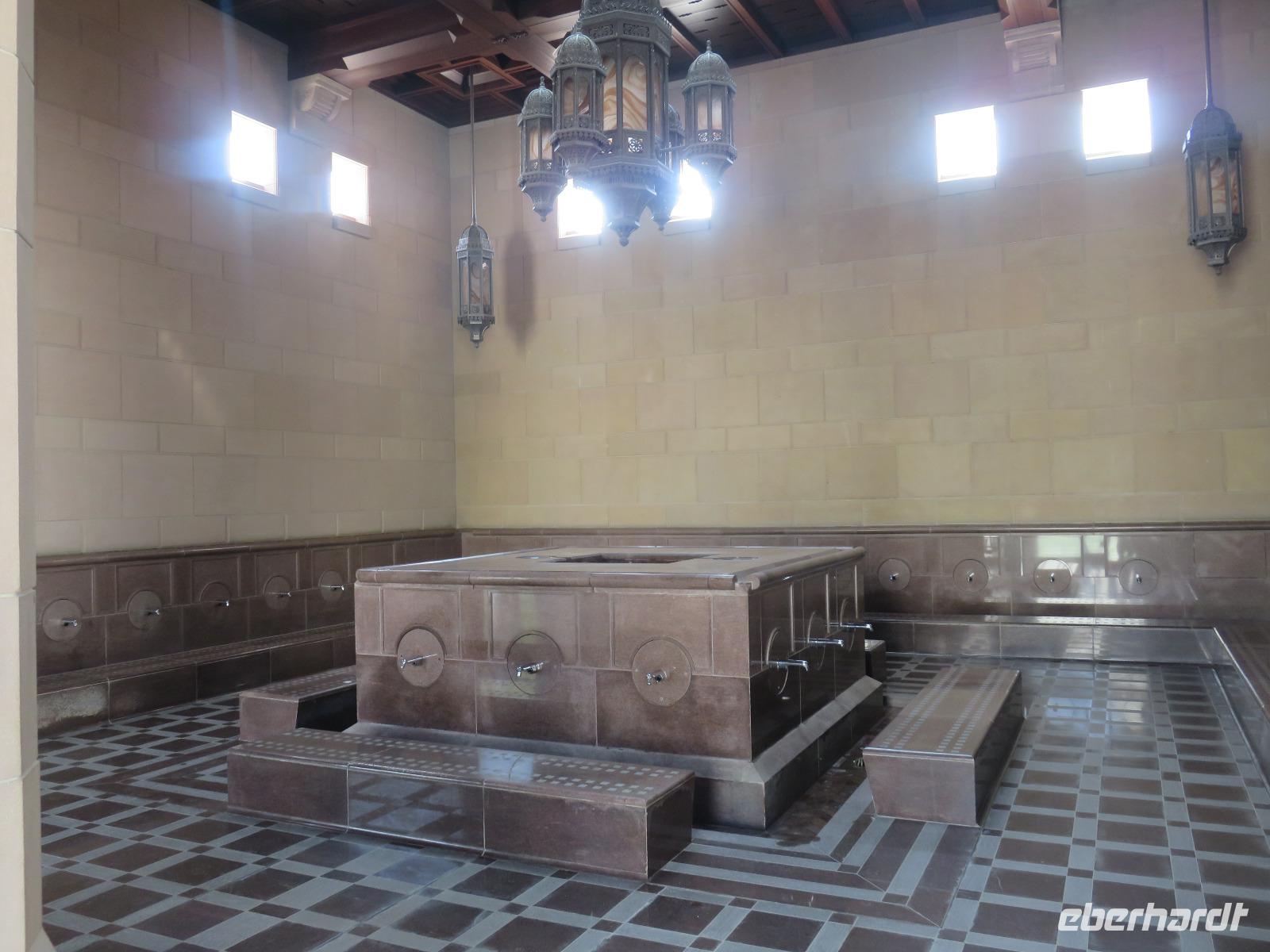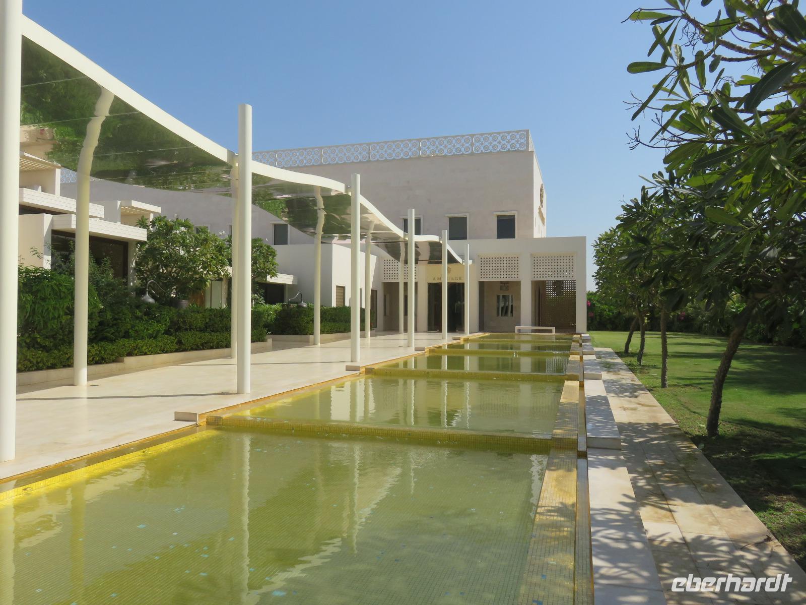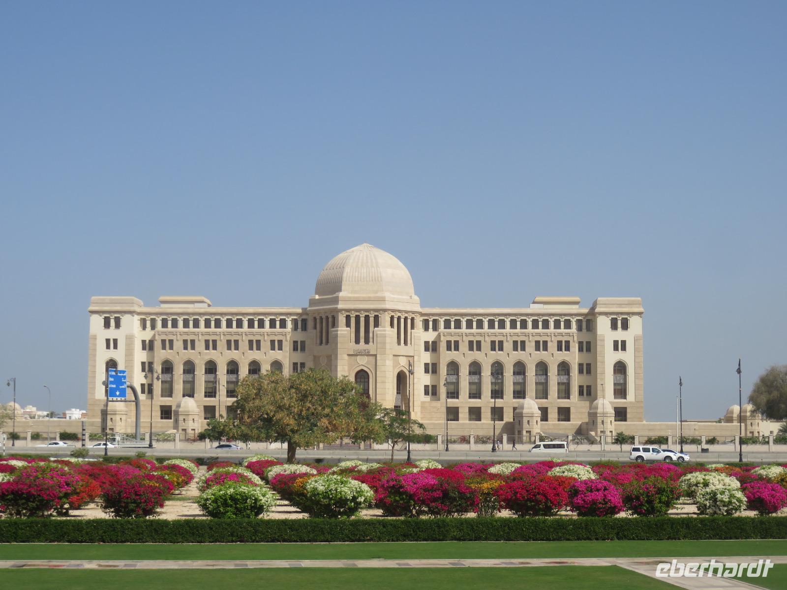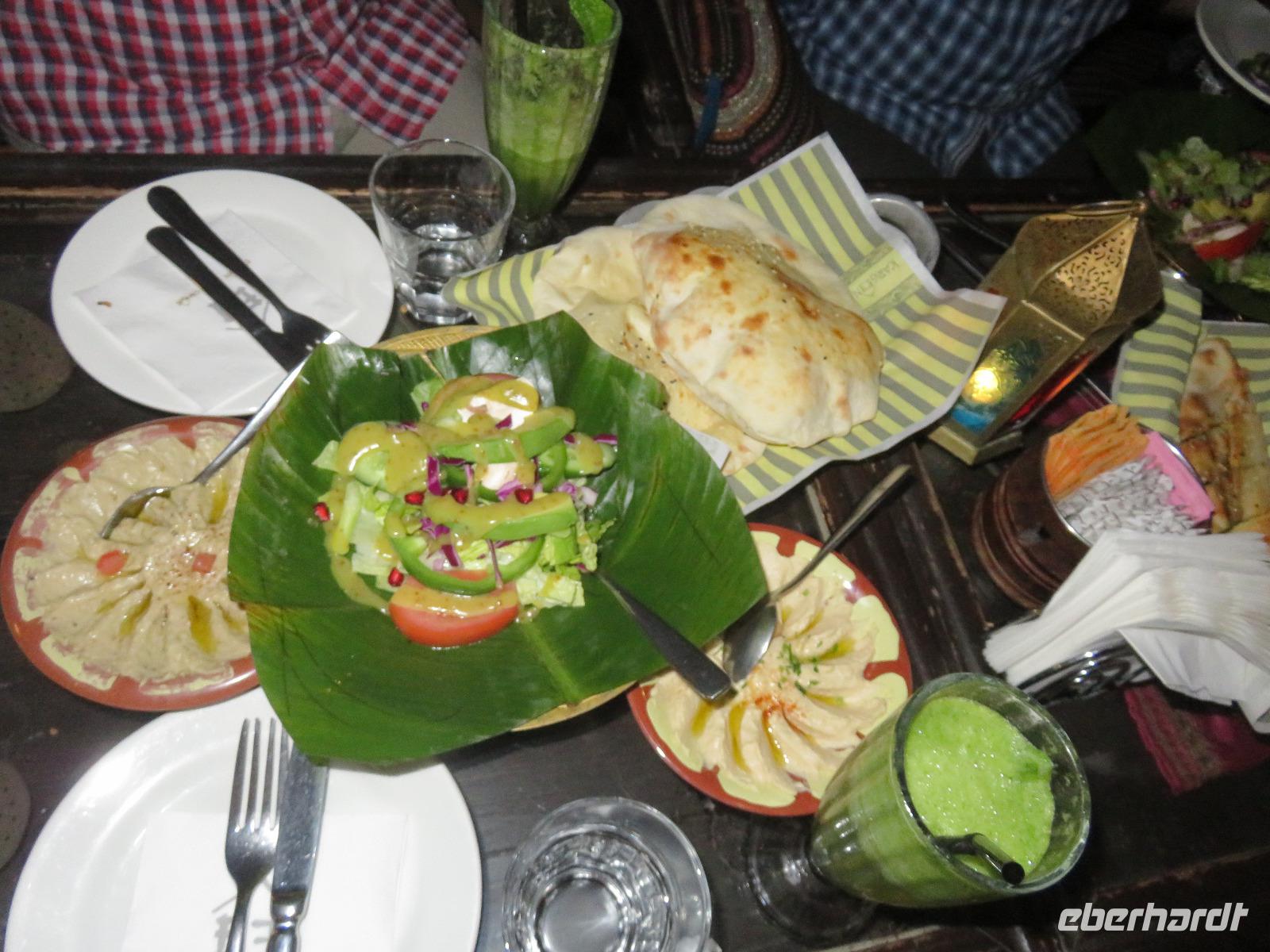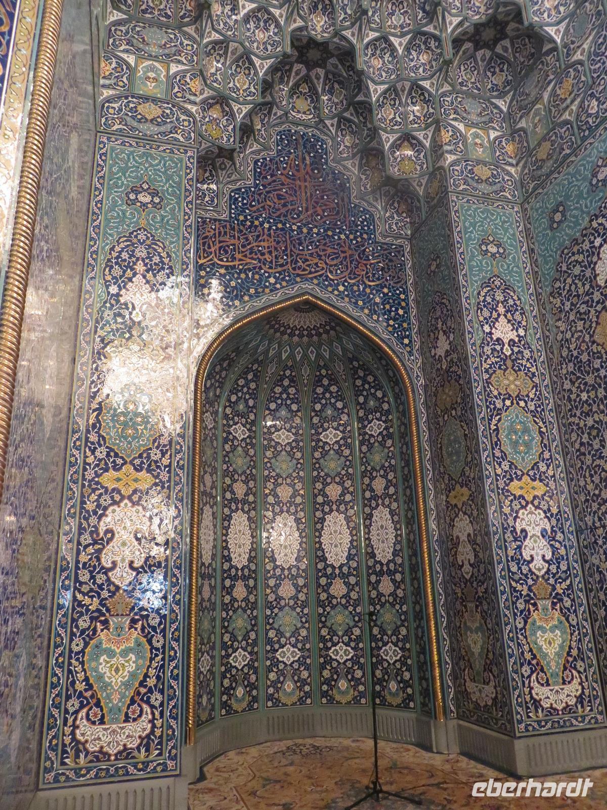 Nach dem Frühstück steht der Besuch der Großen Sultan Qaboos Moschee. Die fünftgrößte Moschee der Welt bietet Platz für bis zu 20.000 Menschen zum Gebet. Der Sultan von Oman ließ dieses imposante Bauerk in nur 6 Jahren Bauzeit von 1995 bis 2001 aus indischem Sandstein und vielen anderen wertvollen Baustoffen, wie Marmor aus Italien und edlen Hölzern errichten. Den riesigen Teppich knüpften im Iran 600 Frauen in vier Jahren von Hand. Die imposanten Kronleuchter, der größte wiegt 8 Tonnen, gestaltete und fertigte die Firma Swarovski in Österreich. Tawfiq gibt uns wieder sehr viele Informationen zur Moschee und zum Islam und dessen 5 Säulen. Diese werden die durch die 5 Minarette symbolisiert. Die Große Sultan Qaboos Moschee ist in der Ausschmückung wirklich orientalisch und wir sind sehr beeindruckt. Anschließend geht es zurück nach Muscat. Am modernen Royalen Opernhaus, welches 2011 eingeweiht wurde, legen wir einen Fotostopp ein. In dem wunderschönen Bau im orientalischen Stil eines alten Forts hat heute die Musik ihr Zuhause. Nun geht es in die Altstadt von Muscat zum berühmten Muttrah Souk. Wir spazieren durch den Markt mit seinem bunten Treiben und zahlreichen Angeboten. Von der Corniche aus sehen wir die beiden großen Yachten des Sultans. Anschließend bringt uns der Bus in das alte Muscat. Oberhalb der alten Straße eröffnet sich uns ein schöner Blick auf den Sultanspalast und die beiden alten Forts, die aus der Zeit der portugiesischen Besetzung stammen. Wir besuchen das Bait Al Zubair Museum. In dieser privaten Sammlung wird das Leben der Omanis an Hand vieler interessanter Exponate, wie Schmuck, traditionelle Kleidung, Alltagsgegenstände sehr anschaulich dargestellt. Wir bekommen dadurch einen guten Einblick in die Traditionen, die Tawfiq mit seinen Informationen noch untersetzt. Unsere Tour führt uns nun zum Sultanspalast Qasr al-Alam. Den heutigen prunkvollen Palast ließ der Sultan Qaboos von Oman in den frühen 1970er Jahren auf der Stelle erweitern, wo die Al-Bu-Said-Regenten seit dem 19. Jahrhundert ihre Residenzen hatten. Der Palast dient heute für offizielle Anlässe und dem Empfang von Staatsgästen. Anschließend kehren wir zum Hotel zurück. Nun bleibt noch Zeit für einen Spaziergang am Meer, bevor uns Tawfiq zum Abendessen in einem typischen arabischen Restaurant abholt. In einem netten Garten des Restaurants Kargeen werden wir mit arabischen Köstlichkeiten verwöhnt. Es gibt gegrilltes Lamm und Hühnchen, Hummus, arabischen Salat und natürlich Fladenbrot. Statt Wein oder Bier wird uns eine super leckere Lemon-Minze-Limonade. Der Abend ist ein schöner Abschluss unseres Aufenthaltes im Norden des Omans.
