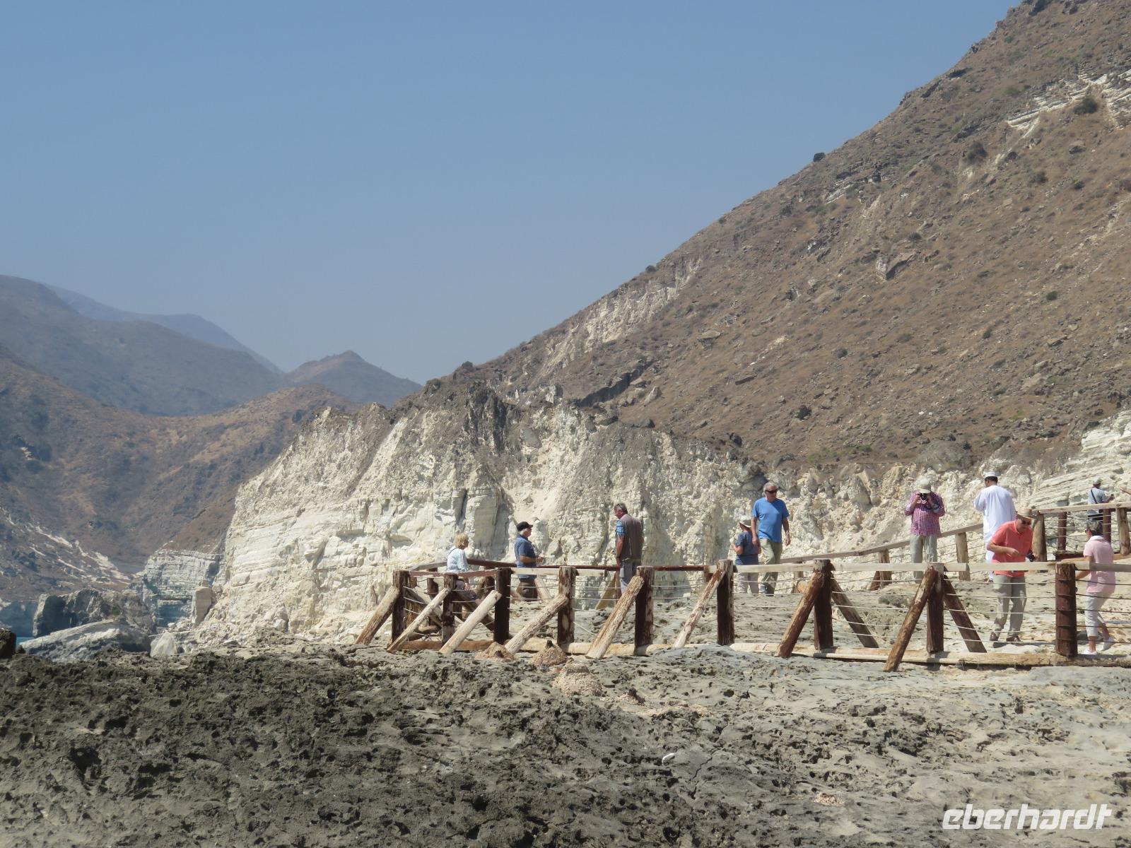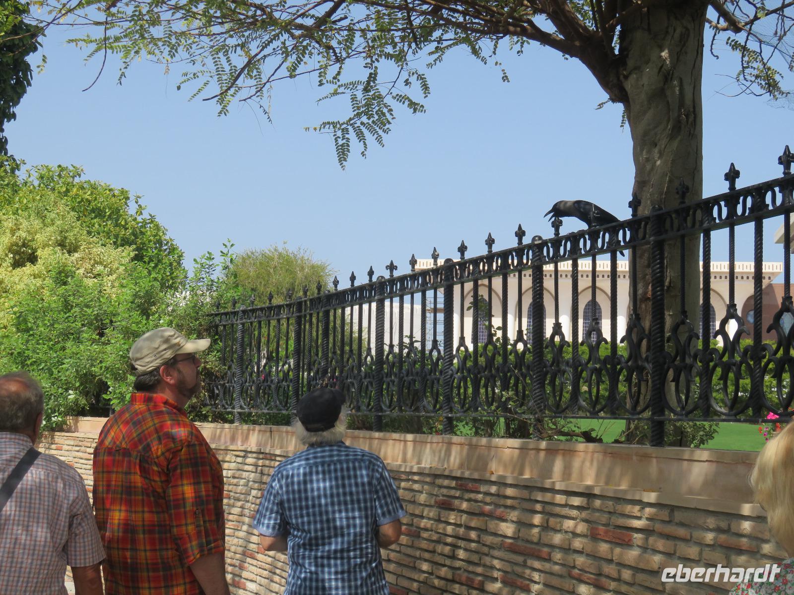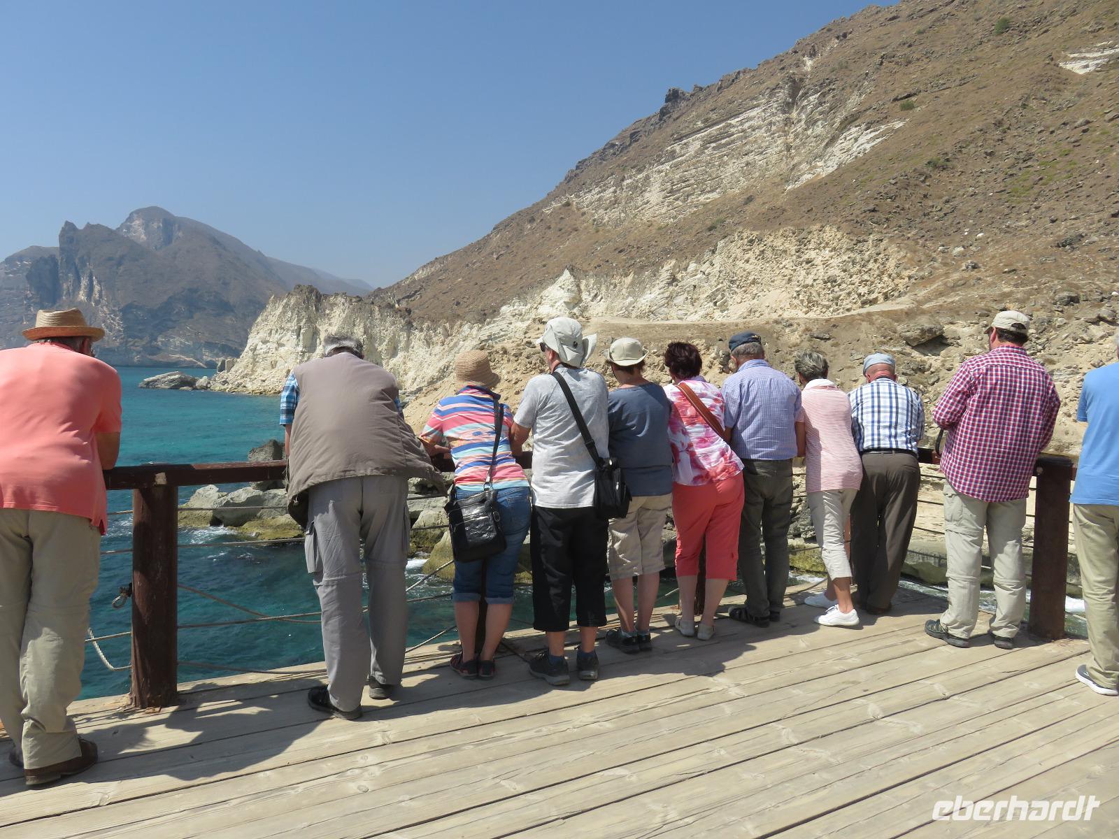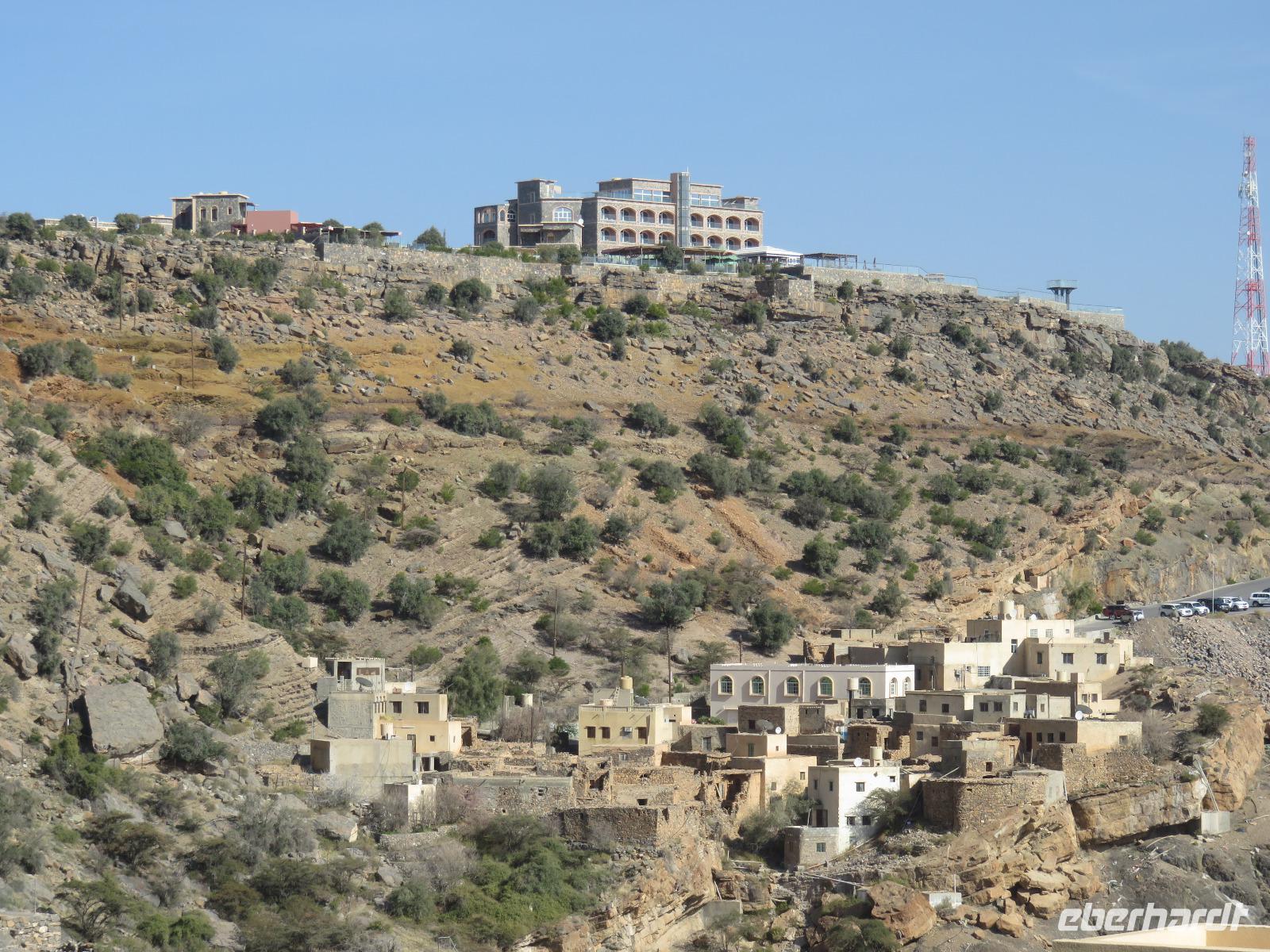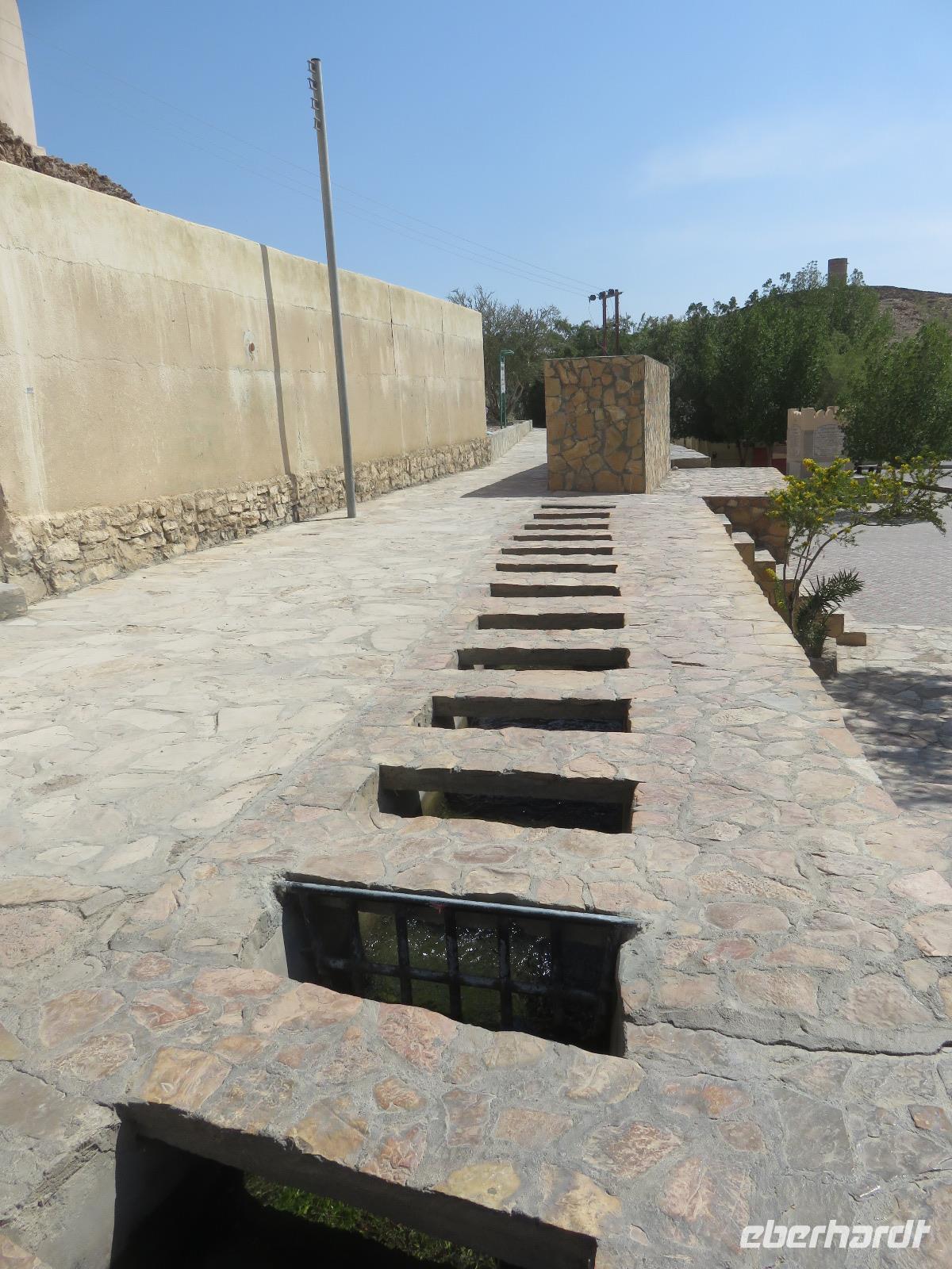 Heute heißt es für uns Umstieg in 4 Jeeps. Unsere Chauffeure erwarten uns bereits. Eigentlich ist die Große Sultan Qaboos Moschee unser erstes Ziel. Auf Grund des Besuches der indischen Premierministerin ist diese aber für Besucher geschlossen und keiner kann sagen, wie lange es dauert. Also beschließen wir den Besuch auf die Tage nach unserer Rückkehr nach Muscat zu verschieben. Anschließend fahren wir zur Fabrik in der das teuerste Parfüm der Welt - Amouage - hergestellt und verkauft wird. Wir sehen die Destilationsanlage, in der früher die Essenzen gewonnen wurden. Heute gibt es modernere Anlagen, in denen aus natürlichen Stoffen edelsten Essenzen destilliert werden. Diese werden nach geheimen Rezepten gemischt und so entsteht Amouage. Wir schnuppern an den edlen Düften. Anschließend beginnt unsere Reise in das Landesinnere Richtung Nizwa. Wir legen unseren ersten Stopp Fuß des Gebirges in Birkat Al Mauz ein. Teilweise gibt es hier traditionelle Lehmbauten, welche wir bei einem kurzen Spaziergang sehen. Bekannt ist der Ort für sein Falaj Al-Khatmeen, ein altes Wasserkanalsytem, welches zum UNESCO Welterbe gehört. Mit diesem über 2.000 Jahre alten Bewässerungssytem versorgten die Menschen ihren Orten auf einer Länge von über 5.000 km mit Wasser aus den Bergen und bewässerten die Felder. Ein Stück dieses Systems ist hier sehr schön restauriert und wir bekommen einen guten Eindruck über die Funktion des Systems. Nun haben wir etwas Hunger und Tawfik führt uns in einen kleinen Coffeshop. Wir wollen unbedingt typisches omanisches Brot probieren. Aus Mehl, Wasser und Salz stellen die Inhaber eine Art Crepés her. Diese werden mit verschiedenen Zutaten, wie Käse, Marmelade oder Honig gefüllt. Es war eine sehr gute Idee und es hat uns sehr gut geschmeckt. Unsere Tour führt uns zunächst weiter über eine atemberaubende Straße in das Gebirge Jebel Al Akadar. Die Passstraße ist teilweise zweispurig ausgebaut und führt auf über 2.000 Meter durch eine faszinierende Landschaft. Unser erstes Ziel ist der Grüne Berg, wie der Jebel Al Akadar genannt wird. Von verschiedenen Aussichtspunkten eröffnen sich uns wunderbare Blicke über die einmalige Landschaft. Danach fahren wir in das Dorf Al Ain, welches hoch über dem Tal an einem Hang thront. Weiter geht es auf die andere Seite des Tales zu „Dianas Viewpoint". Dies ist ein Aussichtspunkt, den Prinzessin Diana besonders geliebt hat. Hier eröffnet sich uns ein einmaliger Blick nach Al Ain und weitere Dörfer, die förmlich am Berghang zu kleben scheinen. Beeindruckend sind die unter den Dörfern liegenden Terrassenfelder. Auf ihnen wachsen Rosen und Granatapfelbäume. Nach einer Kaffeepause geht es die Straße wieder hinab und unsere Fahrer zeigen dabei ihr ganzes Können. Am Nachmittag erreichen wir das Golden Tulip Hotel in Nizwa. Am Abend bedienen wir uns am ausgezeichneten Buffet im Garten des Hotels. Es ist ein schöner Abschluss für unseren Tag.