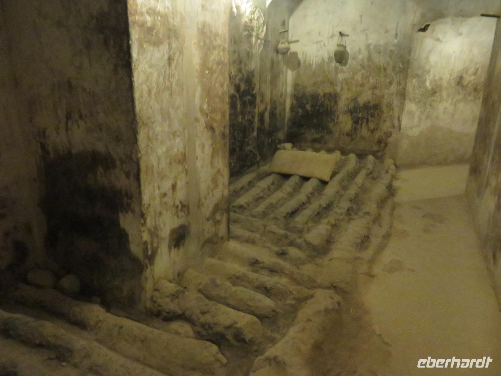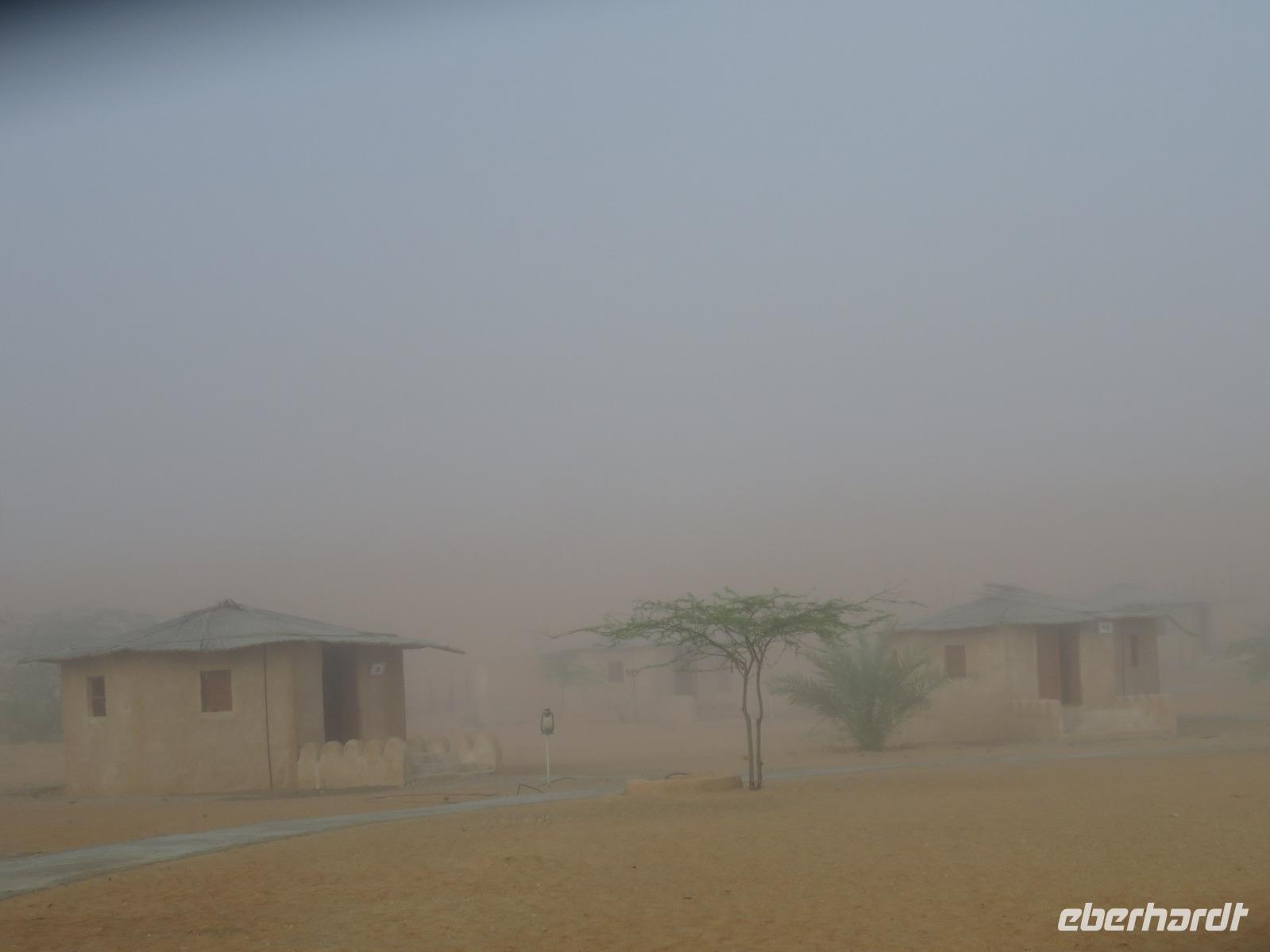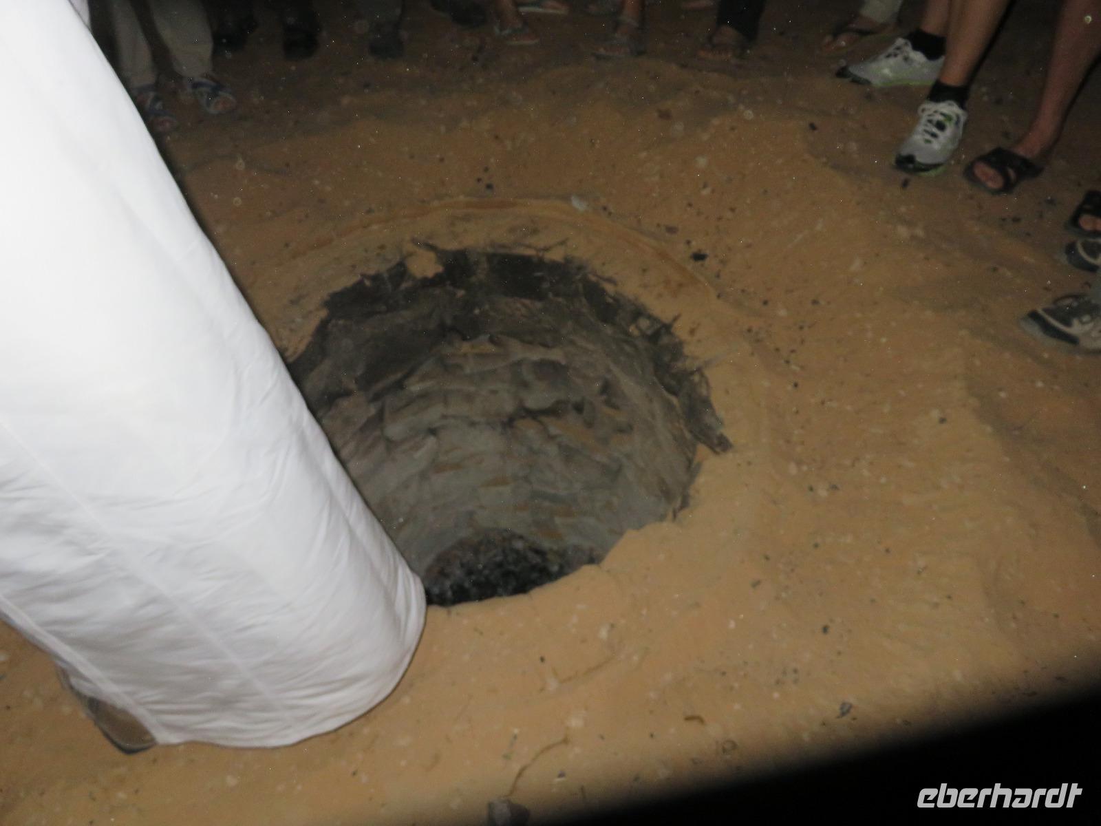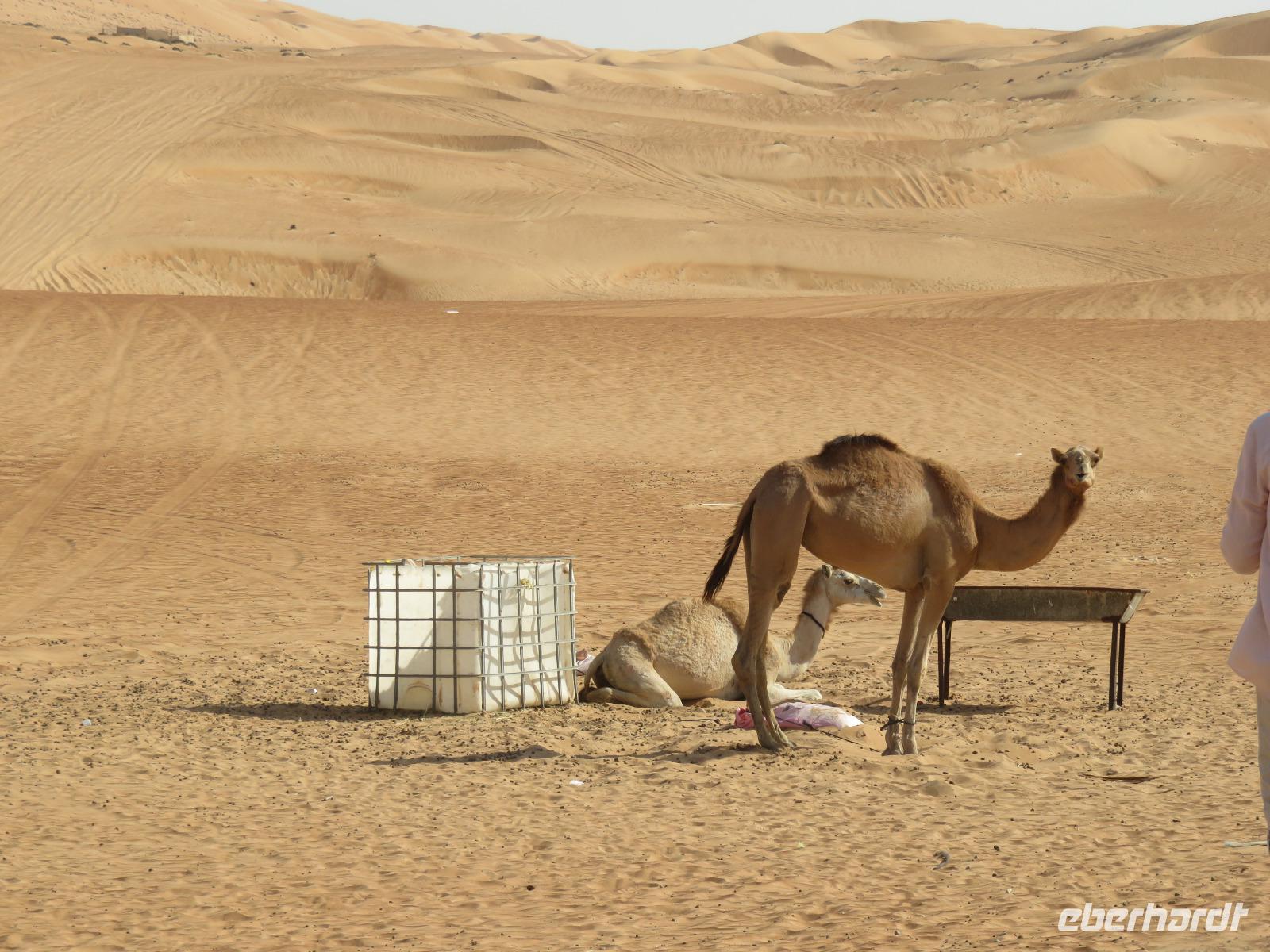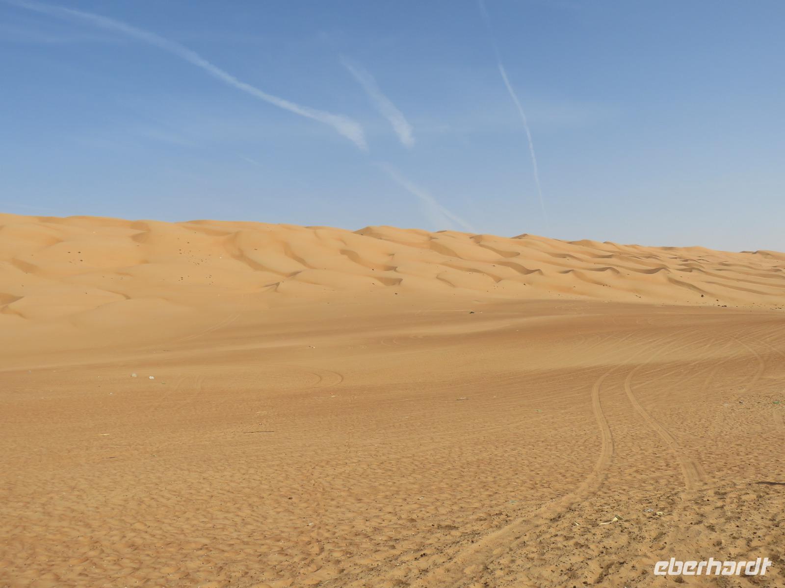 Am Morgen fahren wir zunächst nach Nizwas zum Souk. Zunächst sehen wir den Bereich, wo am Freitag immer der traditionelle Viehmarkt stattfindet. Twafiq erklärt uns kurz das Prozedere, wie die Tiere gehandelt werden. Im Dattelmarkt verkosten wir die verschiedenen Sorten Datteln, die im Oman einfach dazu gehören und überall als eine Form der Gastfreundschaft gereicht werden. Anschließend geht es in den Obst- und Gemüsemarkt. Ganz ursprüngliche bieten die Einheimischen ihre Waren feil. Auf dem Weg zum Fort von Nizwa durchstreifen wir den Gewürzmarkt vorbei. Im Handwerkermarkt mit verschiedenen Angeboten von Silberschmuck, Töpfereiwaren und anderen Kunsthandwerkarbeiten ist etwas Zeit zum Schauen und auch Kaufen. Der Besuch des Souks ist für uns sehr interessant. Anschließend statten wir dem Fort von Nizwa einen Besuch ab. Im 17. Jahrhundert ist es zum Schutz der Stadt errichtet wurden. Im Innenhof tritt gerade eine Gruppe Männer mit traditionellen Gesängen auf und wir lauschen eine Weile. Nun besteigen wir durch das interessante mehrfach verwinkelte Treppenhaus den großen Turm. Von hier oben bietet sich uns ein herrlicher Blick über die Stadt und die umliegenden Berge. Im kleinen Museum bekommen wir einen kleinen, sehr interessanten Einblick in die Geschichte der Stadt und das Leben der Omanis in früherer Zeit. Auf dem Hof zeigen Frauen, wie das traditionelle Omanische Brot gebacken wird. Ein Töpfer und ein Tischler führen ihr Handwerk aus. Wir sehen auch, wie Ziegenkäse auf traditionelle Art hergestellt wird. Nun heißt es nochmals rund 2,5 Stunden zu fahren, ehe wir den Eingang der Wüste erreichen. Nach einer Mittagspause in Ibra wird am Eingang der Wüste der Reifendruck in unseren 4 Jeeps reduziert. Über Sandpisten geht es jetzt direkt ins Wüstenabenteuer. Wir sehen einige Beduinen mit Ihren Ziegen und Kamelen. Allerdings leben heute die meisten Beduinen nicht mehr als Nomaden. Sie sind in festen Häusern in der Wüste sesshaft. Nach etwa 30 Minuten Fahrt kommen wir im Safari Desert Camp an. Mit Tee, omanischem Kaffee und natürlich Datteln werden wir begrüßt. Wir beziehen unsere recht einfach ausgestatteten bungalowartigen Unterkünfte. Nach einer kurzen Pause geht es mit den Jeeps hinauf auf die, dem Camp gegenüber liegende, rote Sanddüne. Das letzte Stück klettern wir durch den feinen Sand hinauf auf den Kamm der Düne. Wir erleben einen fantastischen Sonnenuntergang. Wir sind uns alle einig, dass dies ein Höhepunkt unsrer Reise ist. Wir steigen wieder zu den Jeeps hinab. Etwas abenteuerlich gestaltet sich die Rückfahrt zum Camp. Es geht in direkter Linie die Düne hinab. Es ging alles gut und es ist für uns ein tolles Erlebnis. Das Abendessen wird zum Teil ganz traditionell nach alt omanischer Art im Erdofen zubereitet. Wir dürfen zuschauen, wie das Lammfleisch, welches in Bananenblättern und Tüchern eingewickelt über mehrere Stunden gegart wurde, aus dem Erdofen geholt wird. Anschließend bedienen wir uns am Buffet. Die Beduinen führen einige traditionelle Gesänge vor. Bevor wir uns zur Ruhe legen, bestaunen wir den einmaligen Sternenhimmel. Wir genießen die Stille der Wüste.