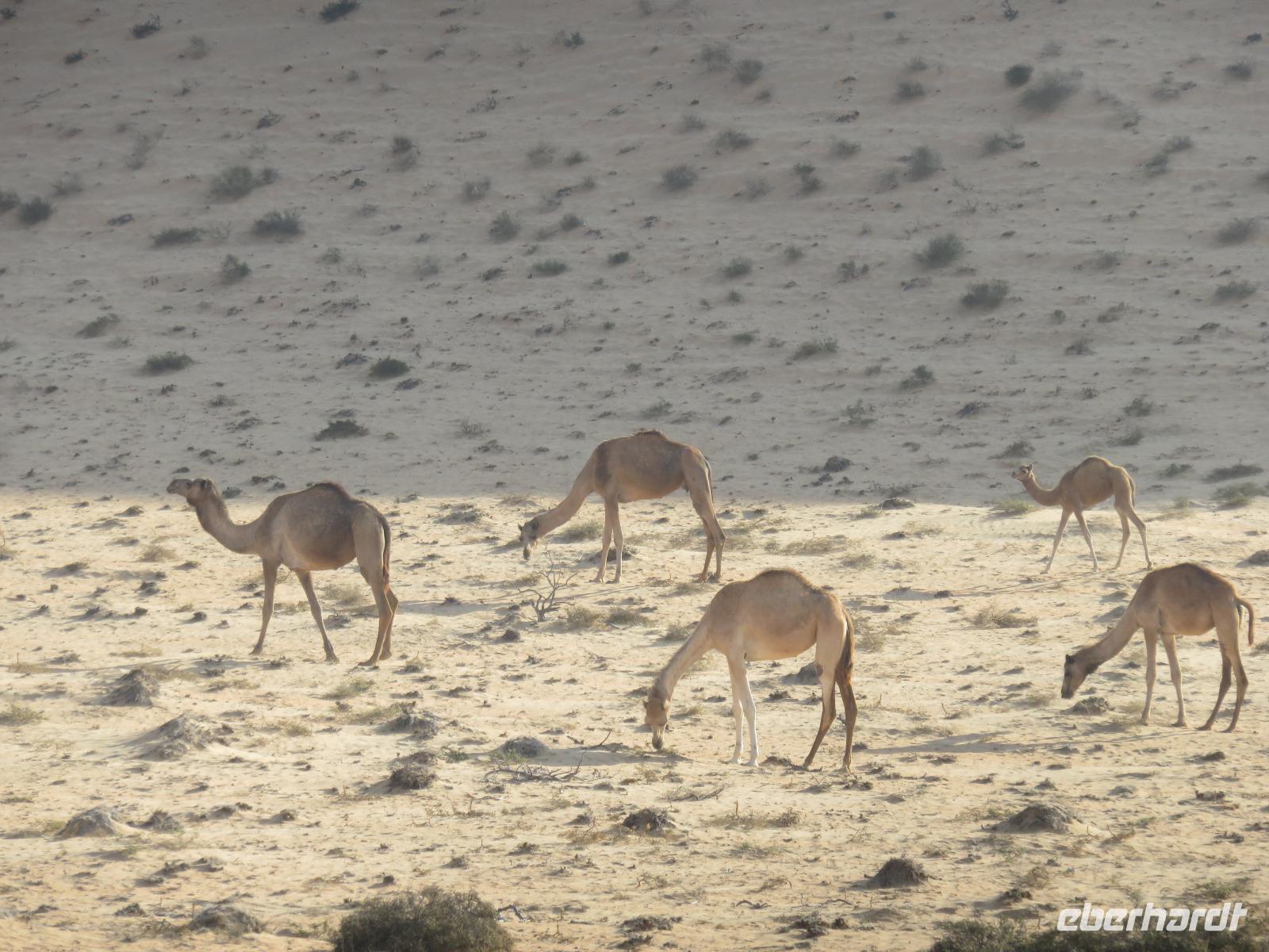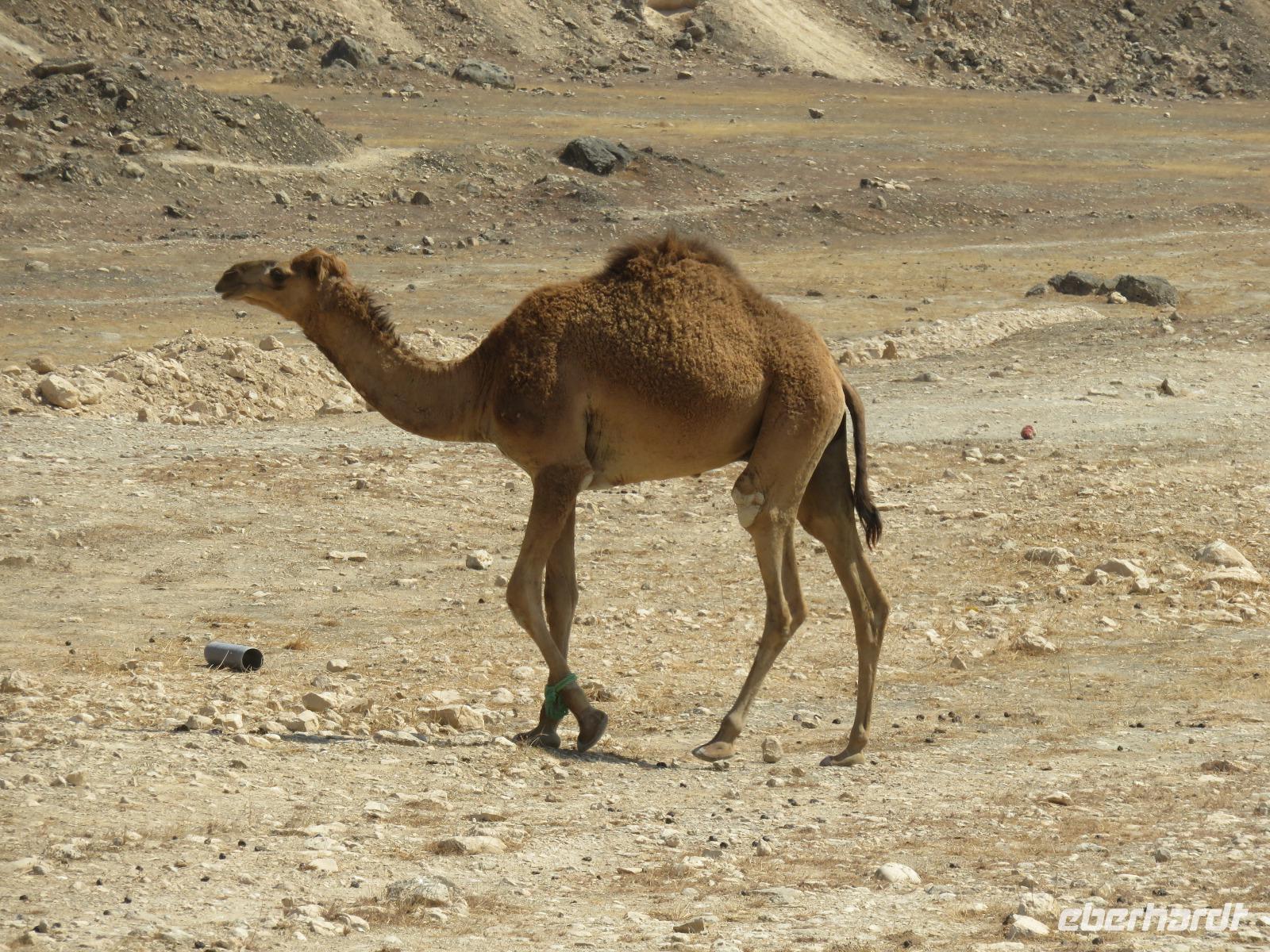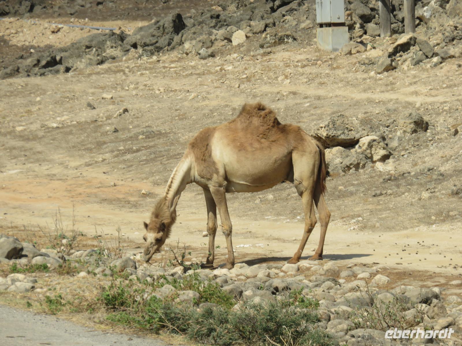 Nach dem Frühstück fahren wir in den Westen von Dhofar. Zunächst geht es hinauf in das Qara-Gebirge. Wir finden hier eine völlig andere Landschaft vor, als wir Sie im Norden des Omans erlebt haben. Kalkstein ist das dominierende Gestein und dementsprechend gibt es verschiedenste Fels- und Gebirgsformationen. Zuerst bringt uns der Bus auf 820 Meter Höhe. Dabei eröffnen sich uns immer wieder neue Ausblicke auf Salalah und die Berge. Wir sehen kleine Dörfer und Kamele, die an den Hängen nach Futter suchen. Unser Ziel ist das Grabmal des Propheten Hiob. Es liegt auf einem Berg. Salem erklärt uns die Geschichte von Hiob, der mit seiner Familie hier gelebt hat. Dann aber erfuhr er durch Krankheit großes Leid und verlor alles, außer seinen Glauben an Gott. Als es ihm ganz schlecht ging soll er der Legende nach mit dem Fuß auf den Boden gestampft haben und eine Quelle tat sich auf. Er wurde geheilt und seine Familie kehrte zurück und er führte ein gutes Leben bis zu seinem Tod. Wir sehen den Fußabdruck und den kleinen Tempel, in dem sich das Grab befindet. Nun geht es wieder hinab ans Meer. Unterwegs halten wir an einem Weihrauchbaum. Salem erklärt uns, wie der Weihrauch gewonnen wird: Die Stämme der Bäume werden angeritzt und das Harz tritt als weiße Flüssigkeit aus. Es trocknet in der Sonne und der Weihrauch kann nach 3 - 4 Wochen gesammelt werden. Weiter fahren wir zum Strand von Mughsay. Auch dieser mutet an, wie in der Karibik. Uns begegnet eine große Herde Kamele, die wir natürlich bei einem Fotostopp im Bild festhalten müssen. Zunächst besuchen wir einen Aussichtspunkt oberhalb des wunderbaren Strandes in mitten einer faszinierenden Gebirgslandschaft aus Kalkstein. Wir haben einen wunderschönen Blick auf das türkisblaue Meer tief unter uns. Anschließend erreichen wir wieder den Strand und besuchen die Blowholes von Mughsayl. In mitten bizarrer Felsgebilde am Strand schießen bei entsprechendem Wasserstand in regelmäßigen Abständen Meerwasserfontänen in die Luft. Leider können wir dies aber nicht beobachten, da der Wasserstand zu niedrig ist. Wir sehen aber eine Meeresschildkröte und sind fasziniert von der Schönheit des Ortes. Am Mittag kehren wir zum Hotel zurück. Der Nachmittag steht allen zum Erholen und Genießen des wunderschönen Karibik-Flairs am Strand zur Verfügung. Der Tag klingt wieder beim leckeren Abendessen im Strandrestaurant aus.