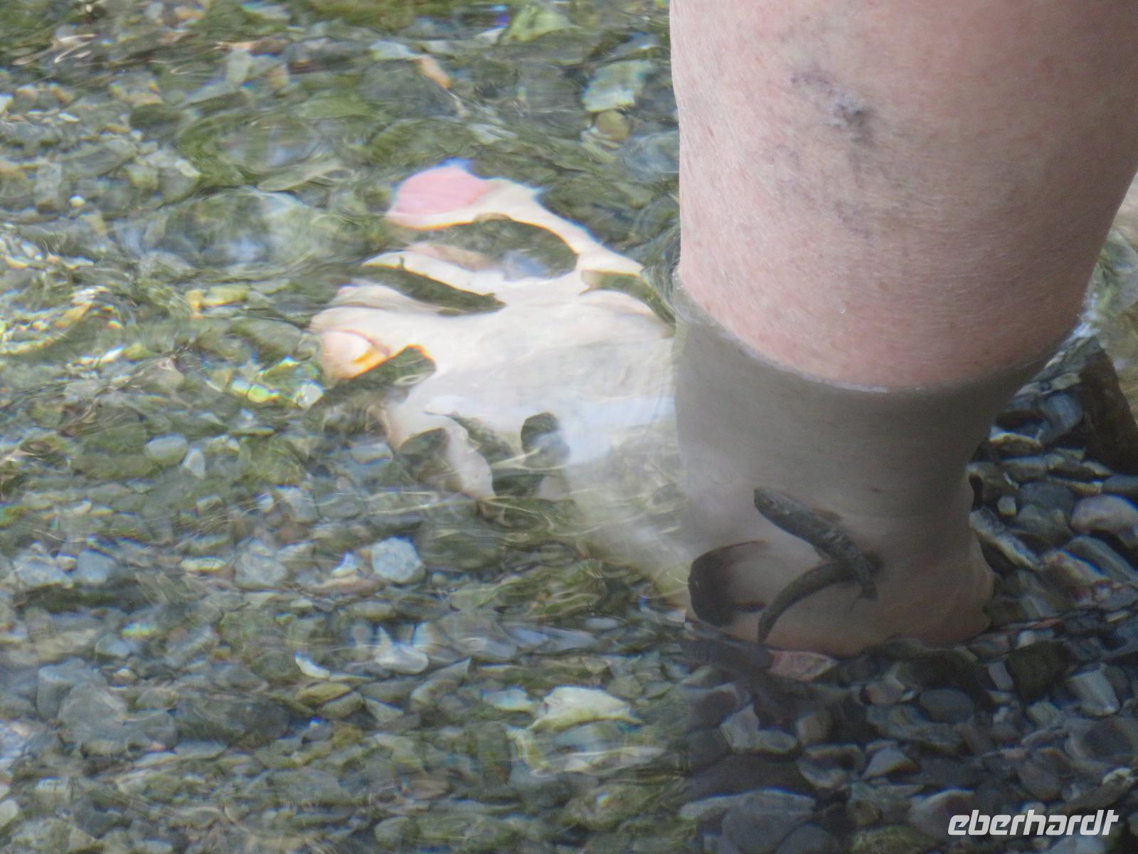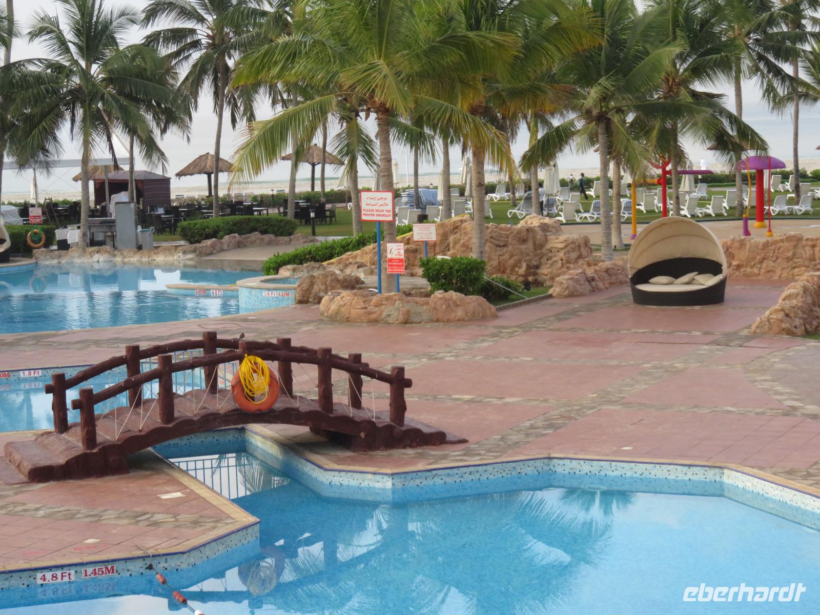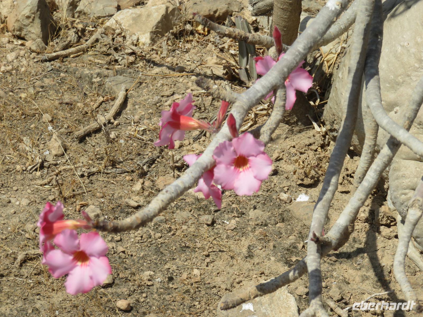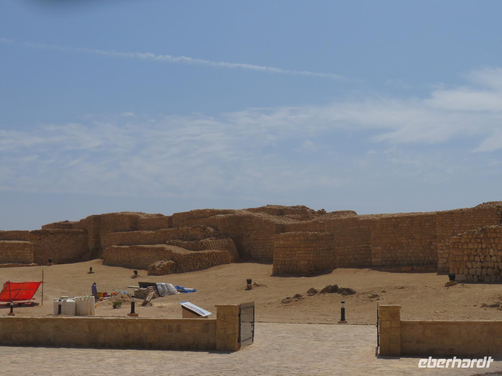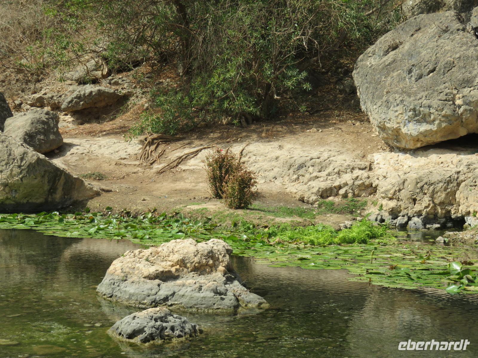 Am Morgen reisen wir Richtung Osten. Mirbat ist unser erstes Ziel. Unterwegs legen wir einen kurzen Stopp an einer Lagune ein, in der wir Flamingos, die hier weiß bzw. grau sind, beobachten können. In Mirbat sehen wir das Grab des Heiligen Bin Alis. Er war im 12. Jahrhundert ein angesehener Wissenschaftler und Gelehrter in der Region. In der Stadt Mirbat besuchen wir das Schloss des ehemaligen Herrschers. Dieses wird derzeit restauriert und beherbergt eine gute Ausstellung zur Geschichte der Stadt. Nun schauen wir am Hafen und auf dem Fischmarkt vorbei. Im Hafen liegen die kleinen Boot der Fischer und traditionelle Dhaus, mit denen die Fischer 3 - 4 Tage zum Fischfang fahren. Mit dem Bus erreichen wir das UNESCO-Weltkulturerbe Sumhuram. Vorher sehen wir am Straßenrand die wunderschön in Pink blühende Wüstenrose. In Sumhuram befindet sich eine antike Hafenanlage. Bereits vor 6.000 Jahren fand hier in einem, durch einen Wadi entstandenen natürlichem Hafen, der Weihrauchhandel statt. Bis nach Ägypten und in andere Länder wurde der Weihrauch, der zu damaliger Zeit kostbarer als Gold war per Schiff gebracht. Es entwickelte sich ein großes Handelszentrum. Als Fort wurde die Stadt auf einem Hügel mit direktem Zugang zum Hafen angelegt. Zur Blütezeit lebten 200 bis 300 Menschen hier. Es gab einen einen Brunnen, Lagerhäuser, Wohngebäude, ein Tempel und andere Gebäude. Diese historische Anlage ist heute als Ruinenstadt erkennbar und es werden noch immer Ausgrabungen vorgenommen. Wir spazieren durch die weitläufige Anlage und genießen die Aussicht über die imposante Anlage. Jetzt steht das Fort Taqah auf unserem Besuchsprogramm. Das Fort ist vor ca. 200 Jahren entstanden und diente dem Wali - also Bürgermeister der Region - als Wohn- und Arbeitsstätte. In allen Räumen können wir dhofarische und osmanische Alltagsgegenstände bestaunen. So erlangen wir einen guten Einblick in das Leben vor langer Zeit. Im Schlafraum des Walis sehen wir das Bett und im Kinderzimmer steht ein reizendes Kinderbett. In der Küche auf dem Dach sind Geschirrteile ausgestellt mit denen die typischen arabischen Gerichte hergestellt wurden. Direkt im Eingangsbereich befindet sich eines der Büros des Wali. Hier entschied er, ob ein Mensch der eine strafbare Handlung begangen hat, direkt ins im Hof liegende Gefängnis wandert oder als freier Mensch das Fort wieder verlässt. Dieser Besuch ist für uns sehr aufschlussreich. Anschließend fahren wir zu den Quellen von Ain Razat. Diese Quellen führen immer Wasser. Es wird über eine Bewässerungsanlage zur Versorgung der Felder abgeleitet. Das klare Wasser ist aber auch Lebensraum für viele Fische. Von einer kleinen Höhle oberhalb des Flusses, die früher als Schattenspender für die Hirten und heute als Picknick. Nach diesem letzten Stopp geht es zurück zum Hotel. Am Nachmittag nutzen wir die Zeit zum Baden im Meer und Erholen im Hotel. Am Abend bedienen wir uns wieder am reichhaltigen Buffet im Strandrestaurant und stoßen mit einem Glas Wein auf die schöne Reise an. Wir ließen die wirklich schönen Tage nochmals Revue passieren.