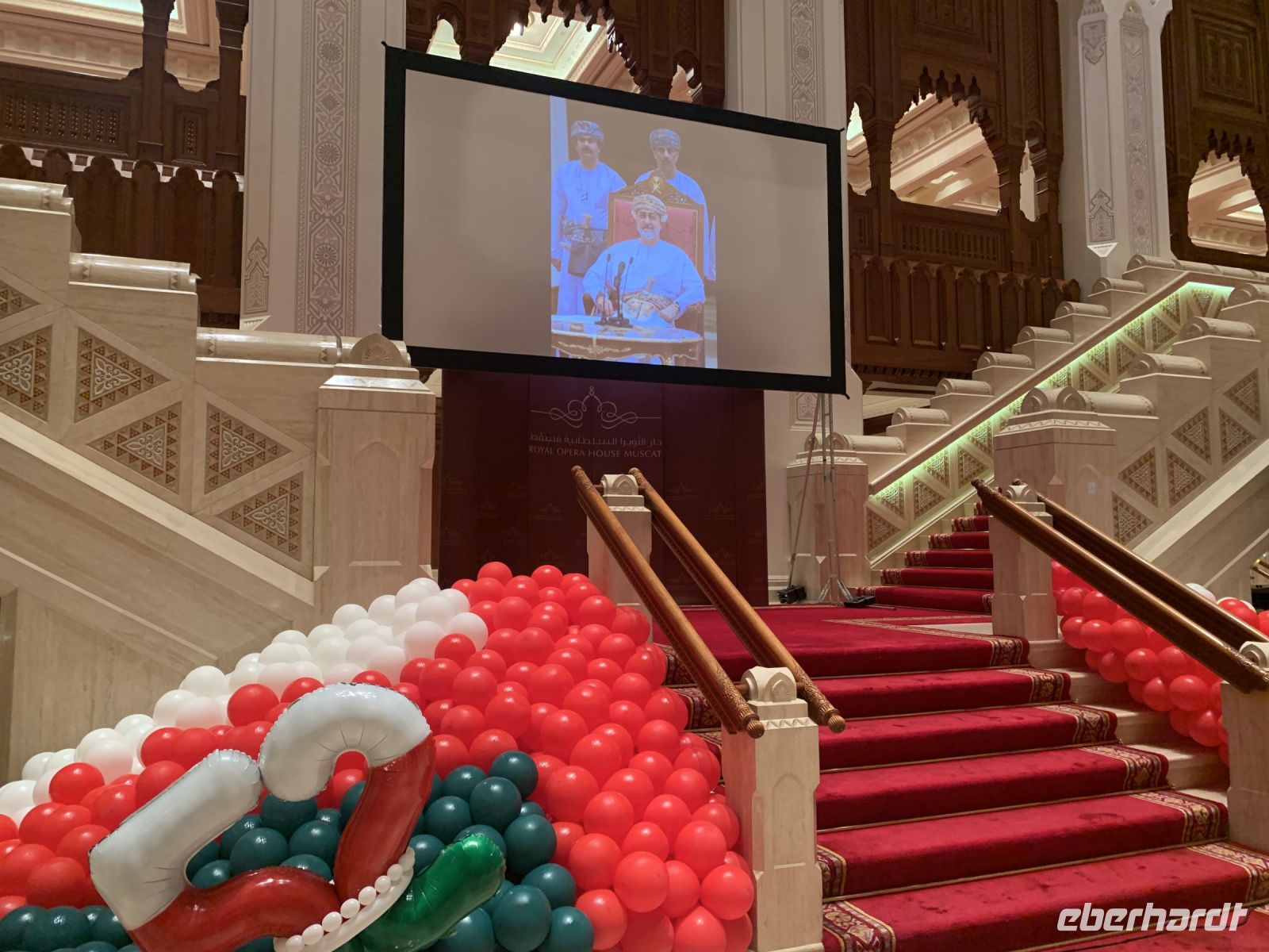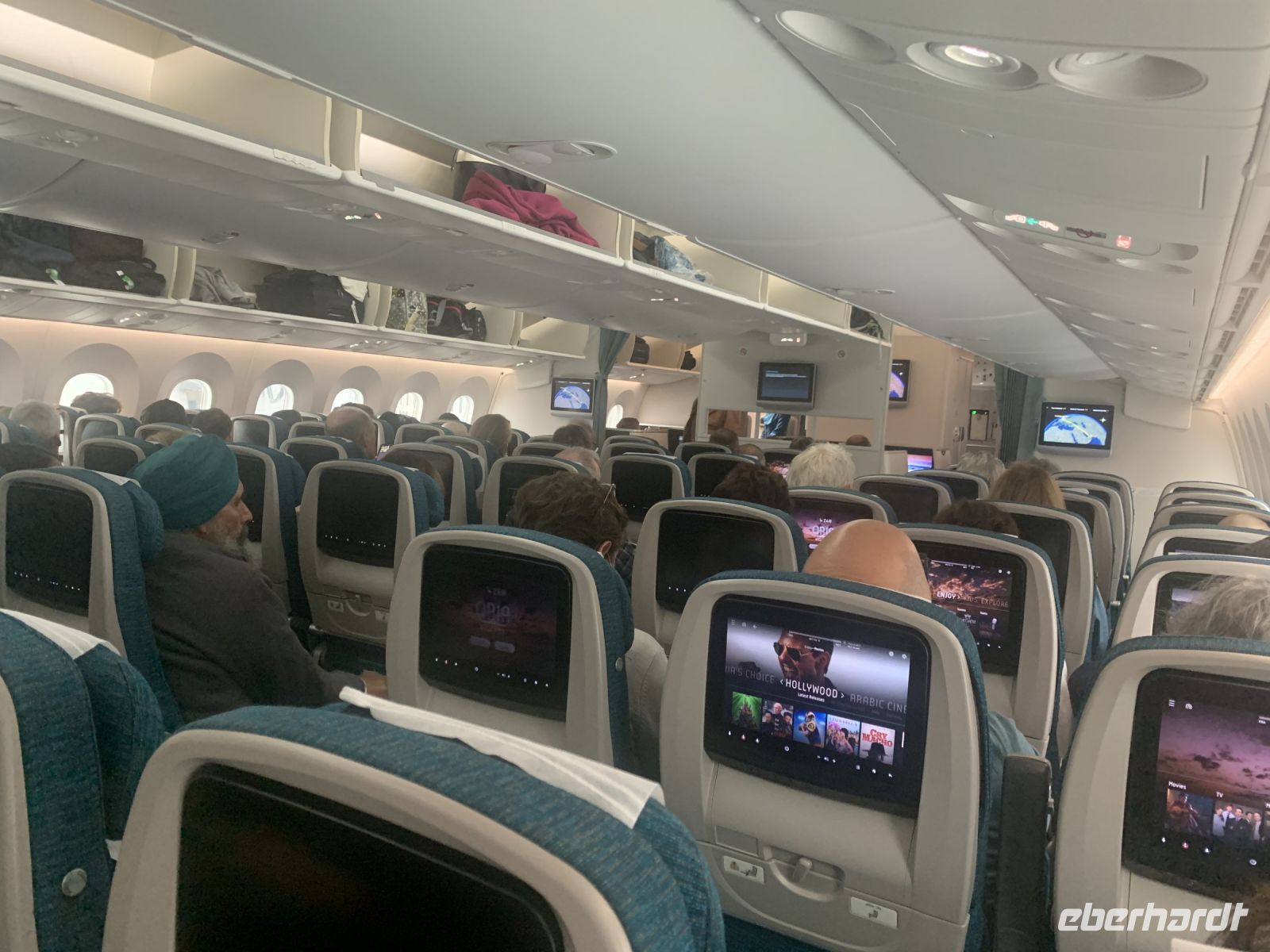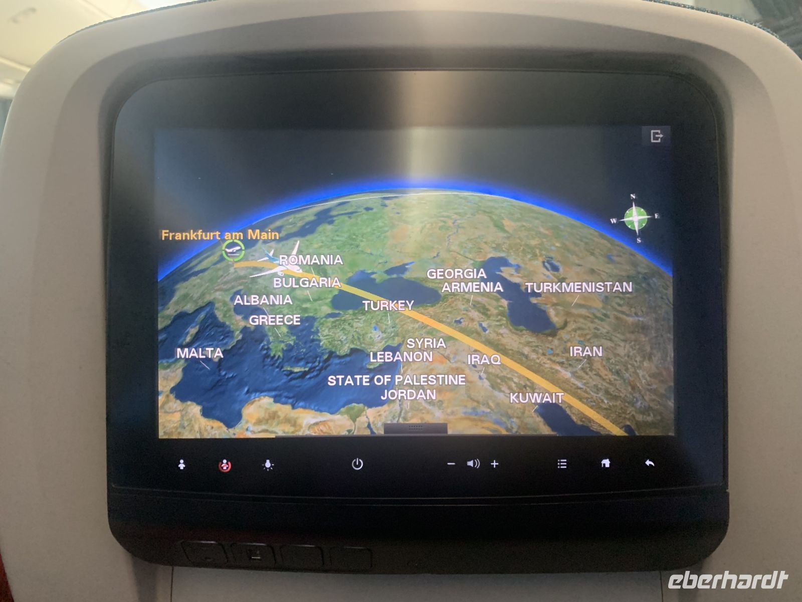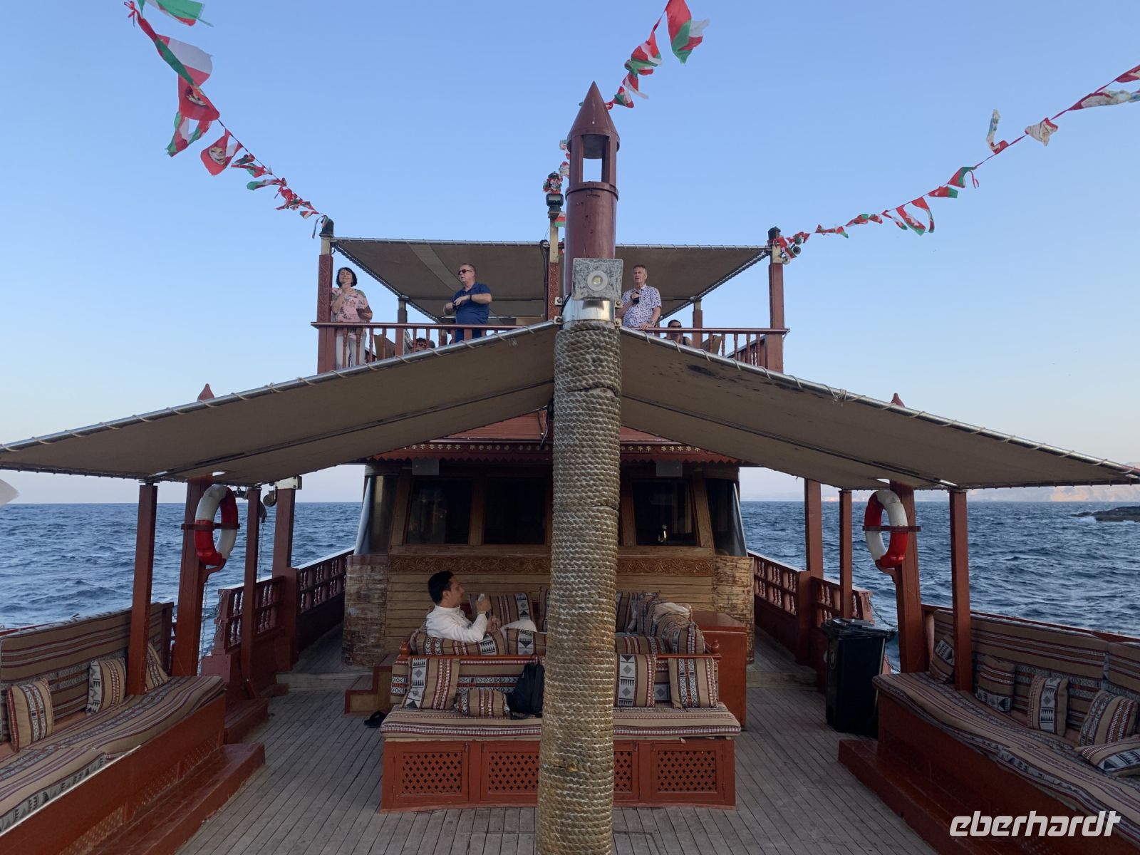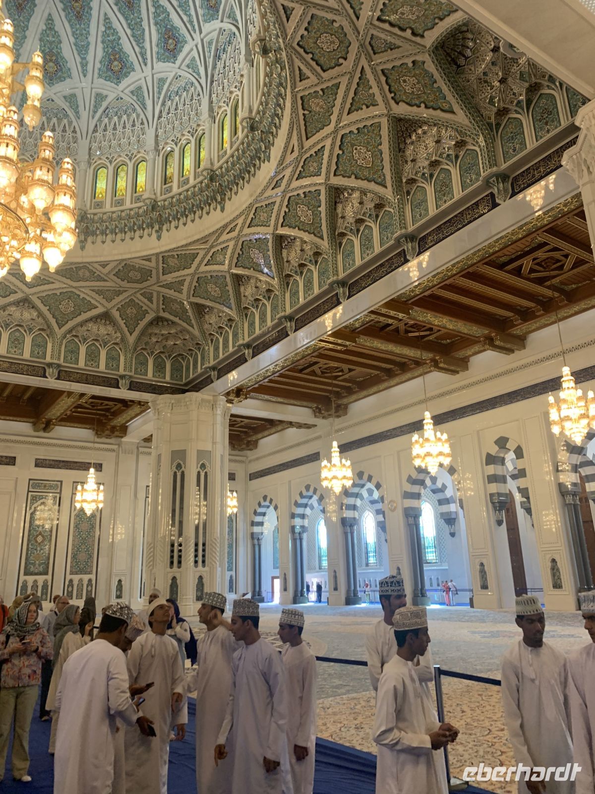 Mit verschiedenen Zubringerflügen, mit dem Zug oder individuell reisen wir nach Frankfurt/Main an und unsere kleine Reisegruppe mit 11 reiselustigen Gästen und mir ist komplett. Mit einem Dreamliner der Oman Air, der staatlichen Airlines des Sultanats Oman, fliegen wir in eine für uns unbekannte Welt. Der Flug (etwas mehr als 6 Stunden) ist äußerst angenehm, der Service der immer freundlich lächelnden Flugbegleiter ausgezeichnet; hier können sich manche Airline wirklich eine große Scheibe abschneiden! Sogar für 5 Minuten Verspätung wird sich aufrichtig entschuldigt!