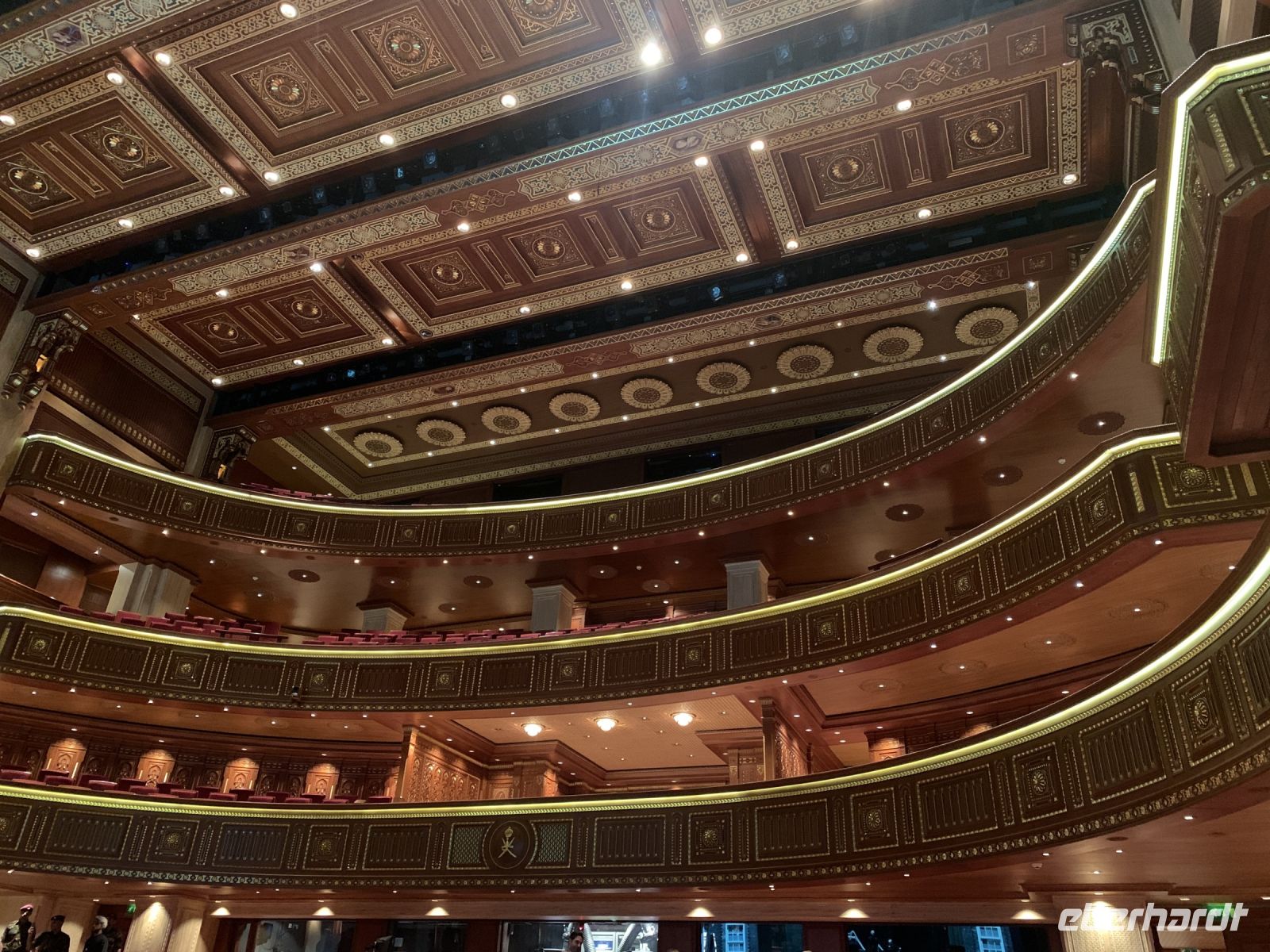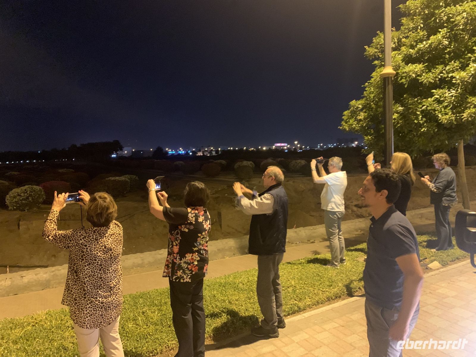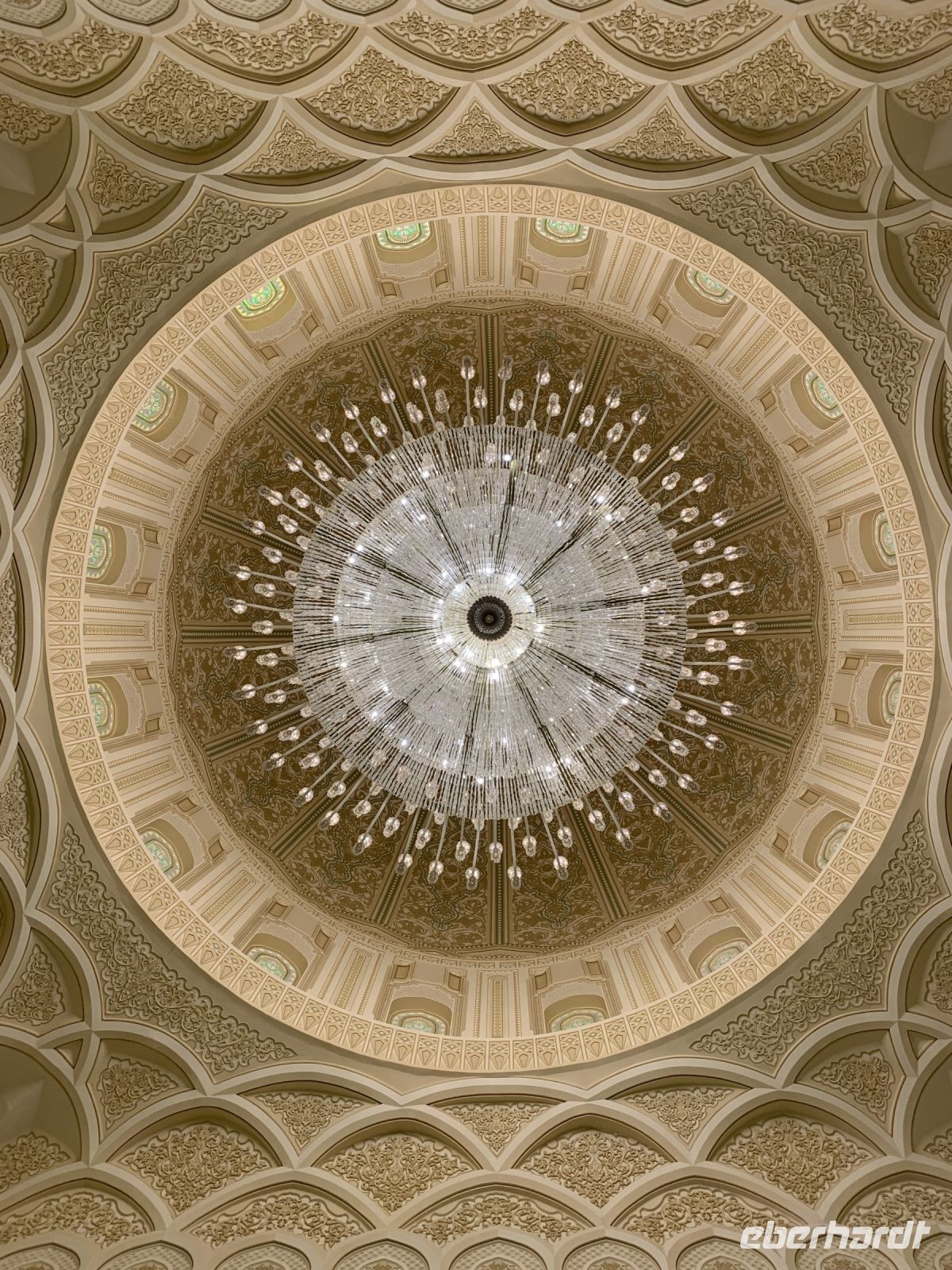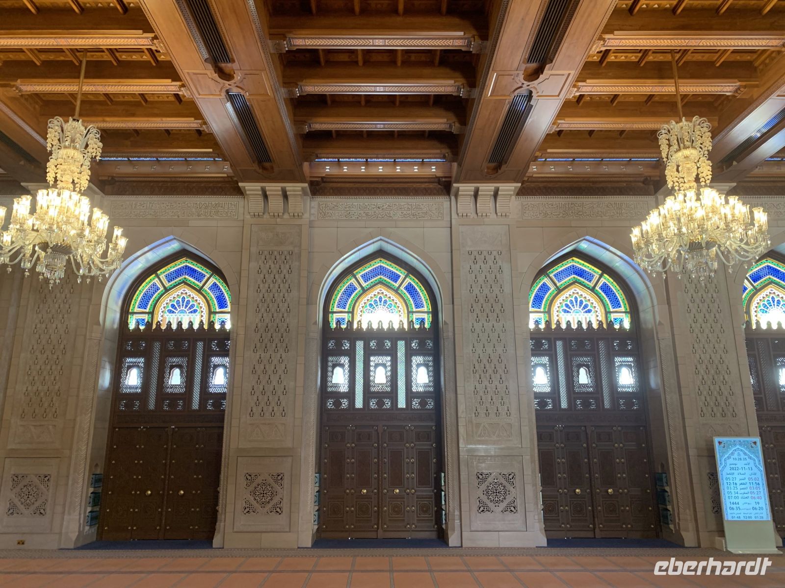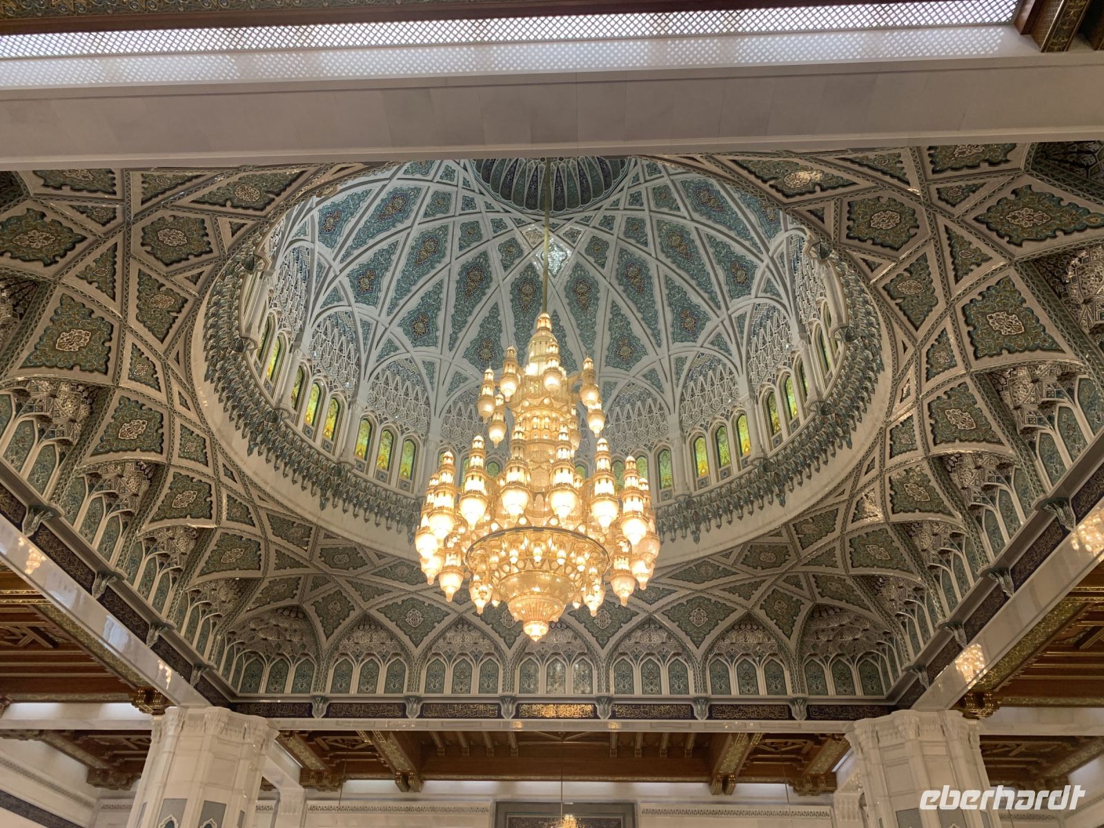 Schnell sind die Koffer im Anhänger unseres kleinen Coasters verstaut und wir starten in Richtung Hotel. Auf der Fahrt (der Flughafen liegt etwa 25 Kilometer westlich der Hauptstadt) zum Hotel erblicken wir bereits die großartig beleuchtete Sultan Qaboos Moschee, die wir alle im Bild festhalten.