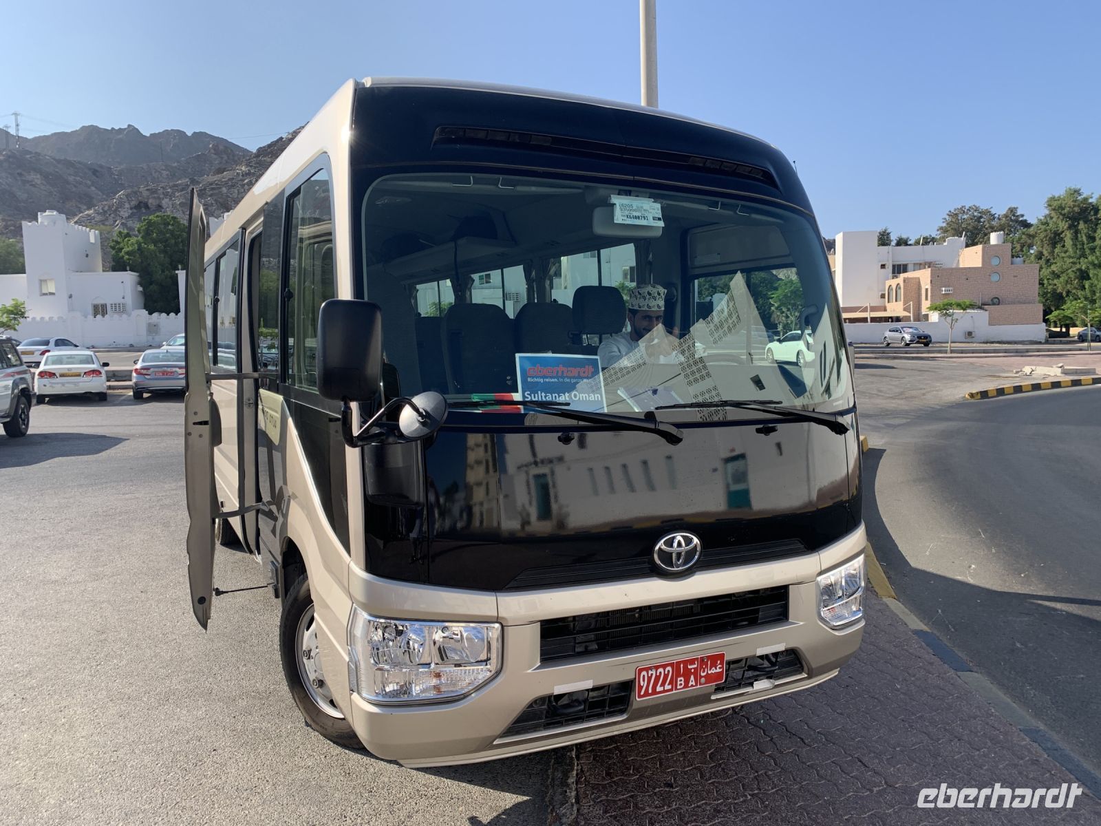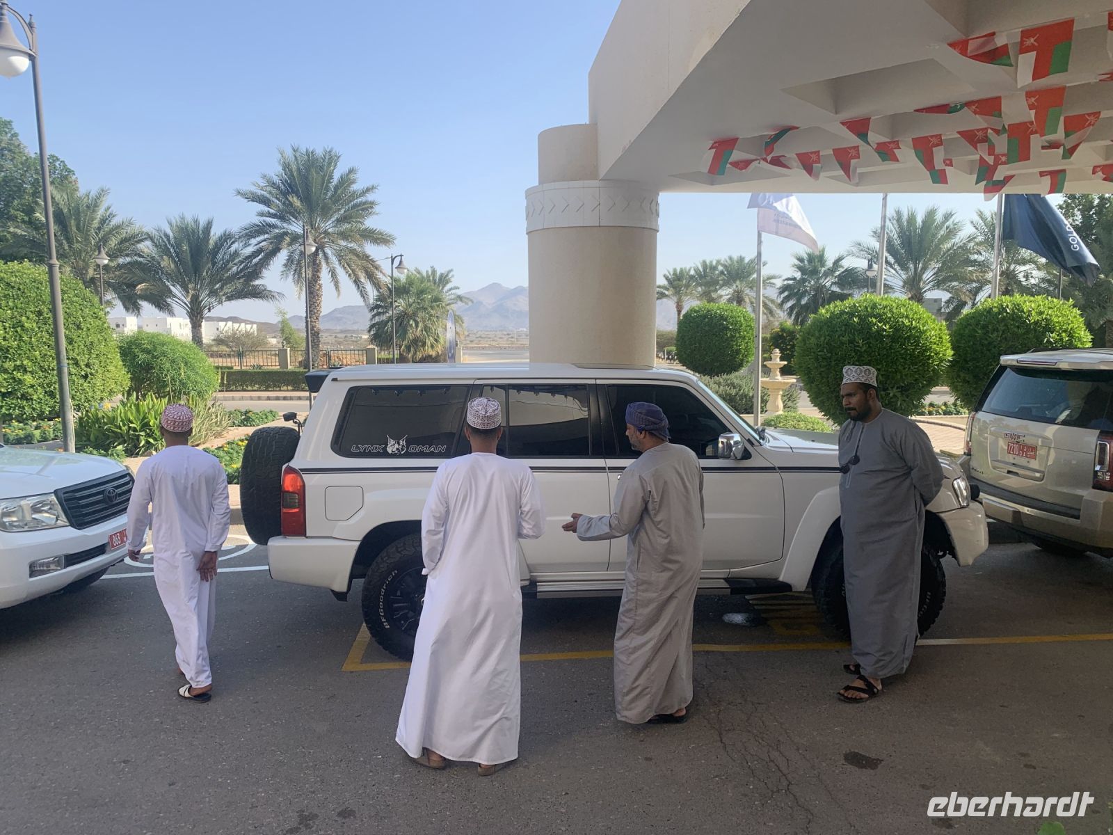 Die Einreise (die aktuell für einen Aufenthalt bis 14 Tage ohne eVisa funktioniert) erfolgt mit arabischer Gelassenheit etwas zäh, aber daran müssen wir uns ungeduldigen Europäer wohl gewöhnen für die kommenden Tage. Wir stellen unsere Uhren 3 Stunden nach vorn, einige tauschen schon die ersten Omani Rial und schließlich empfängt uns schon unser örtlicher Reiseleiter Ahmed mit einem herzlichen Marhaba!