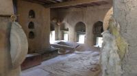 Wir begeben uns weiter zu einer weiteren Oase mit dem Namen Al Hamra. Auch hier zunächst ein Ausblick von einer erhöhten Stelle auf die Dattelpalmenoase und verlassene Lehmhäuser. Ein kurzer Spaziergang durch die Oase führt uns zu einem renovierten Lehmhaus, welches als Museum mit dem Namen Bait Al Saffah Einblicke in das traditionelle Leben gibt. So wird hier beispielsweise demonstriert, wie Kaffee frisch zubereitet und omanisches Fladenbrot gebacken wird oder pflanzliche Öle oder Hautcreme aus Safran und Sandelholz hergestellt werden.