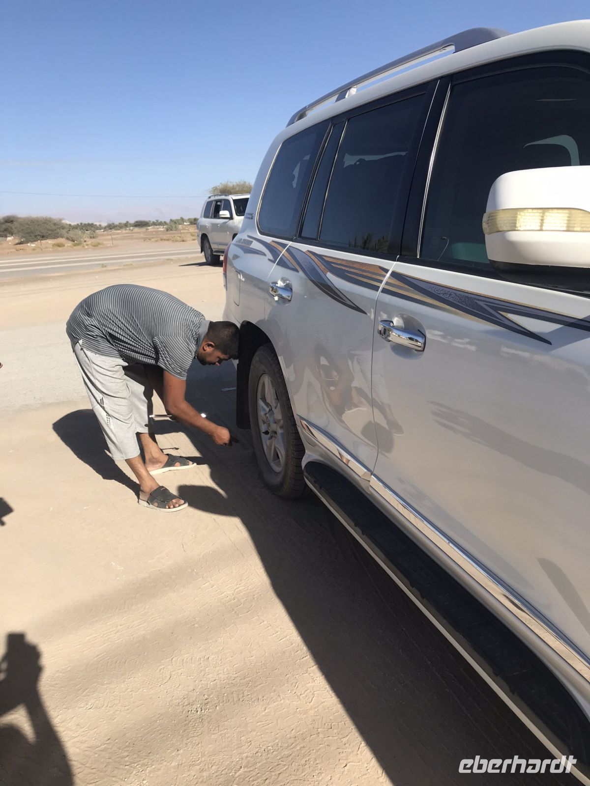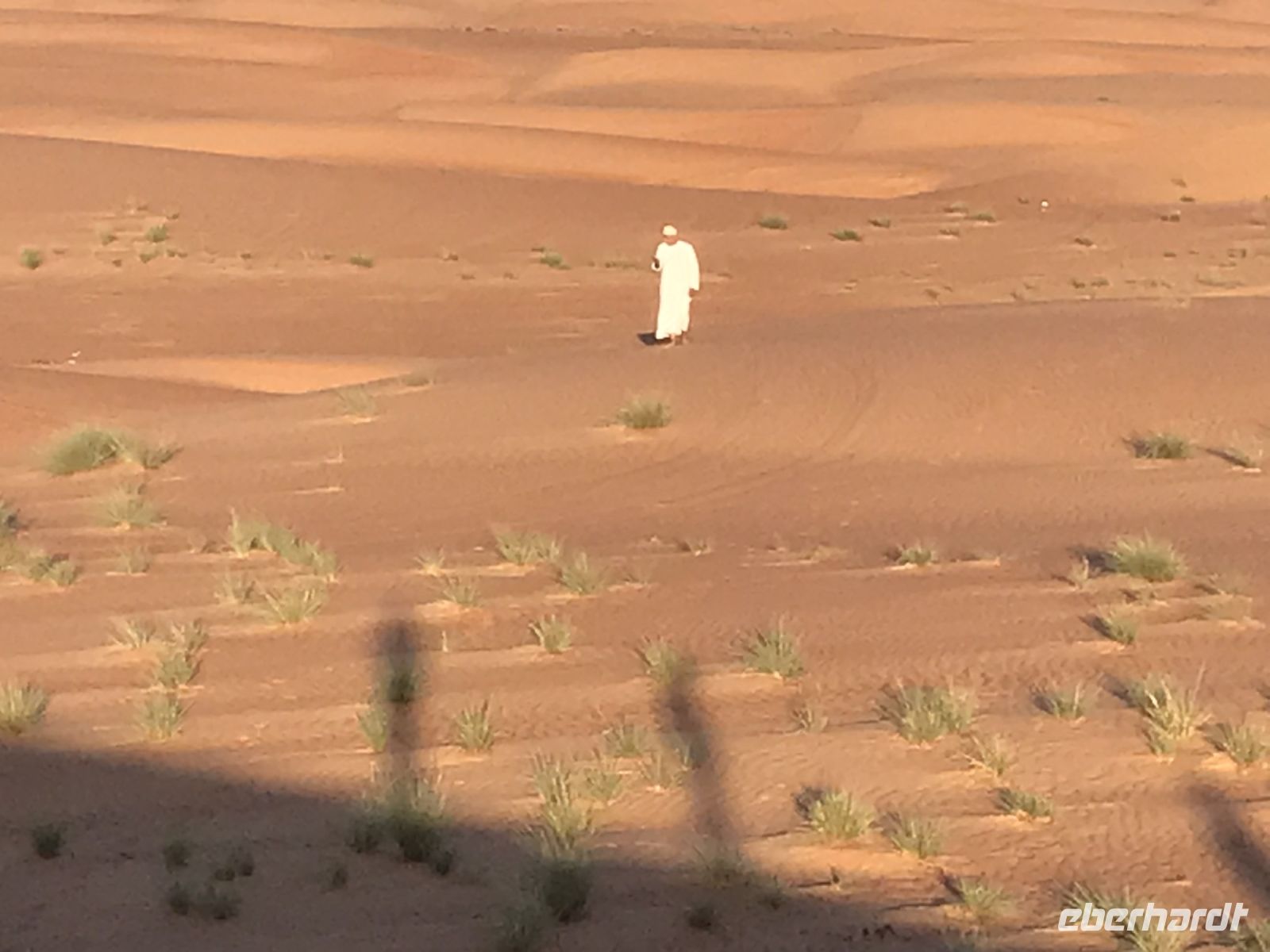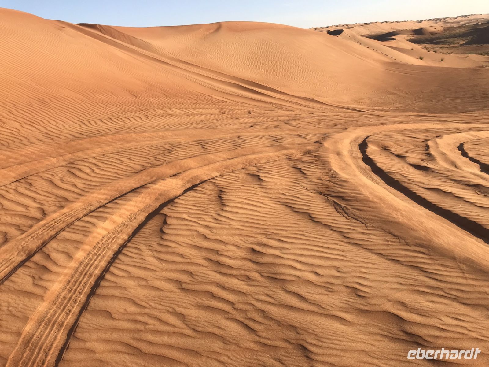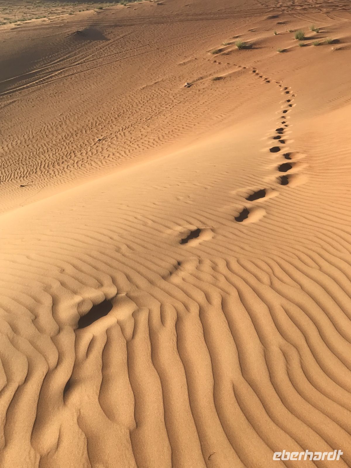 Jetzt wird es Zeit für unsere Fahrt in die Wüste, einer der Höhepunkt auf unserer an highlights und Besonderheiten ohnehin reichen Tour. Damit die Jeeps im Sand nicht ins Schlingern geraten, wird vorab etwas Luft aus den Reifen gelassen und dann geht es hinein in das Vergnügen. Breite Spuren zeigen den Weg, aber es macht unseren Fahrern auch Spaß, einmal auszuscheren und einen Dünenhügel hinauf zu fahren, breite Kurven zu nehmen und uns das Gefühl vom Sand zu vermitteln. Die Fahrt zu unserem Camp ist viel zu kurz, zu schön sind die Ausblicke auf die Dünen. Wenn es irgendwo ein paar dürre Sträucher gibt, sind auch Kühe, Ziegen oder Kamele nicht weit.