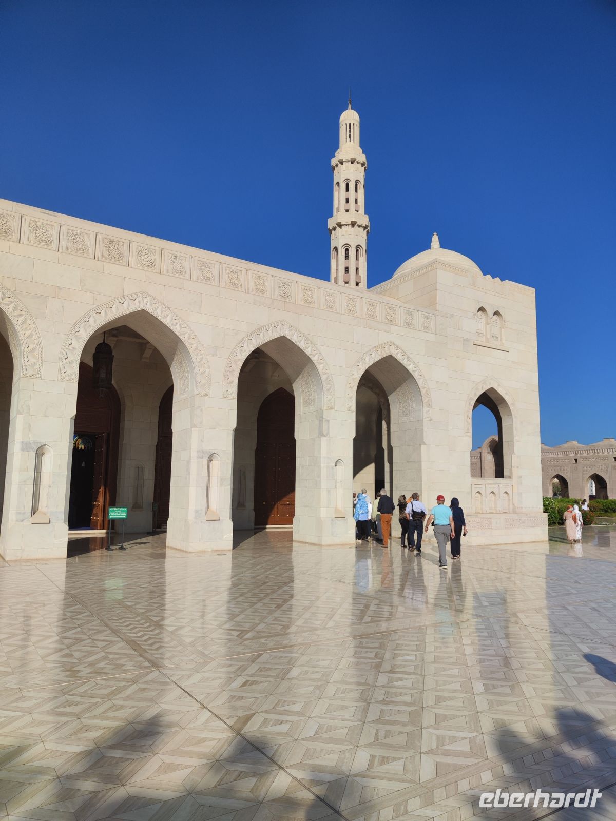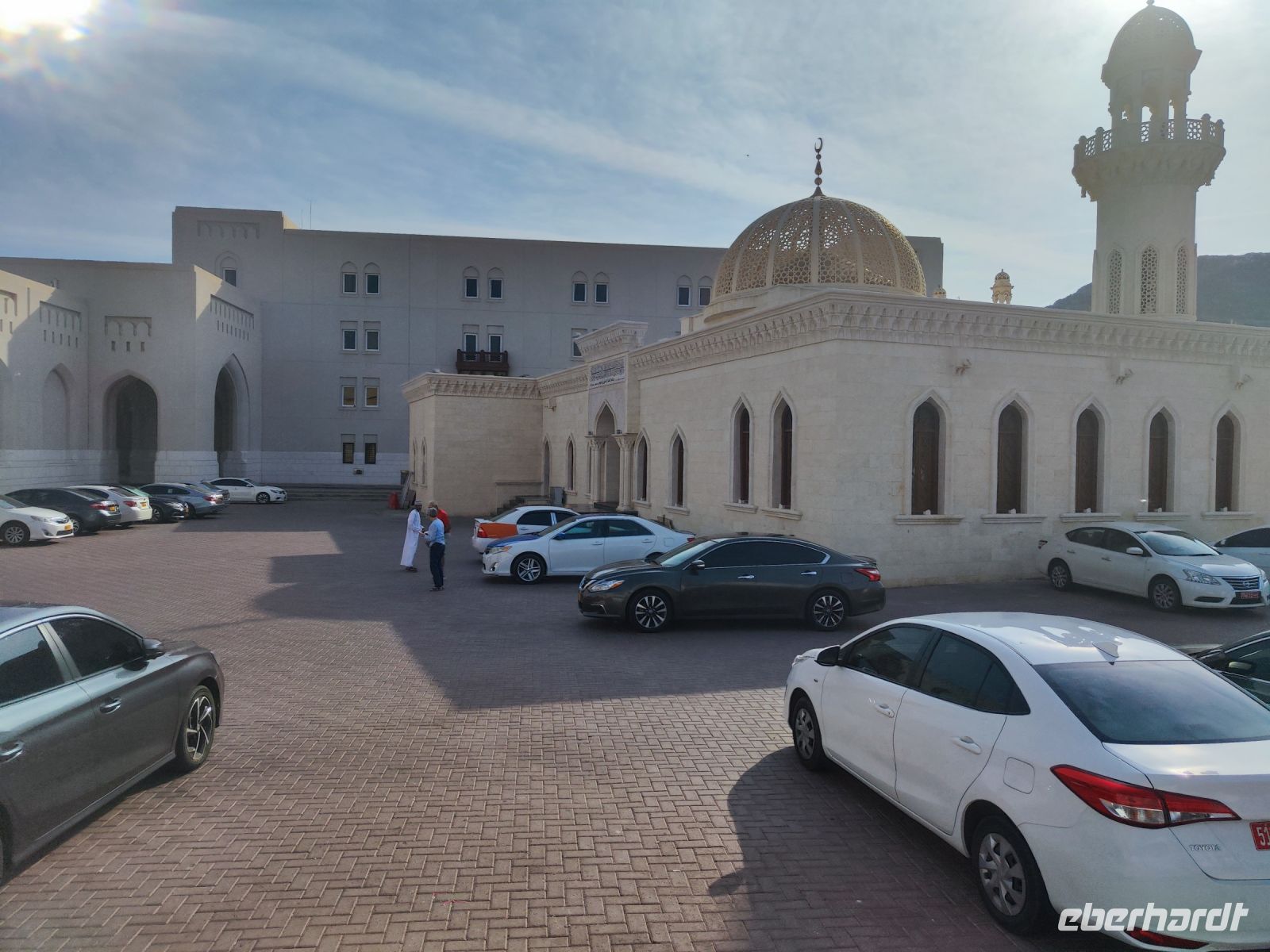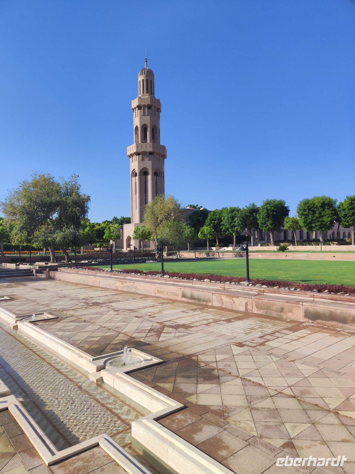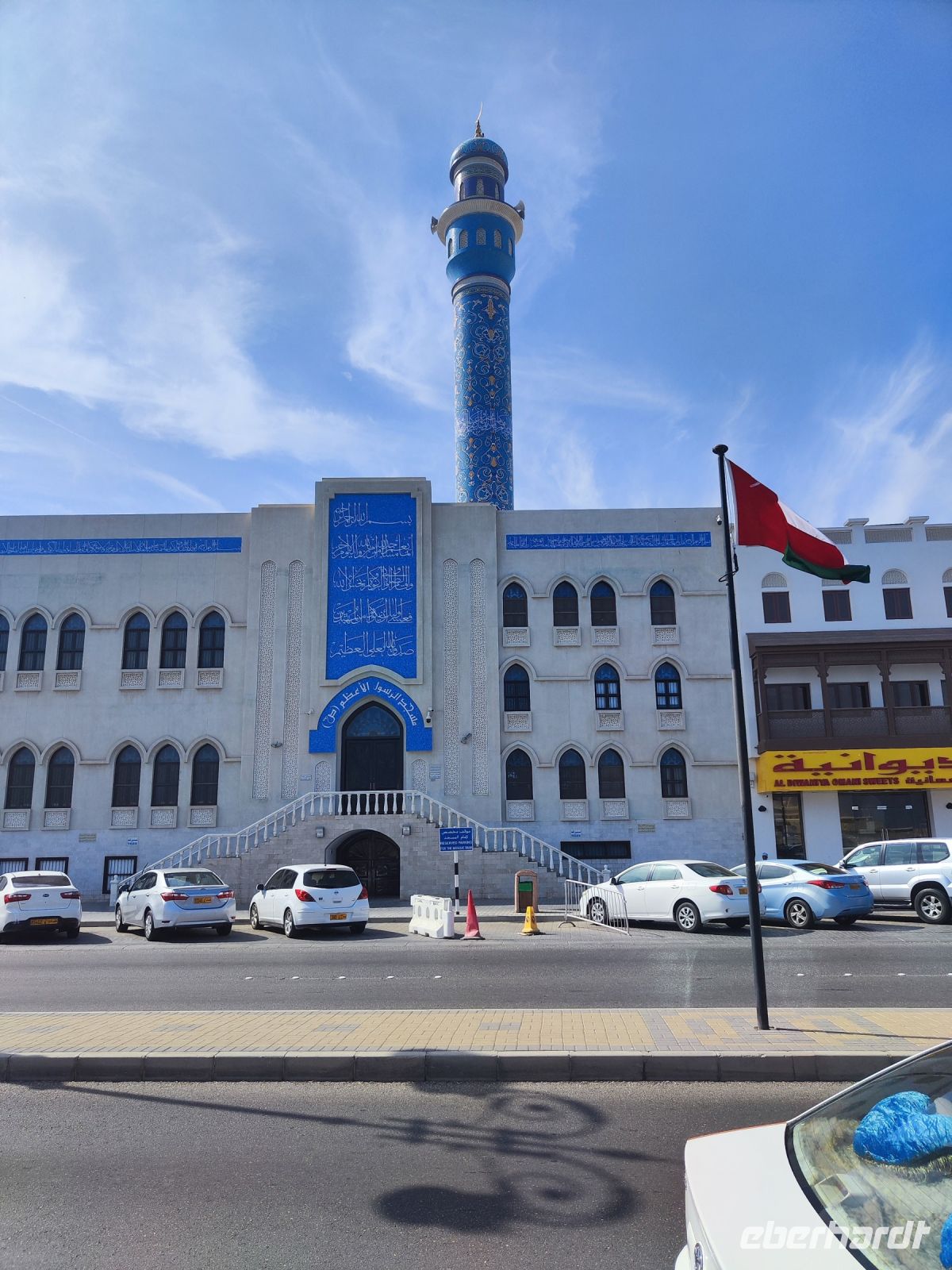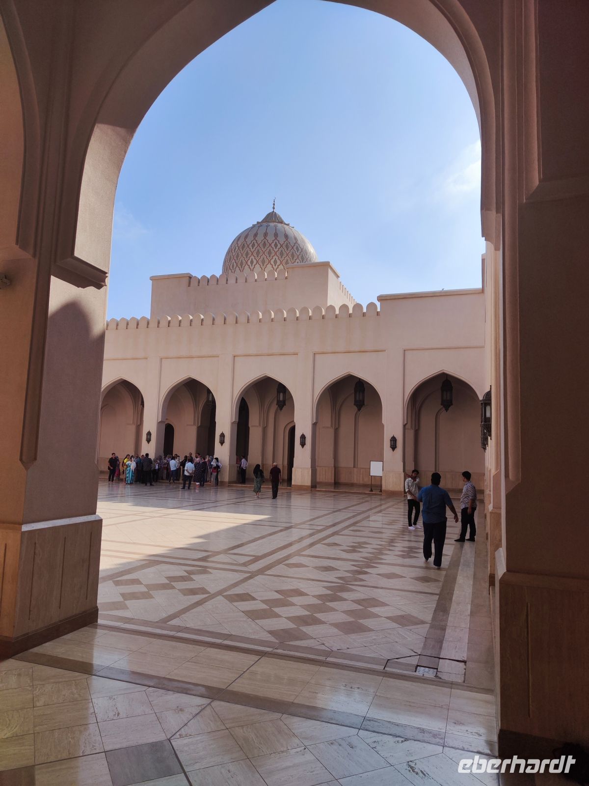 Wir trafen uns voller Vorfreude am Flughafen Frankfurt, bereit für unser Abenteuer im Oman. Der Flug nach Muscat verlief reibungslos, und wir waren gespannt auf die kommenden Tage. Am Flughafen in Muscat trafen wir die übrigen Reisegäste und unseren Reiseleiter Ajid, der uns herzlich willkommen hieß. Unser erster Halt war die beeindruckende Sultan Qaboos Moschee. Die Moschee wurde 2001 fertiggestellt und ist nach Sultan Qaboos bin Said Al Said benannt, der über 40 Jahre lang das Sultanat Oman regierte. Beim architektonischen Meisterwerk wurde modernes Design und traditioneller omanischer Baukunst vereint. Auffällig sind die 5 Minarette, der riesige Gebetsraum und der Kronleuchter aus Swarovski Steinen. Bei unserem Rundgang bestaunten wir die Moschee und die Baukunst der Omanis. Anschließend besuchten wir das Opernhaus in Muscat, das ebenfalls mit seiner modernen Eleganz beeindruckte. Wir hatten die Gelegenheit, die Räumlichkeiten zu erkunden und mehr über das 2011 erbaute Gebäude zu erfahren. Unser Mittagessen hatte unser Reiseleiter Ajit am Strand von Muscat in einem türkischen Restaurant reserviert. Wir genossen frischen Fisch und Meeresfrüchte in einer entspannten Atmosphäre und lauschten dem Rauschen des Meeres.